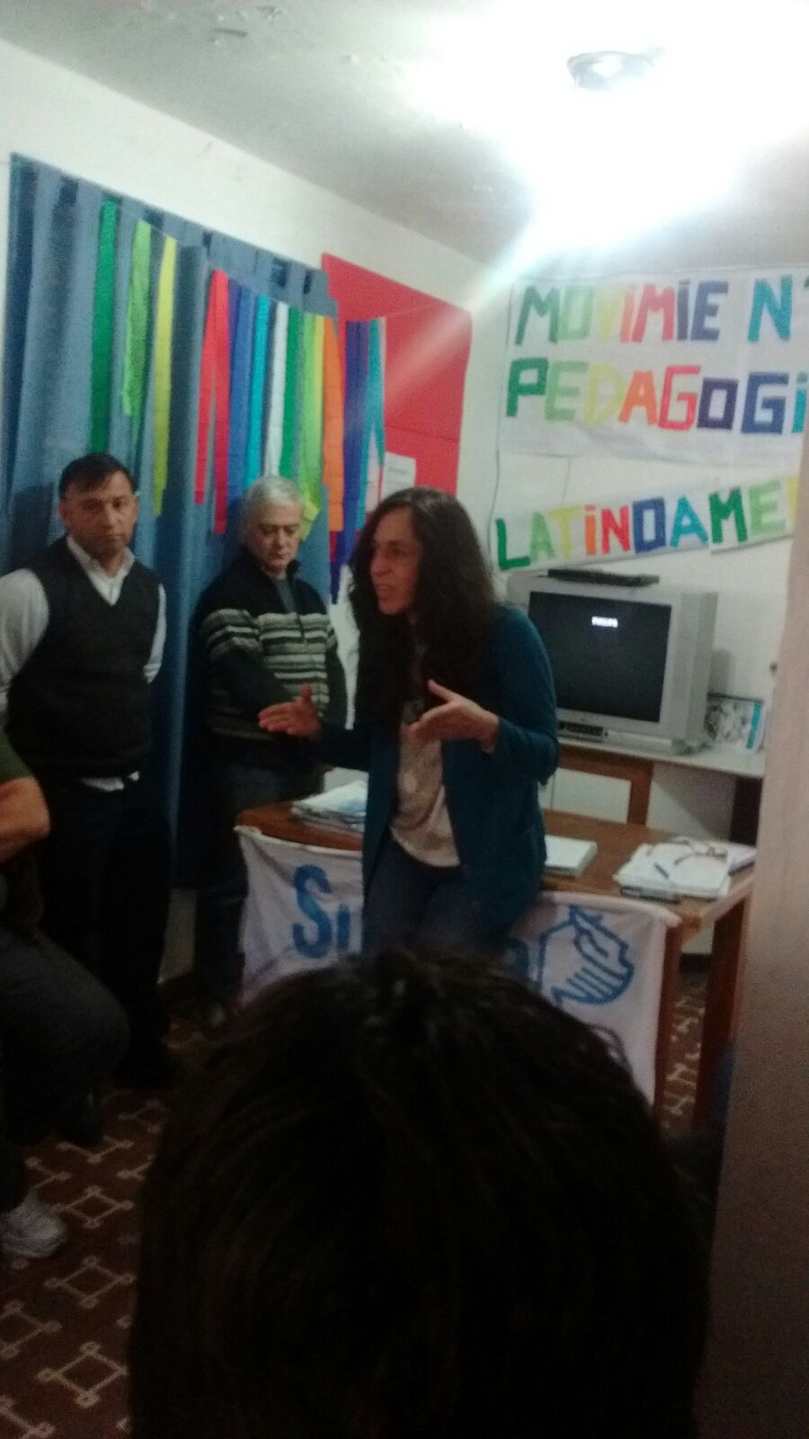 Las compañeras realizaron la presentación del Movimiento Pedagógico Latinoamericano y expusieron sobre la importancia de una educación pública, popular y emancipadora con centralidad pedagógica, además de hacer un repaso de la historia de este proyecto, sus fines y la potencia de la jornadas que se realizan en toda la provincia.