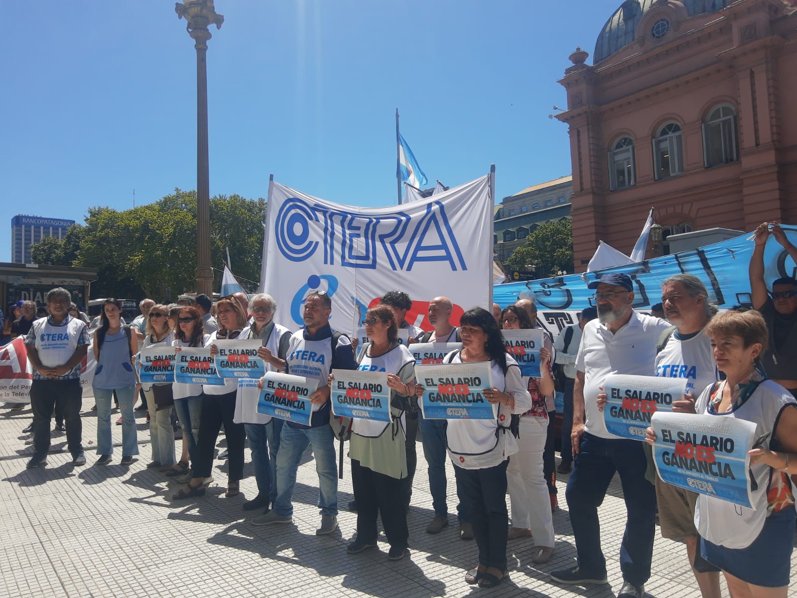 La CTERA participó hoy, frente al Ministerio de Economía, de la Radio Abierta exigiendo la sanción del proyecto de Ley de modificación del Impuesto a las Ganancias.