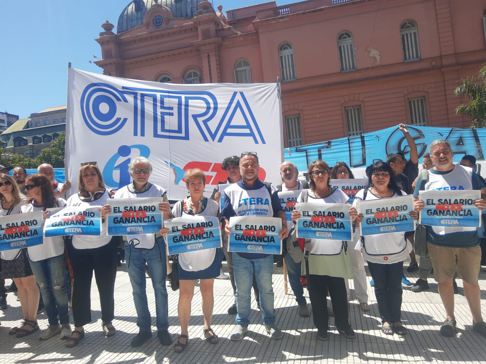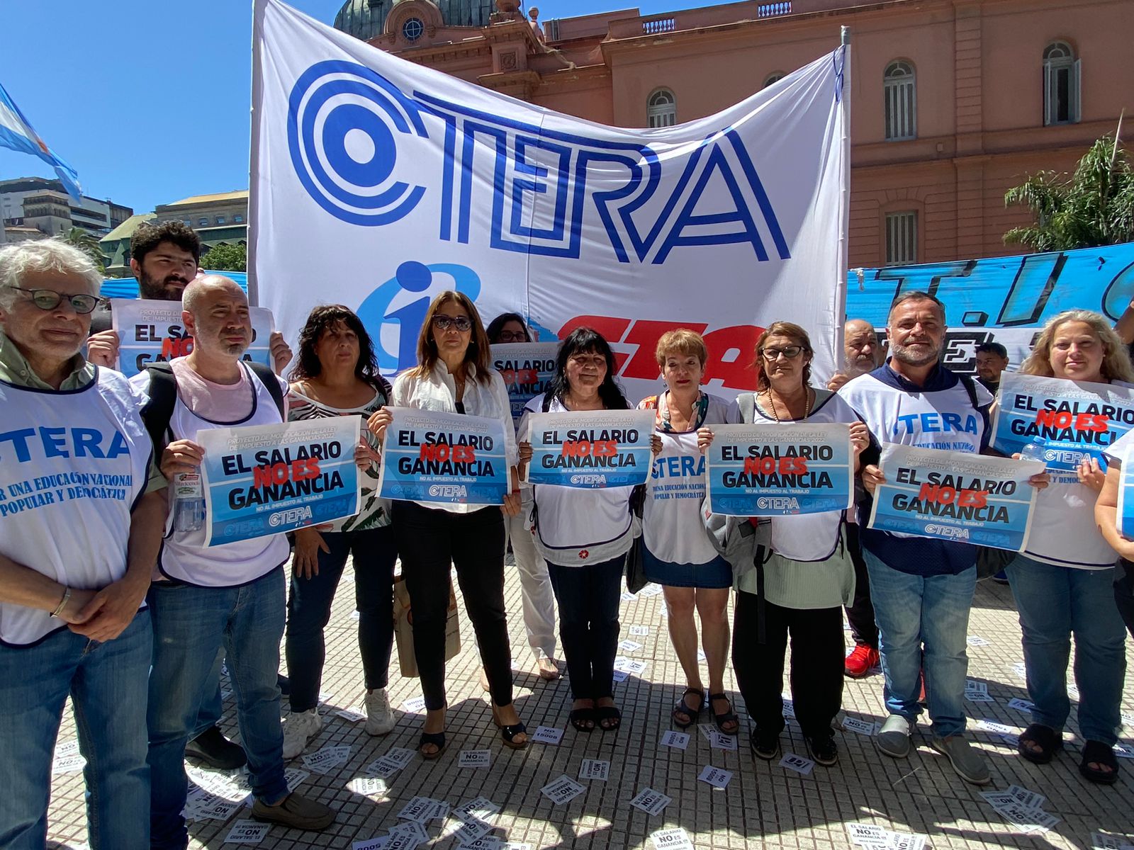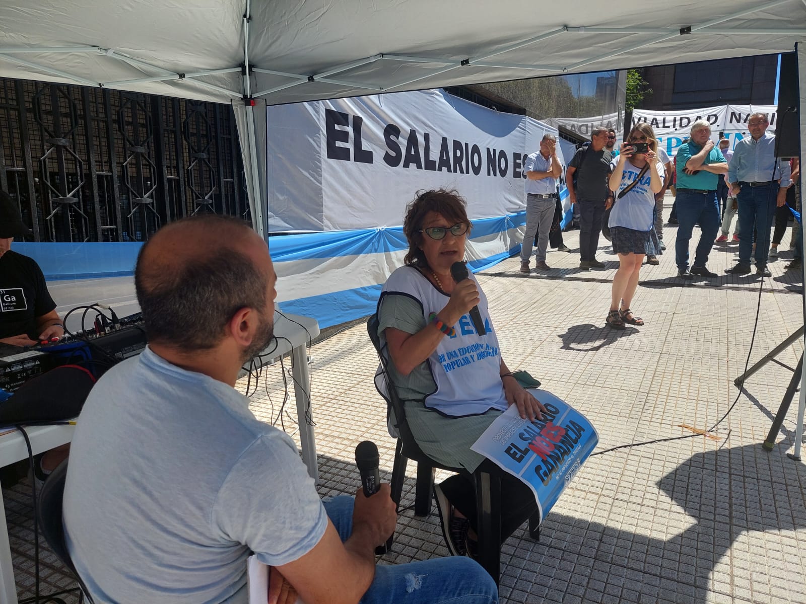 La CTERA participó hoy, frente al Ministerio de Economía, de la Radio Abierta exigiendo la sanción del proyecto de Ley de modificación del Impuesto a las Ganancias.