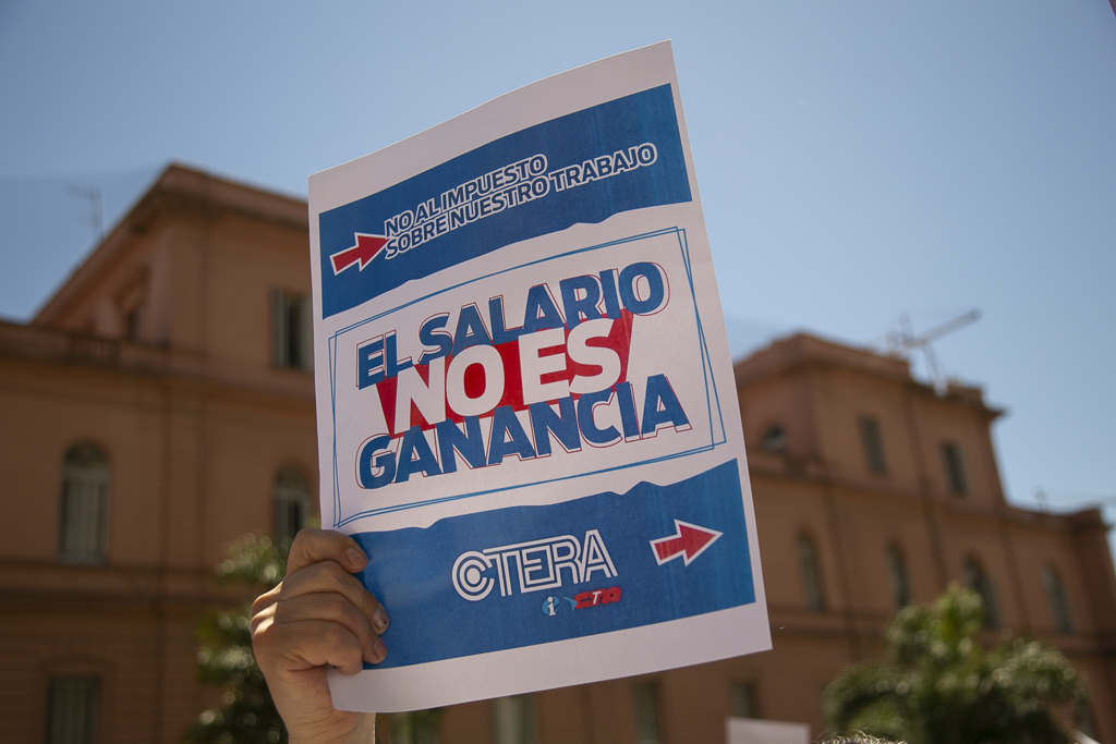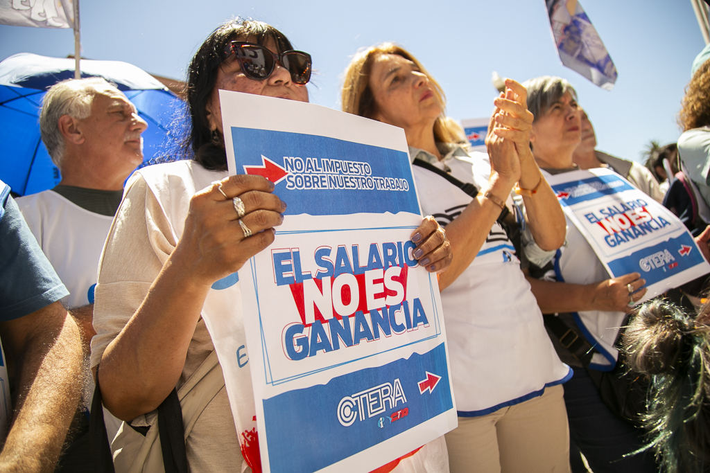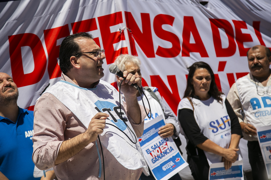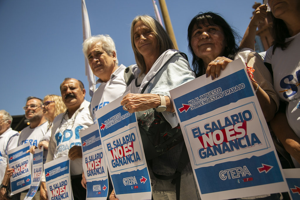 "Somos el único sector que discutió en una Convención Colectiva por el no descuento de ganancias. El fallo favorable de la Justicia Laboral a nuestro reclamo por medida cautelar tiene el argumento del fuero laboral por las características particulares del trabajo docente. Hoy un/a Docente acumula dos o tres puestos de trabajo para sobrevivir, todo eso está gravado con un impuesto que afecta a lxs Trabajadorxs pero no a las grandes fortunas de lxs que se robaron el país", sostuvo Alesso.