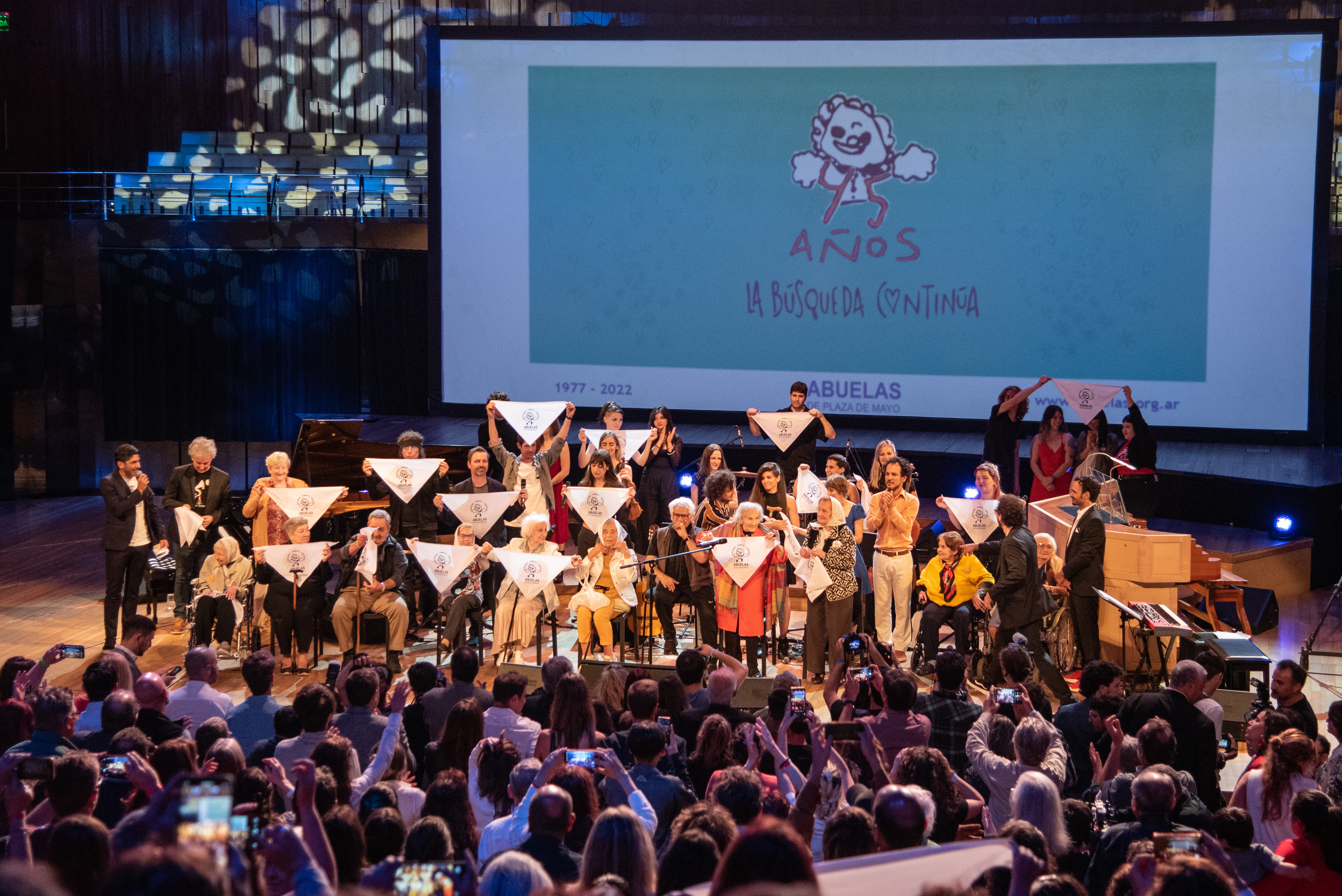 Ayer, en el Centro Cultural Kirchner, nuestras queridas Abuelas de Plaza de Mayo celebraron 45 años de lucha, de amor y de búsqueda persistente. El SUTEBA estuvo presente acompañándolas en este conmovedor festejo, en el cual se rememoró esta historia de lucha inclaudicable, fundamental para el movimiento de Derechos Humanos y para todo el país. Luchas, conquistas y reencuentros que han situado a la Argentina a la vanguardia en la defensa de los Derechos Humanos, entre los primeros países que hacen de los mismos políticas de Estado, acompañadas por todo un Pueblo.