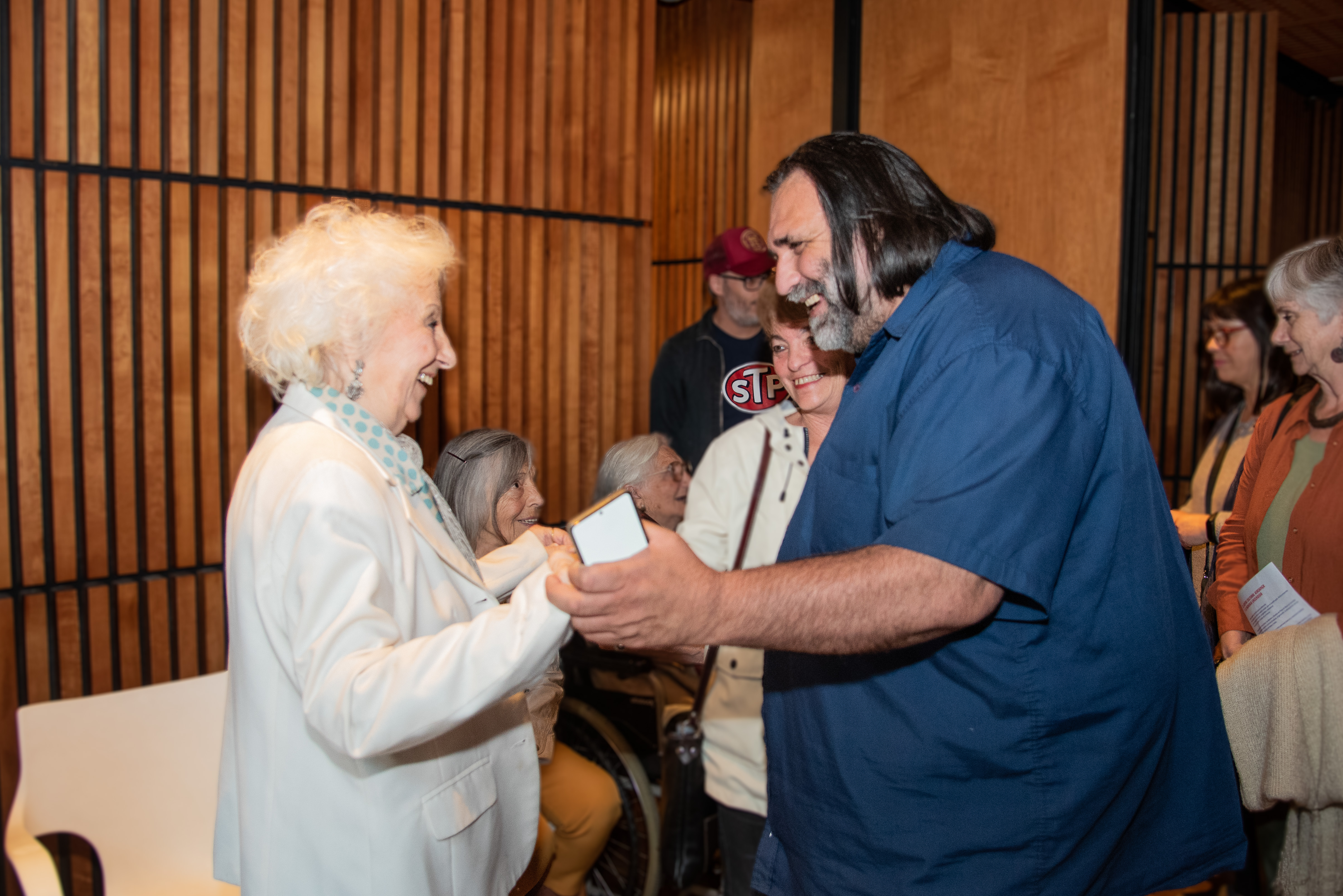 Esa conmovedora historia de lucha fue recorrida con imágenes, videos, música y poesía, durante un emotivo acto que tuvo como cierre las palabras de la querida Estela de Carlotto, que nos alentó a seguir de pie, a continuar siempre buscando la verdad, y nos agradeció el acompañamiento.
