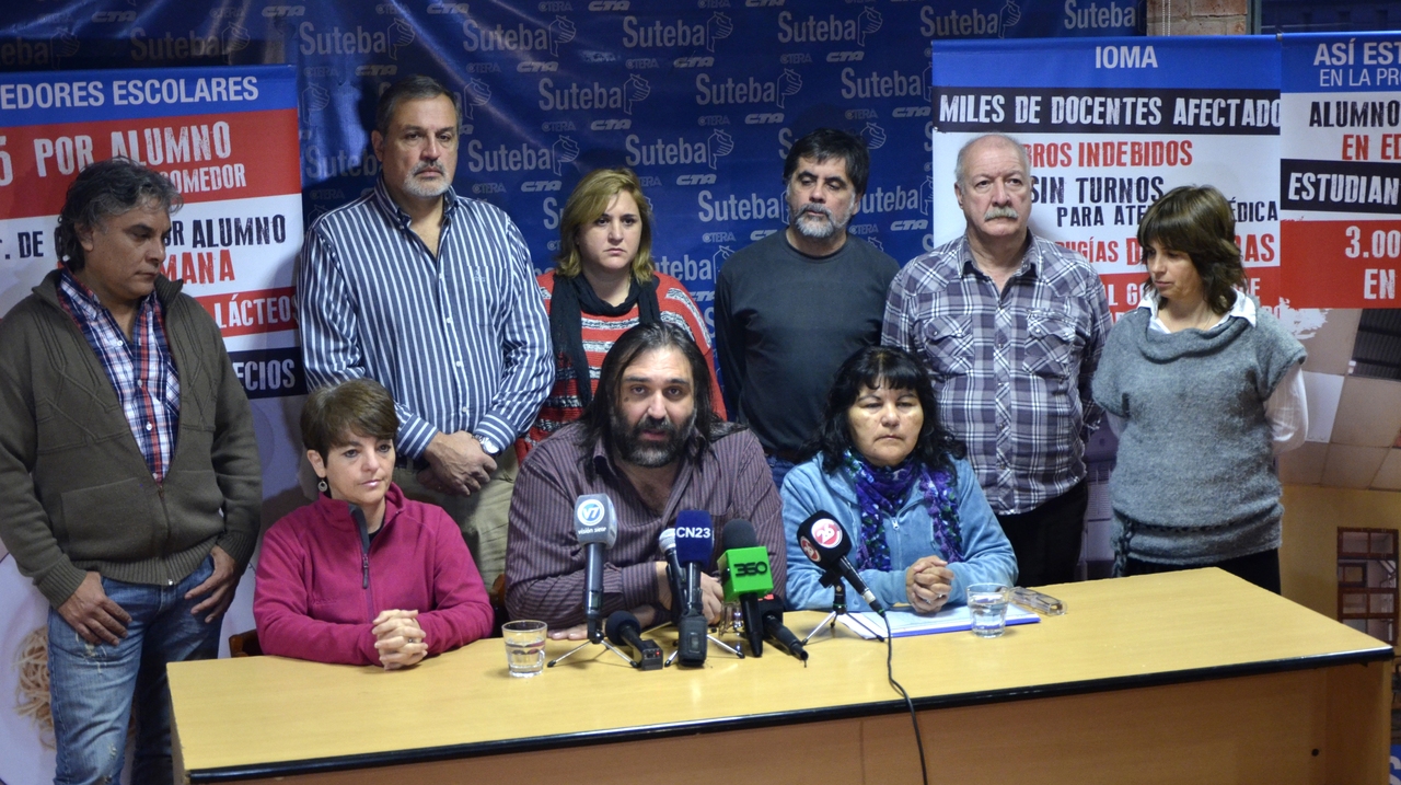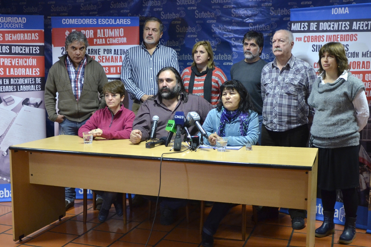 El SUTEBA realizó una conferencia de prensa para denunciar que, a pesar del conflicto que duró 17 días y del cual se salió con una serie de acuerdos paritarios que no se cumplen como infraestructura, comedores y mobiliario. Por lo tanto, se movilizarán, en el marco del Frente Gremial Docente Bonaerense (FGDB) a la Casa de la Provincia en el día de mañana (11/06/14).