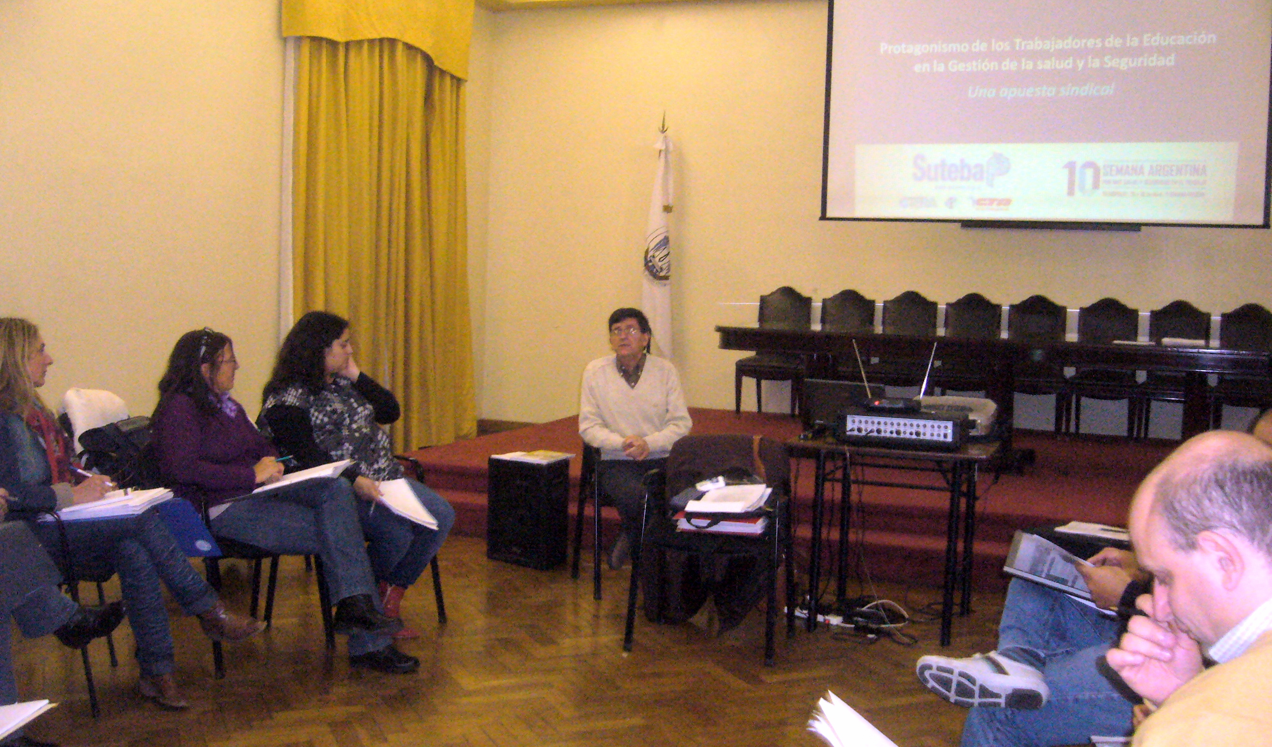 Allí estuvo presente Luis D'Andrea, delegado paritario y especialista en Gestión de Salud y Seguidad en el Trabajo, quien comentó: “A la reunión asistimos los especialista de SUTEBA que hicimos la especialización el año pasado, convocados por la Directora de la Especialización para acompañar el proceso de la realización del trabajo”.