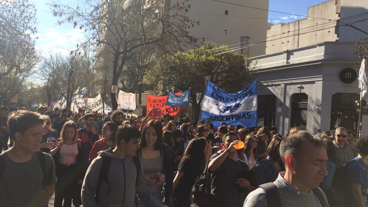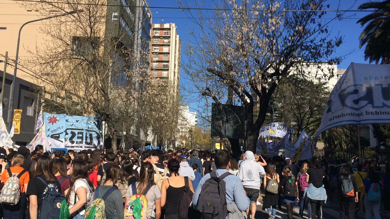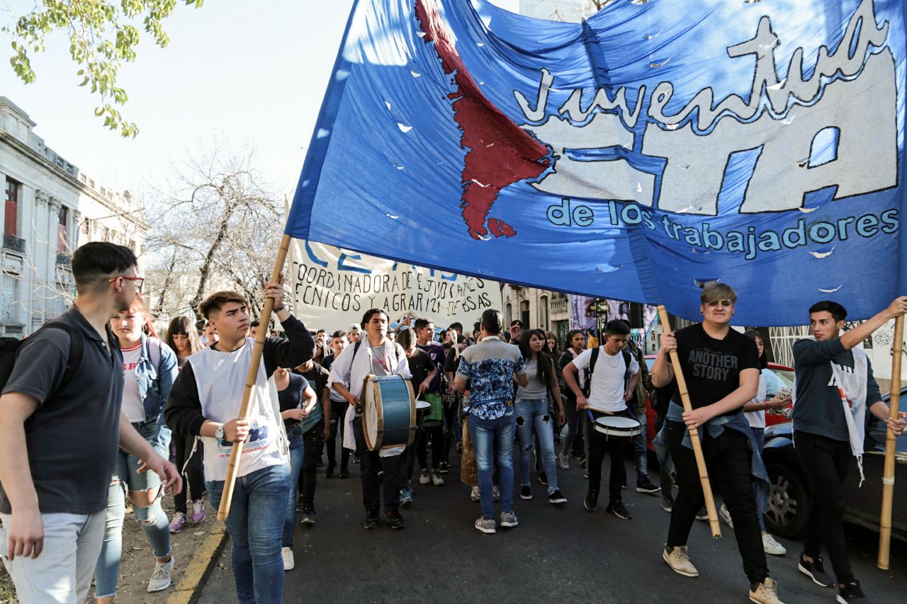 Luego, hablaron Estudiantes en representación de establecimientos Terciarixs y Técnicxs. Por lxs Secundarixs de la Juventud de la CTA, Aylén Cáceres remarcó que por primera vez participaban de esta movilización y sostuvo: "Es un placer ver tantas banderas flameando en este día. Estamos muy orgullosxs de estar porque venimos trabajando hace tiempo y poniendo el cuerpo en esta lucha con lxs Secundarixs. Agradecemos a lxs Terciarixs, lxs Técnicxs y a todxs lxs Docentes que nos están apoyando. Este día nos marca profundamente porque hubo compañerxs que dieron su vida por las causas en las que creían y soñaban, y ahora las tomamos nosotrxs, copando las calles y diciendo basta al neoliberalismo, basta a la corrupción y a los derechos que nos sacan".