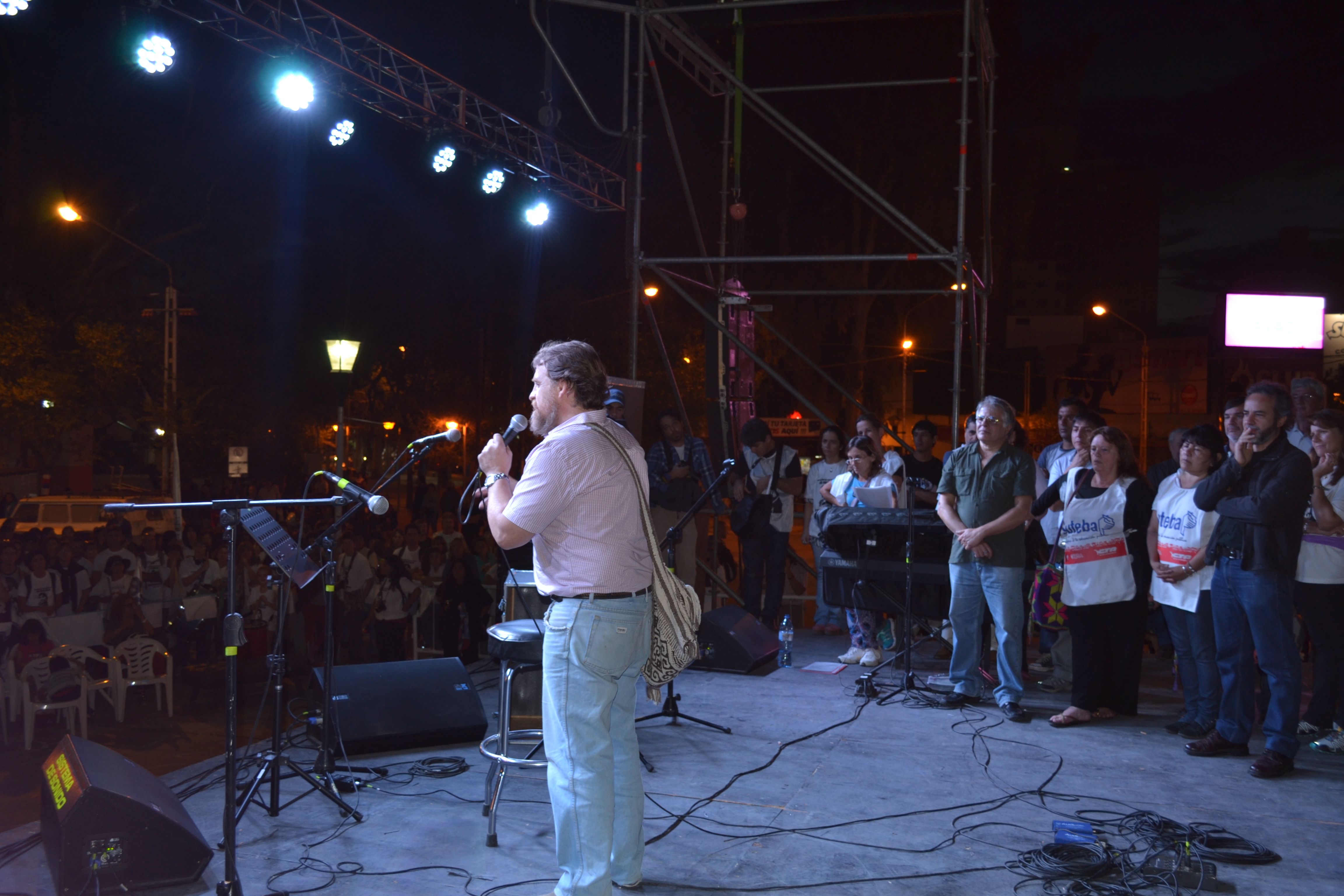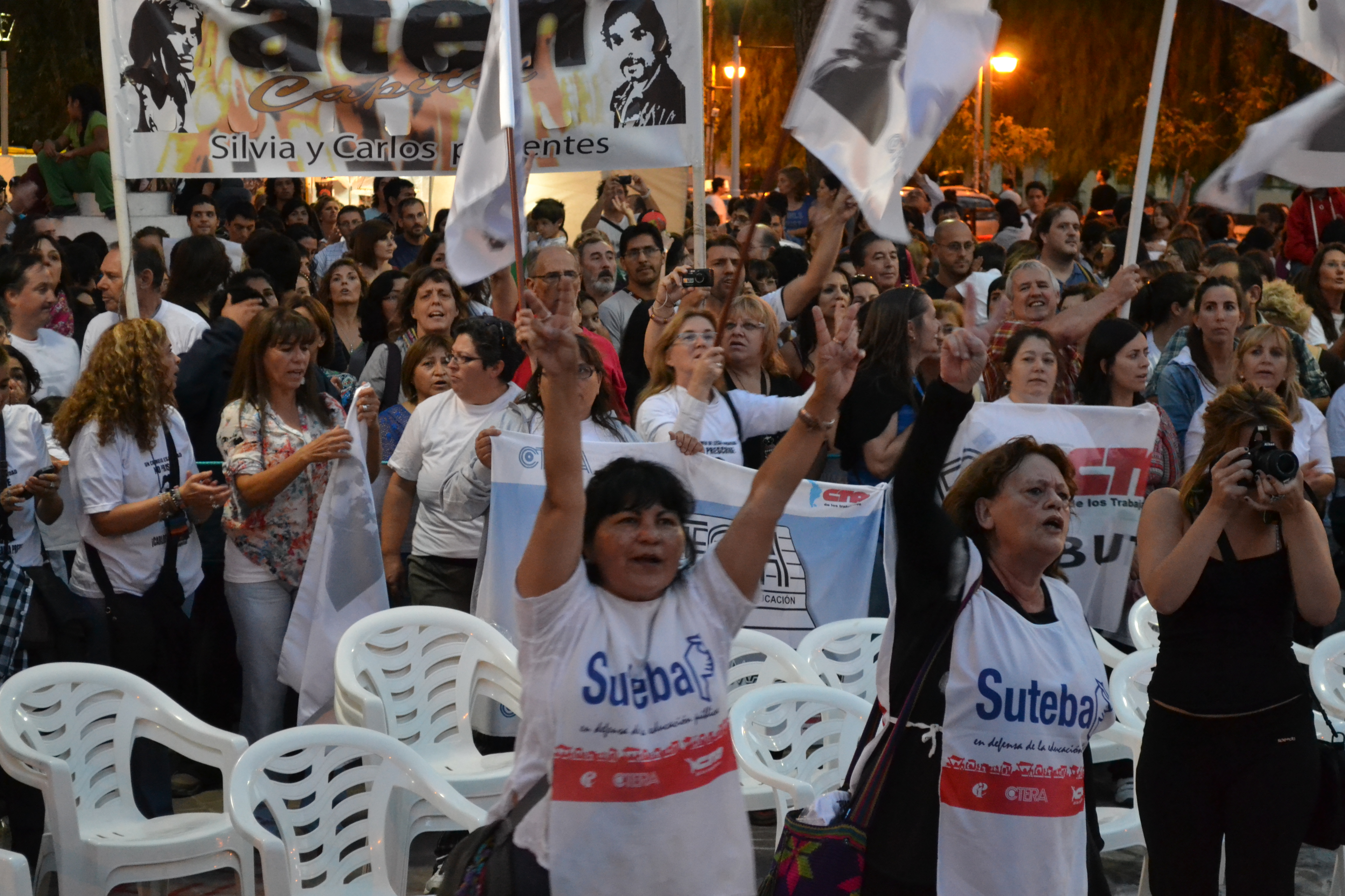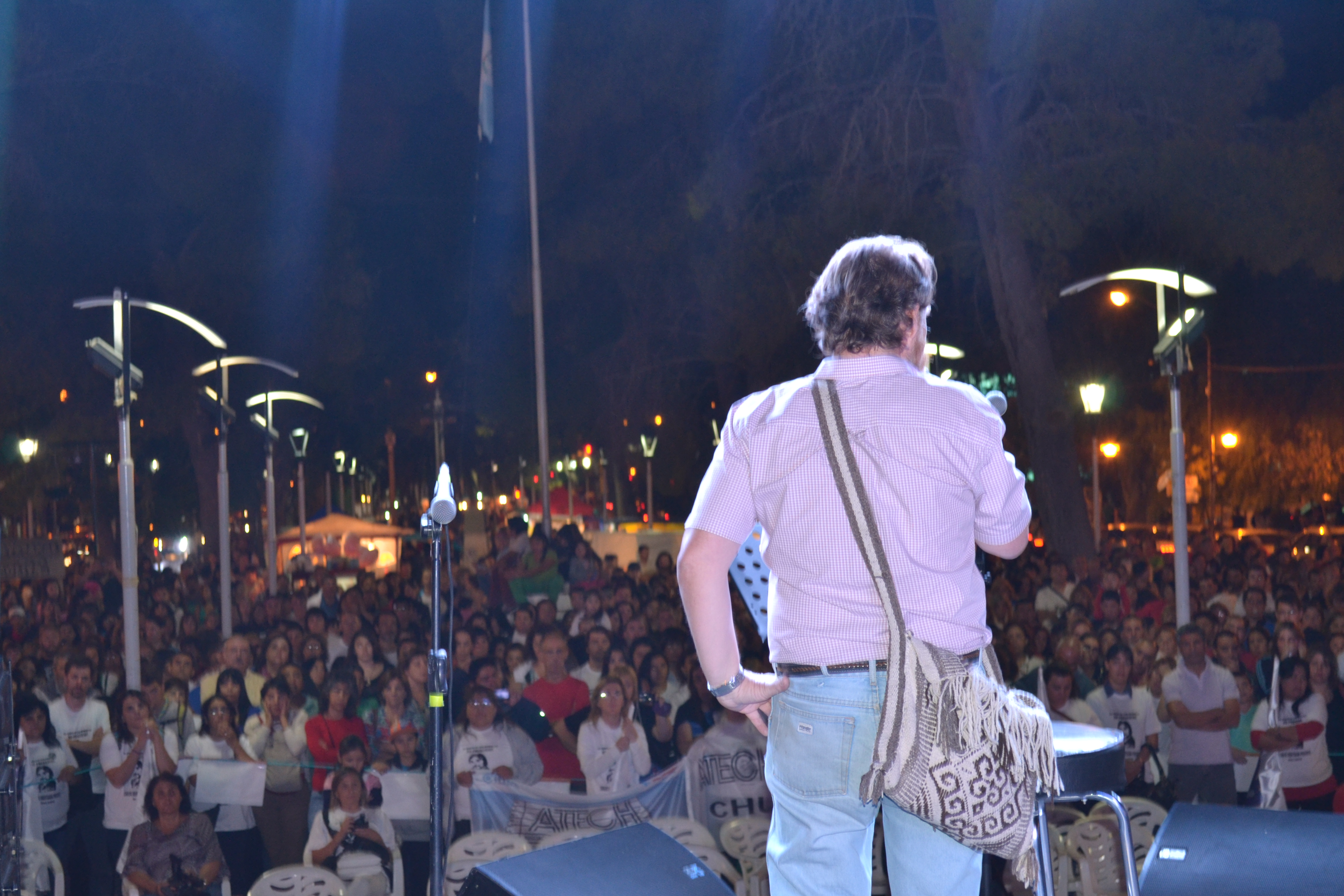 El acto llegó a su fin por la noche con un recital de Víctor Heredia, quien también se sumó al pedido de Justicia Completa para el maestro Carlos Fuentealba.