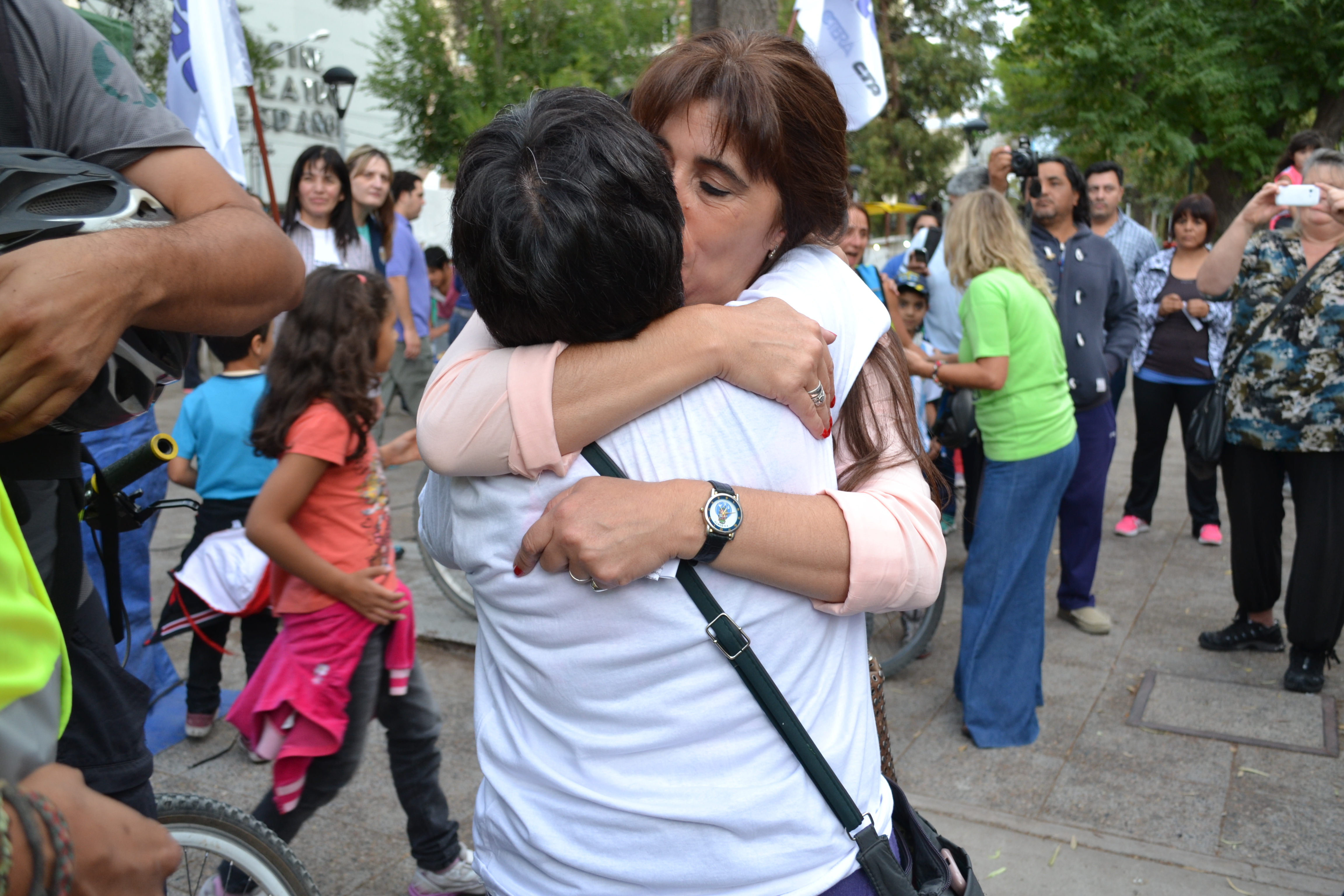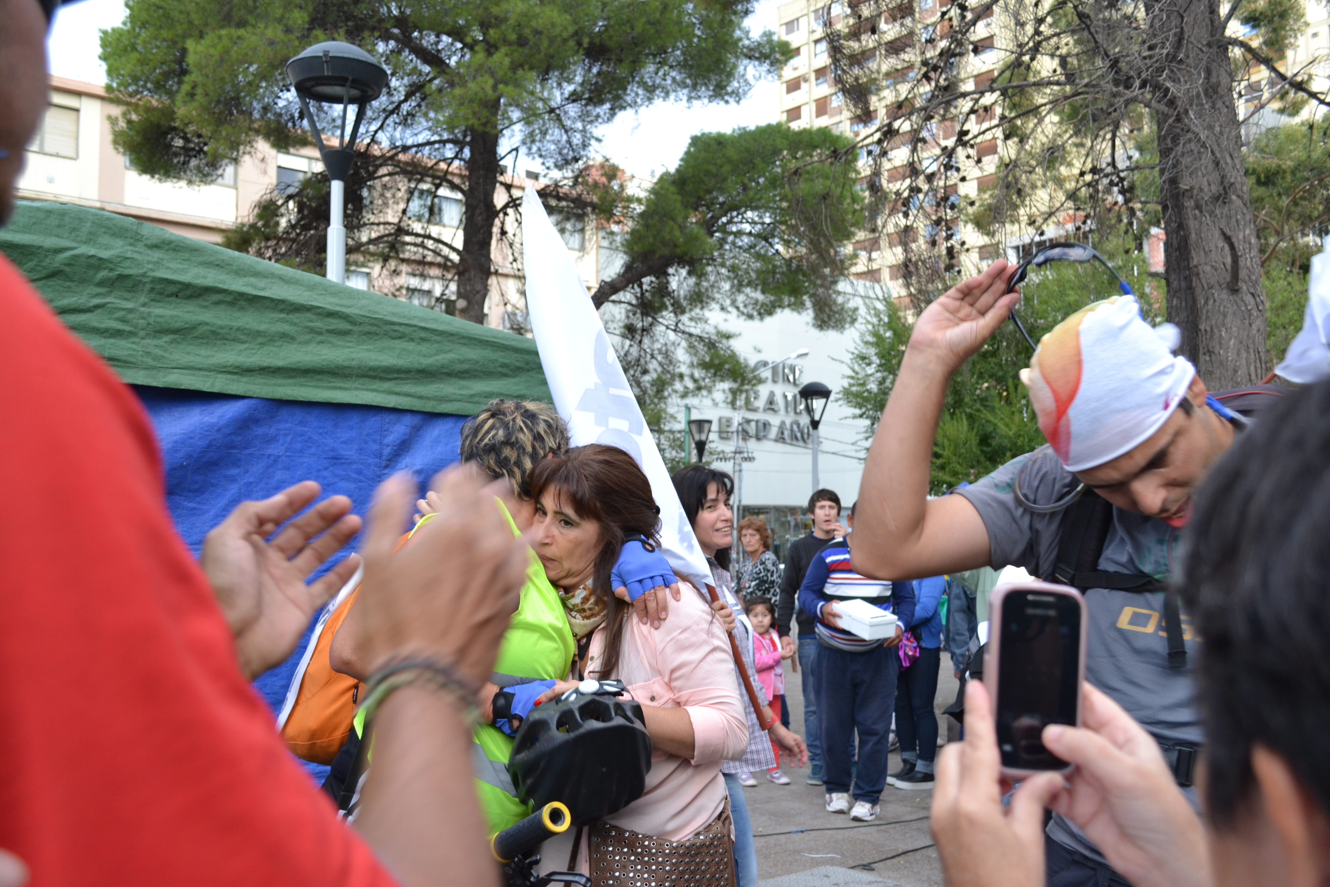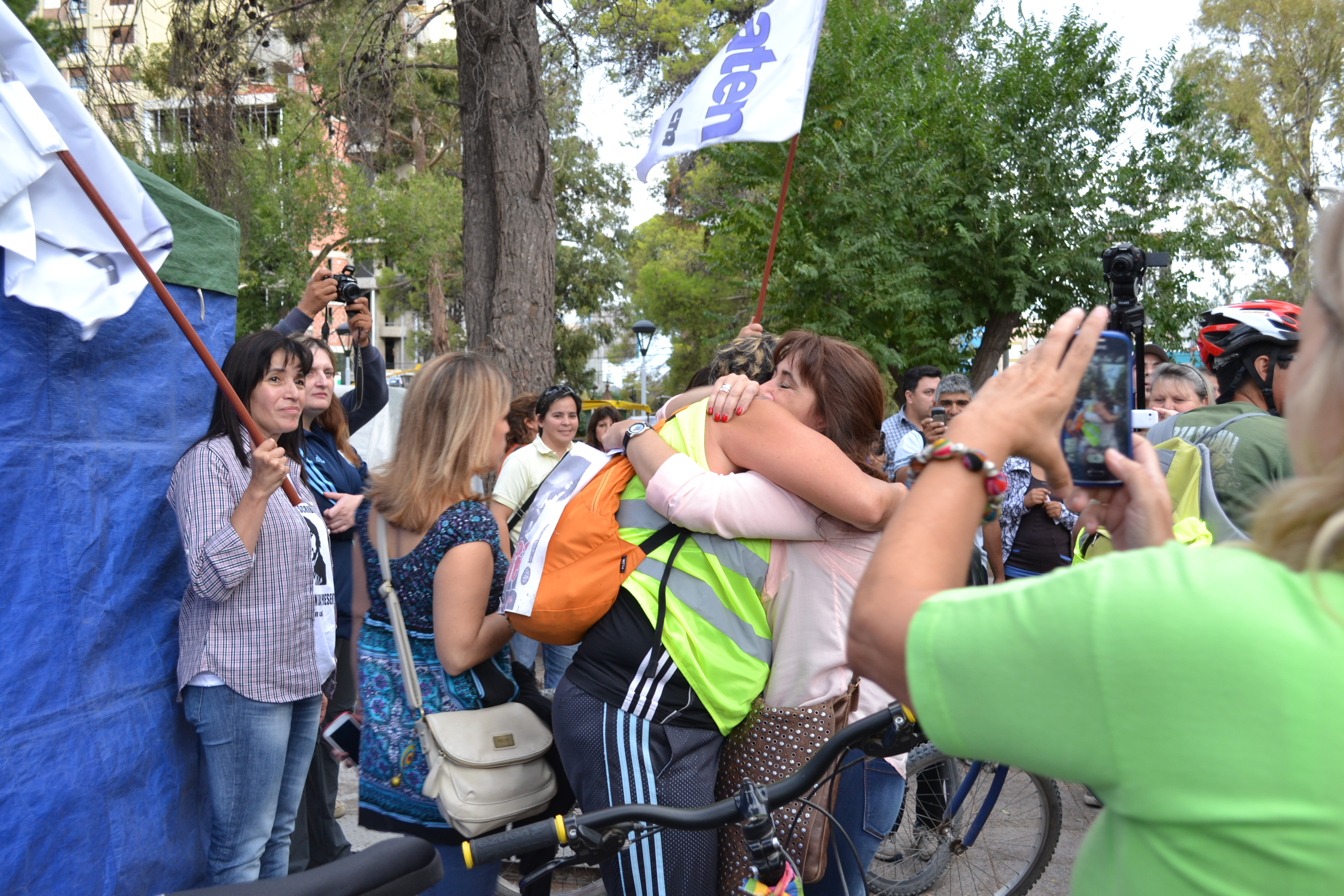 En horas del mediodía, un grupo de docentes en bicicleta partió desde Arroyito y recorrió 60 km hasta llegar a las calles de Neuquén. Se fueron sumando otros compañeros y finalmente llegaron, con la imagen del rostro de Carlos Fuentealba prendida en sus espaldas, al Monumento a San Martín, lugar en el que dio inicio la marcha.