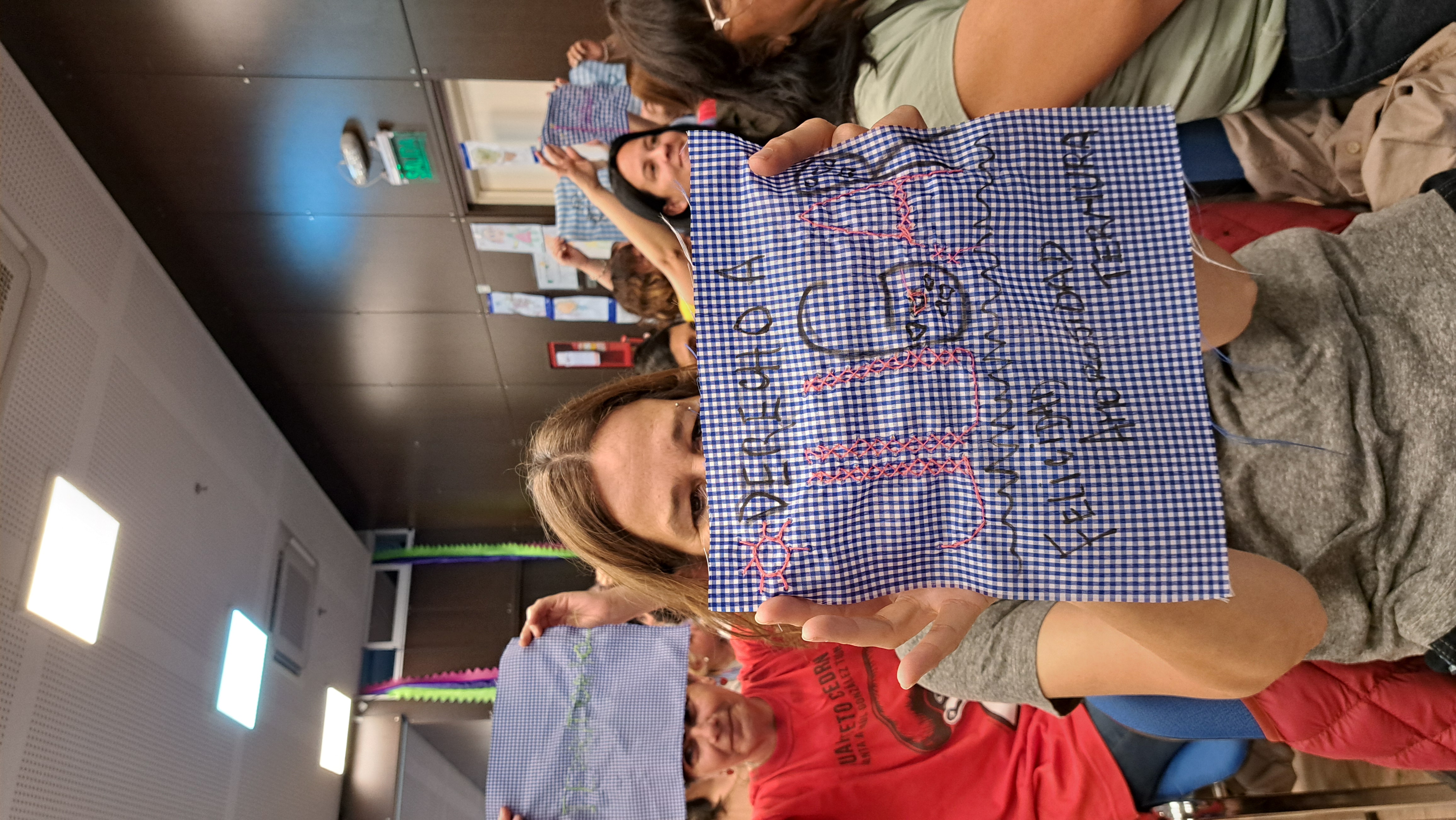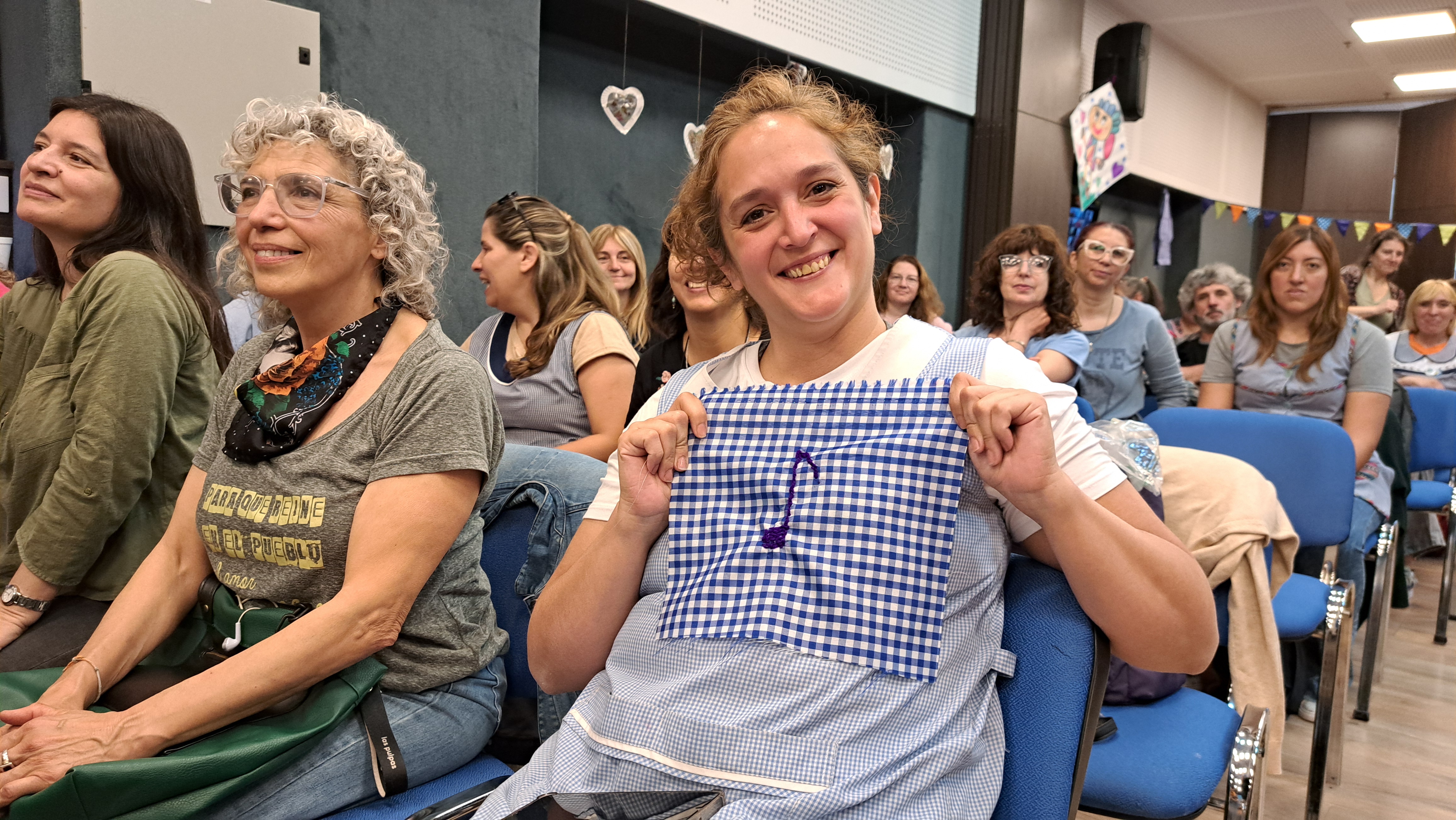 En el cierre del Encuentro el artista plástico Emilio Ferrero intervino guardapolvos y láminas para lxs compañerxs presentes.