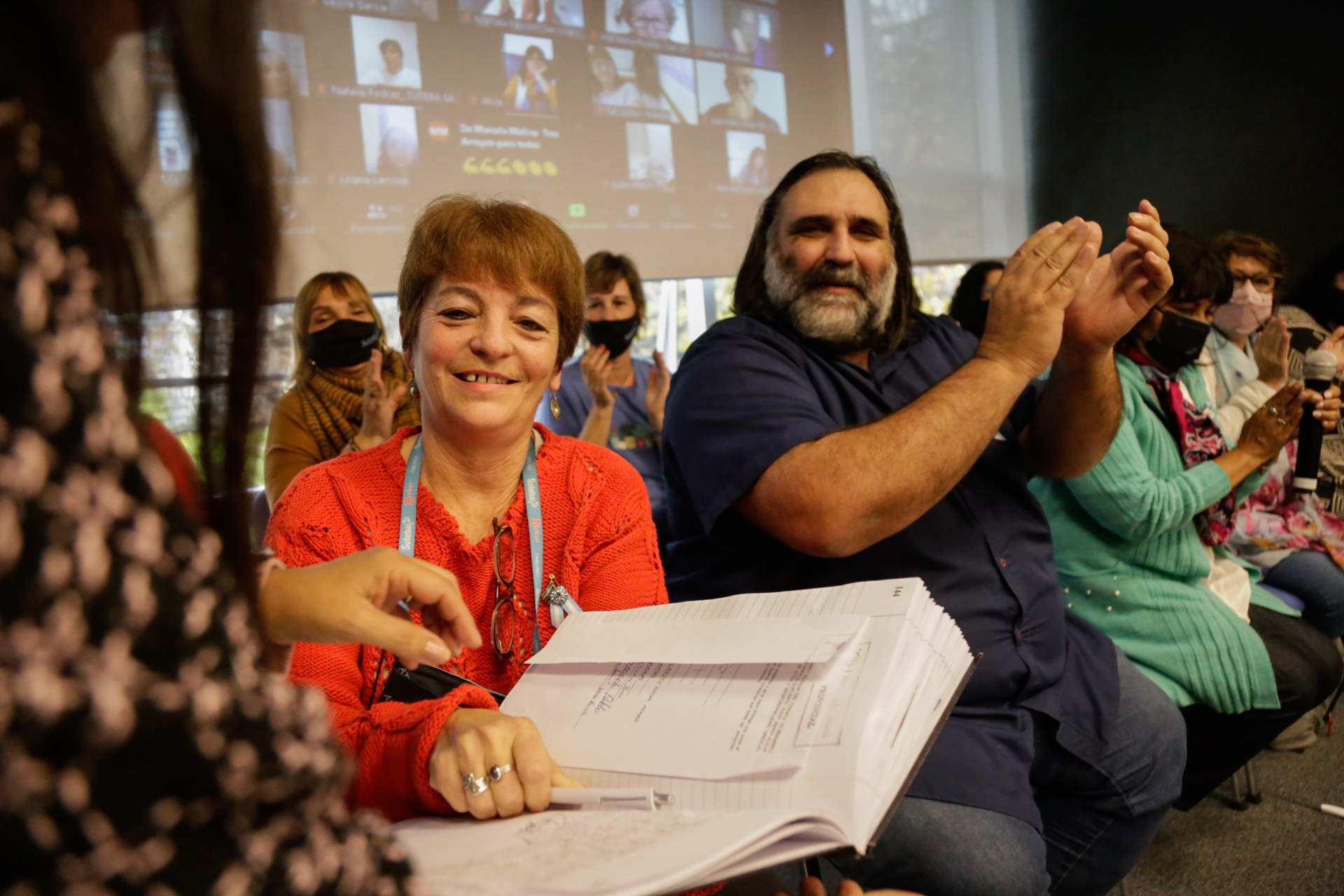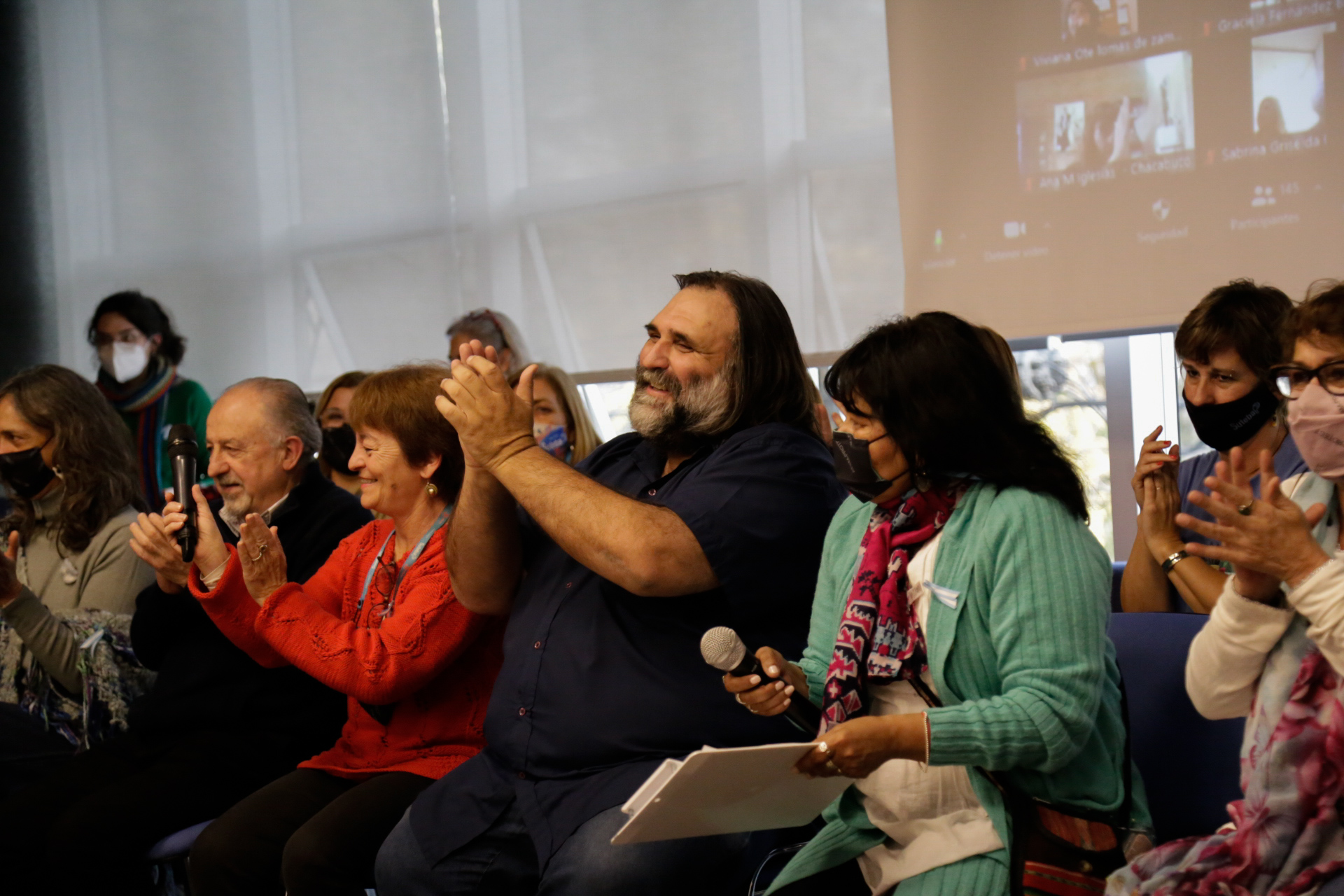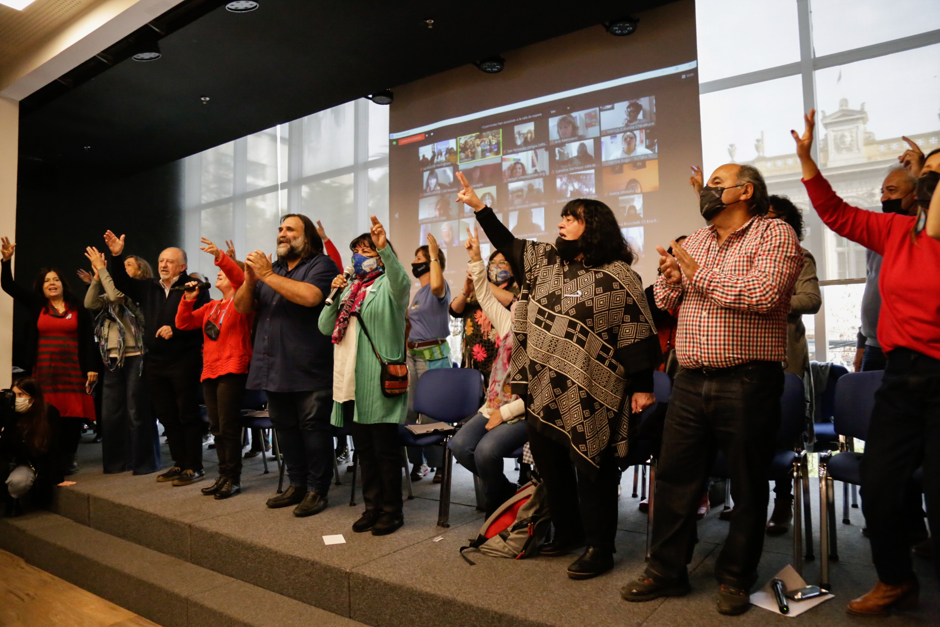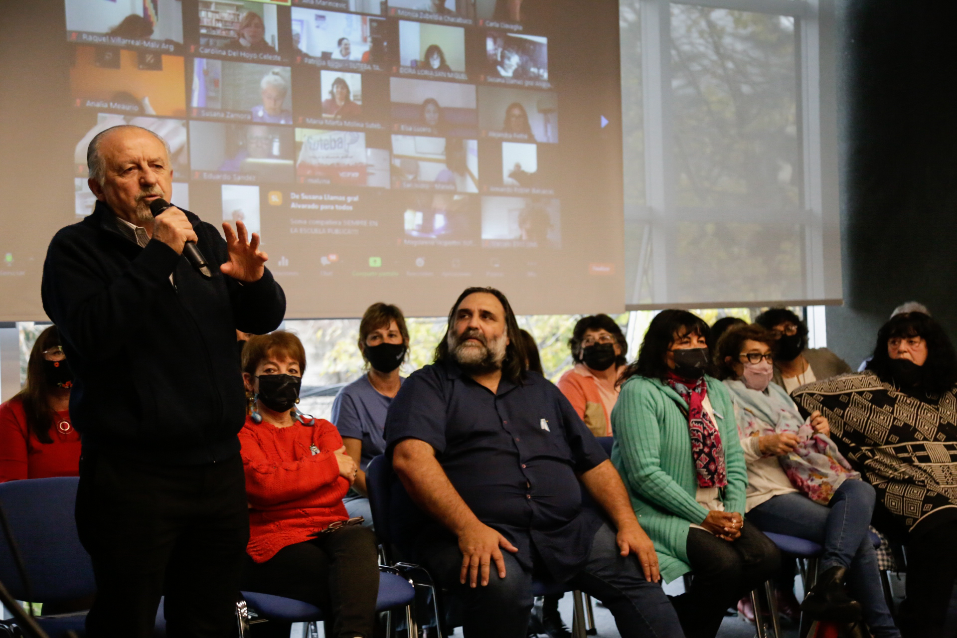 Asimismo, estuvieron presentes Angélica Graciano, Secretaria General de UTE; y representantes del Frente de Unidad Docente Bonaerense (FUDB): Alejandro Salcedo, de UDOCBA; Jorge Kalinger, de SADOP; Ariel Guedes, de AMET; y Mirta Petrocini, histórica dirigente de la FEB que recibió un reconocimiento especial de parte de Roberto Baradel por su contribución a la unidad del FUDB. Lxs Secretarixs Generales del SUTEBA de todas las Seccionales de la Provincia participaron del encuentro conectadxs en forma remota.