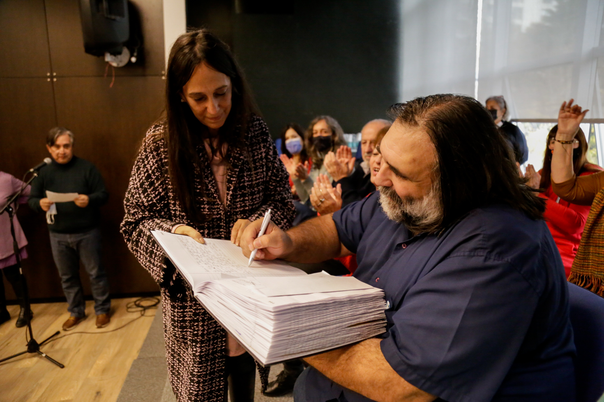 A su turno, Roberto Baradel remarcó: "Reconozco y abrazo a todxs lxs compañerxs de cada distrito de la Provincia y a todo el Consejo Ejecutivo Provincial, que es enorme y es un lujo. Agradezco a quienes están acá presentes acompañándonos, sobre todo al FUDB. Seguimos construyendo unidad de la clase trabajadora en defensa de nuestros derechos y levantando las banderas de nuestrxs 30.000 compañerxs detenidxs desaparecidxs, de nuestras Madres y Abuelas".