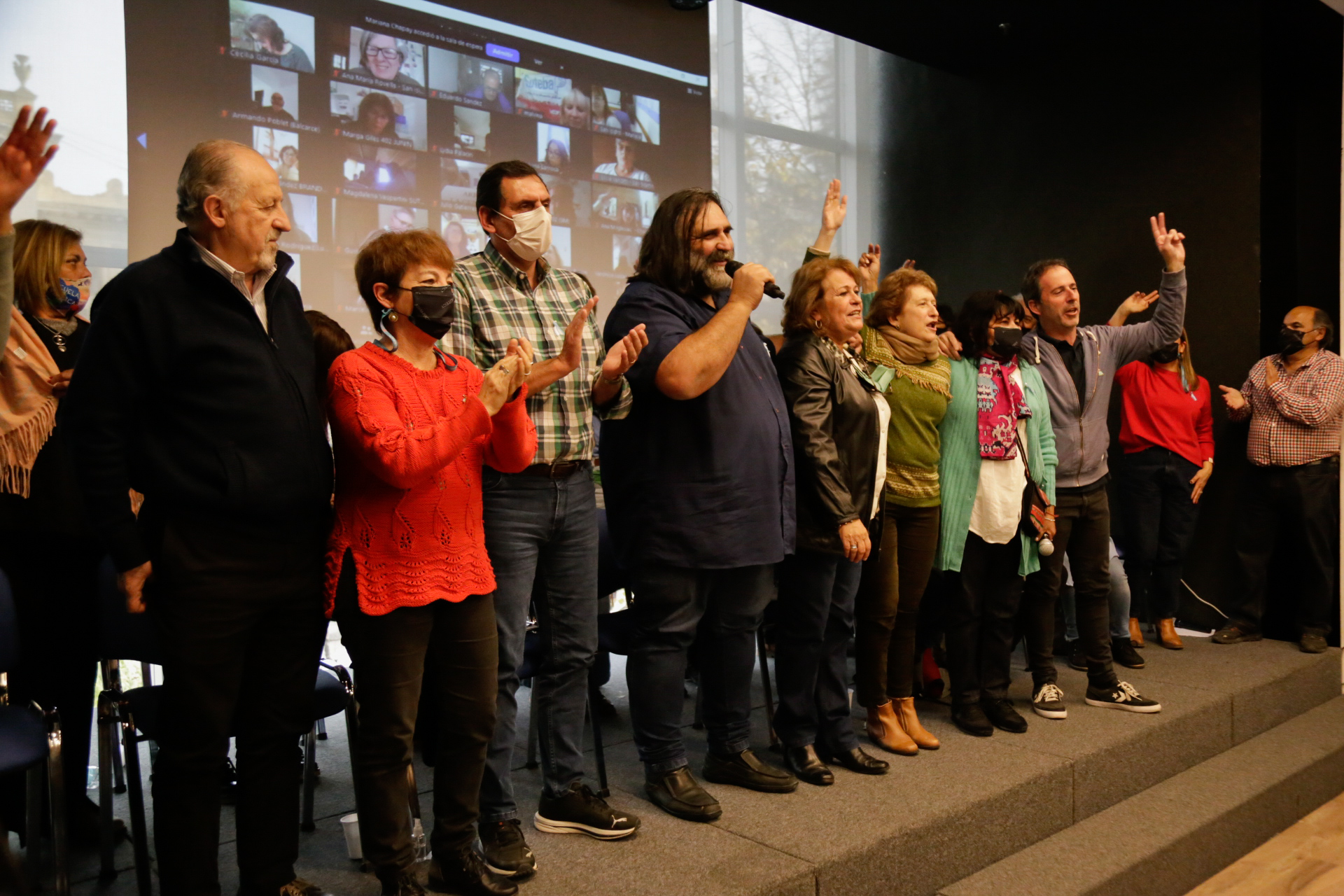 Tras la proclamación por parte de la Junta Electoral de la Lista Celeste-Violeta como vencedora en las elecciones del 11 de mayo, el acto fue coordinado políticamente por las Secretarias Generales Adjuntas, quienes mencionaron a todxs lxs integrantes del nuevo Consejo Ejecutivo Provincial. Silvia Almazán expresó: "saludamos a los 133 distritos y a lxs Secretarixs Generales electxs, en una jornada en la que se cumplen 34 años de la Marcha Blanca". Por su parte, María Laura Torre, con mucha emoción y refiriéndose a la historia del SUTEBA, señaló: "agradecemos la fortaleza de Mary Sánchez, Hugo Yasky y Cecilia Martínez por haber parido ese día, el día de lxs Trabajadorxs de la Educación". Luego, junto a todxs lxs presentes, recordaron a lxs 30 mil compañerxs detenidxs desaparecidxs, a Sandra y Rubén y a Carlos Fuentealba.