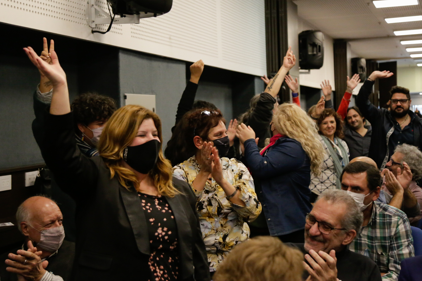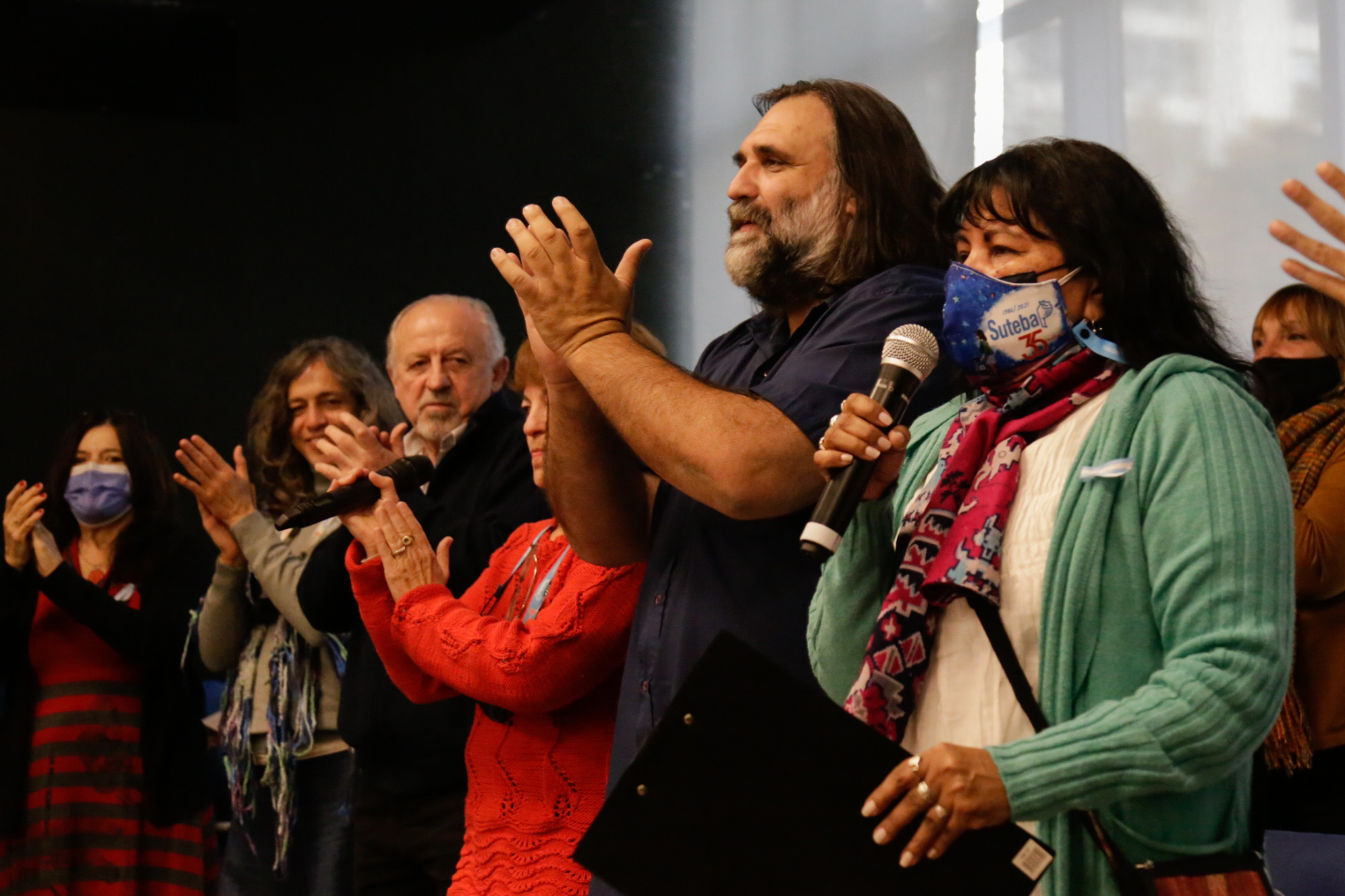 Tras la proclamación por parte de la Junta Electoral de la Lista Celeste-Violeta como vencedora en las elecciones del 11 de mayo, el acto fue coordinado políticamente por las Secretarias Generales Adjuntas, quienes mencionaron a todxs lxs integrantes del nuevo Consejo Ejecutivo Provincial. Silvia Almazán expresó: "saludamos a los 133 distritos y a lxs Secretarixs Generales electxs, en una jornada en la que se cumplen 34 años de la Marcha Blanca". Por su parte, María Laura Torre, con mucha emoción y refiriéndose a la historia del SUTEBA, señaló: "agradecemos la fortaleza de Mary Sánchez, Hugo Yasky y Cecilia Martínez por haber parido ese día, el día de lxs Trabajadorxs de la Educación". Luego, junto a todxs lxs presentes, recordaron a lxs 30 mil compañerxs detenidxs desaparecidxs, a Sandra y Rubén y a Carlos Fuentealba.