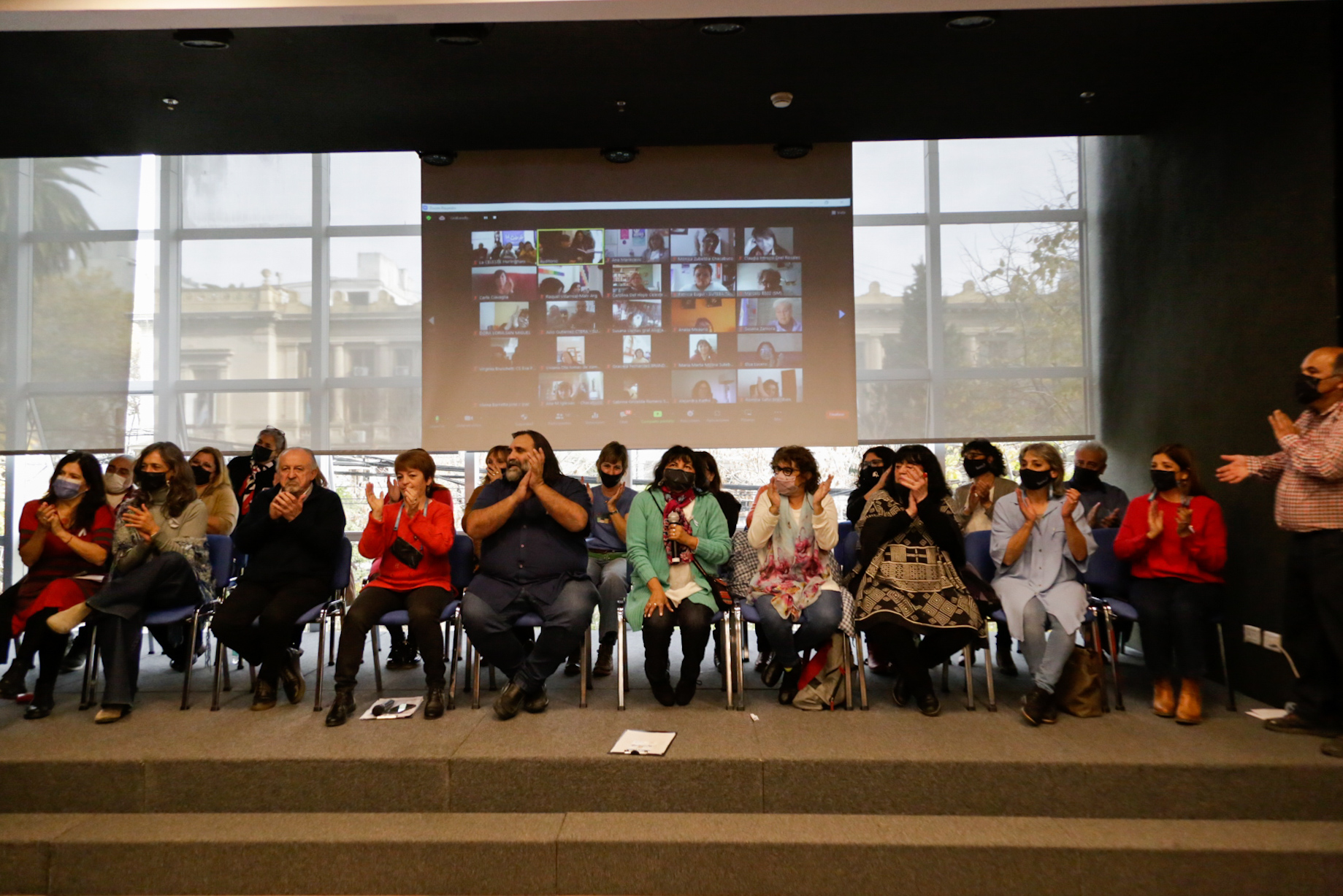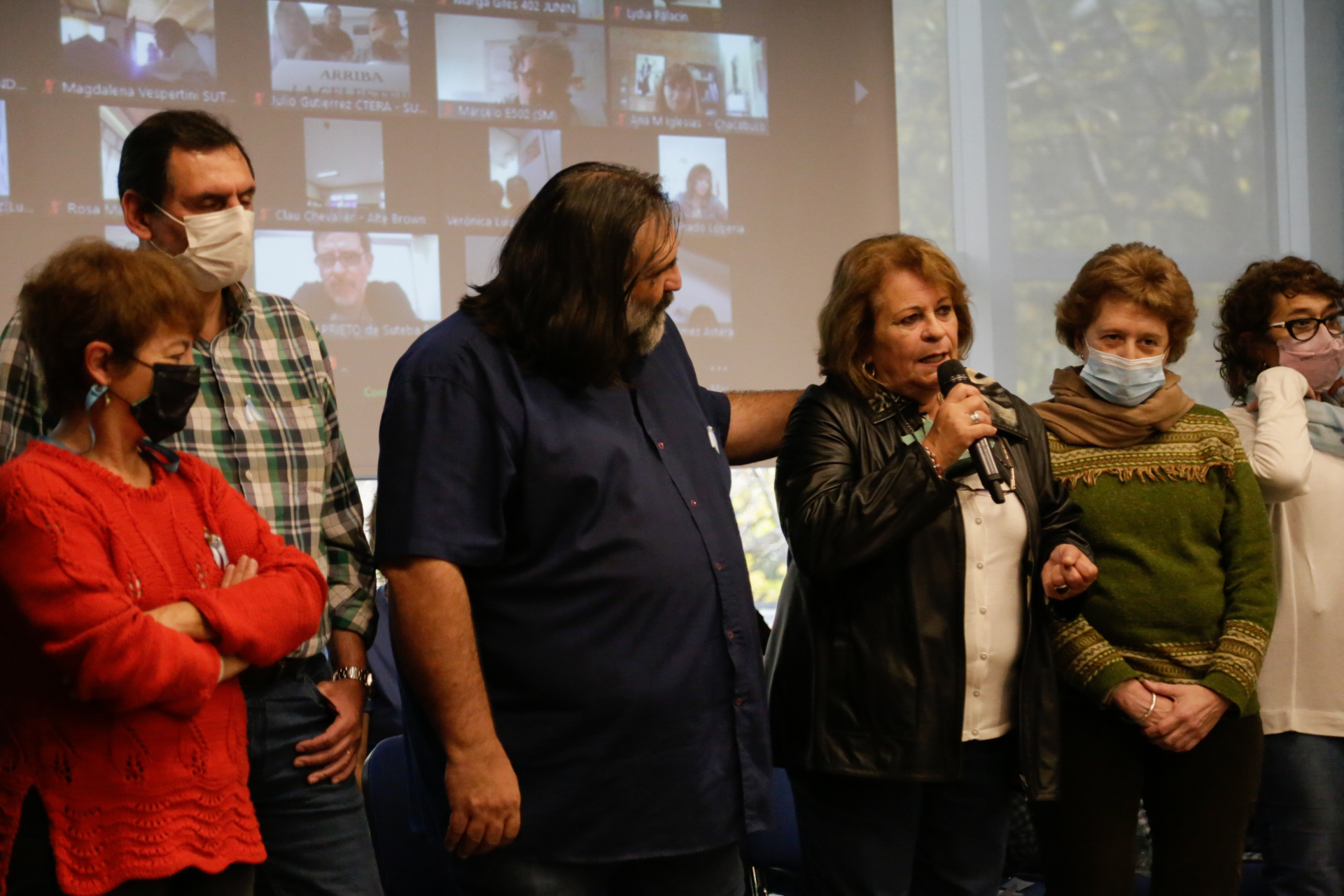 Asimismo, estuvieron presentes Angélica Graciano, Secretaria General de UTE; y representantes del Frente de Unidad Docente Bonaerense (FUDB): Alejandro Salcedo, de UDOCBA; Jorge Kalinger, de SADOP; Ariel Guedes, de AMET; y Mirta Petrocini, histórica dirigente de la FEB que recibió un reconocimiento especial de parte de Roberto Baradel por su contribución a la unidad del FUDB. Lxs Secretarixs Generales del SUTEBA de todas las Seccionales de la Provincia participaron del encuentro conectadxs en forma remota.