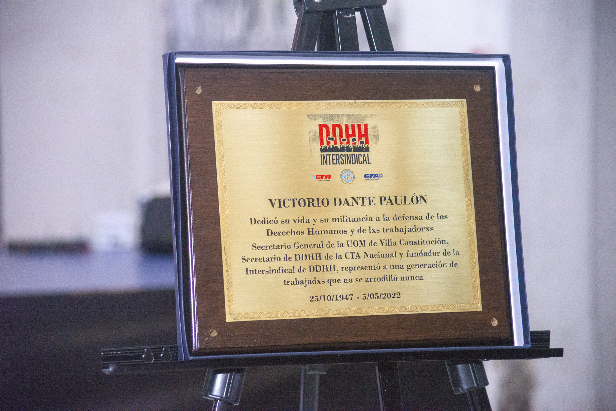 El SUTEBA, en el marco de la Intersindical de Derechos Humanos, rindió ayer un emotivo homenaje a uno de los fundadores del espacio, el histórico dirigente metalúrgico Victorio Paulón, quien fuera un articulador fundamental de las luchas del movimiento obrero y los Organismos de DDHH.