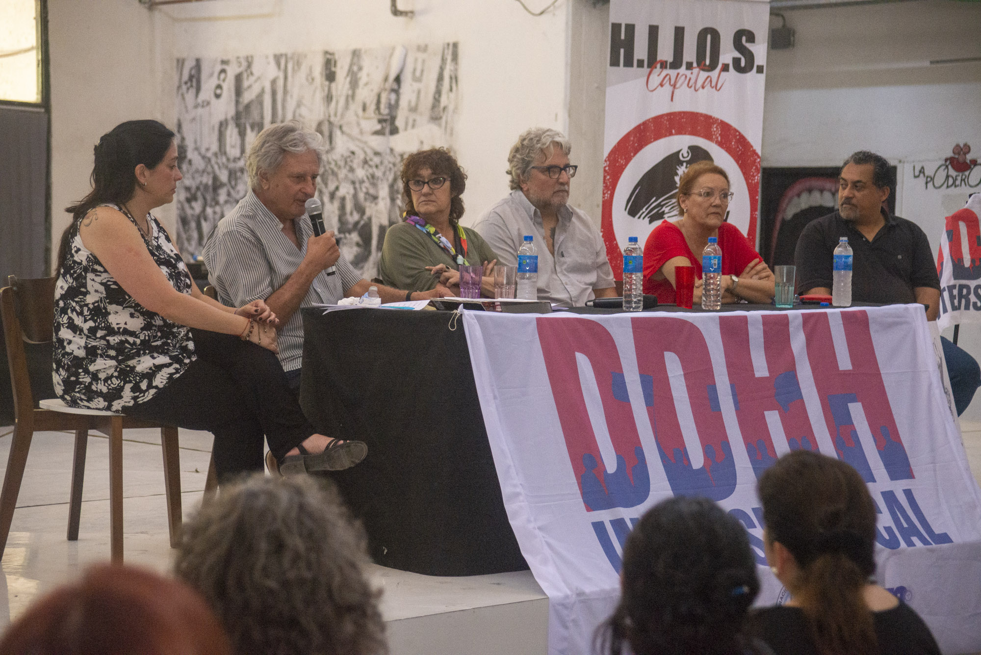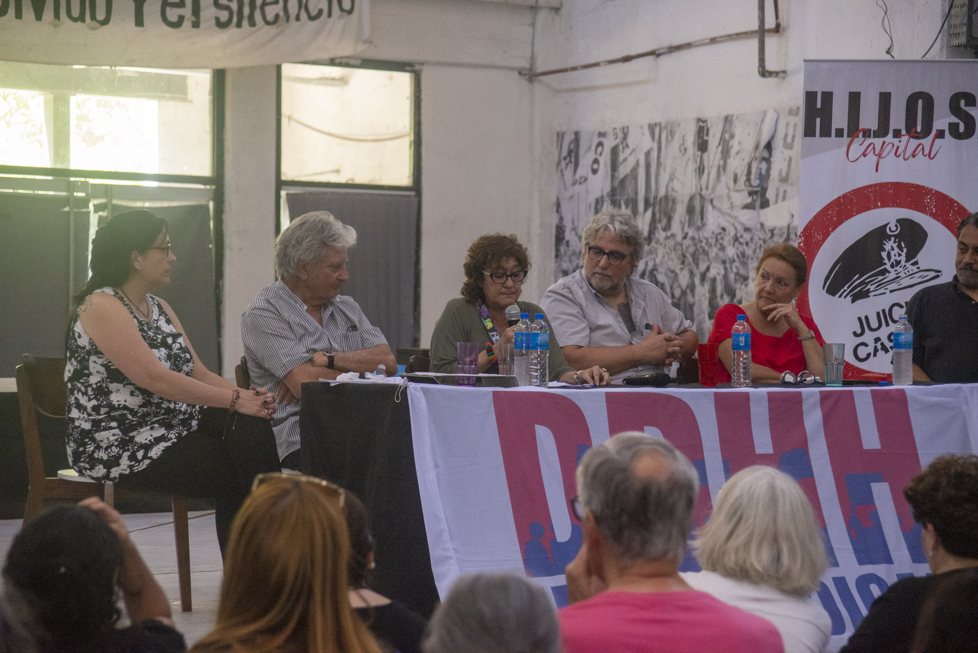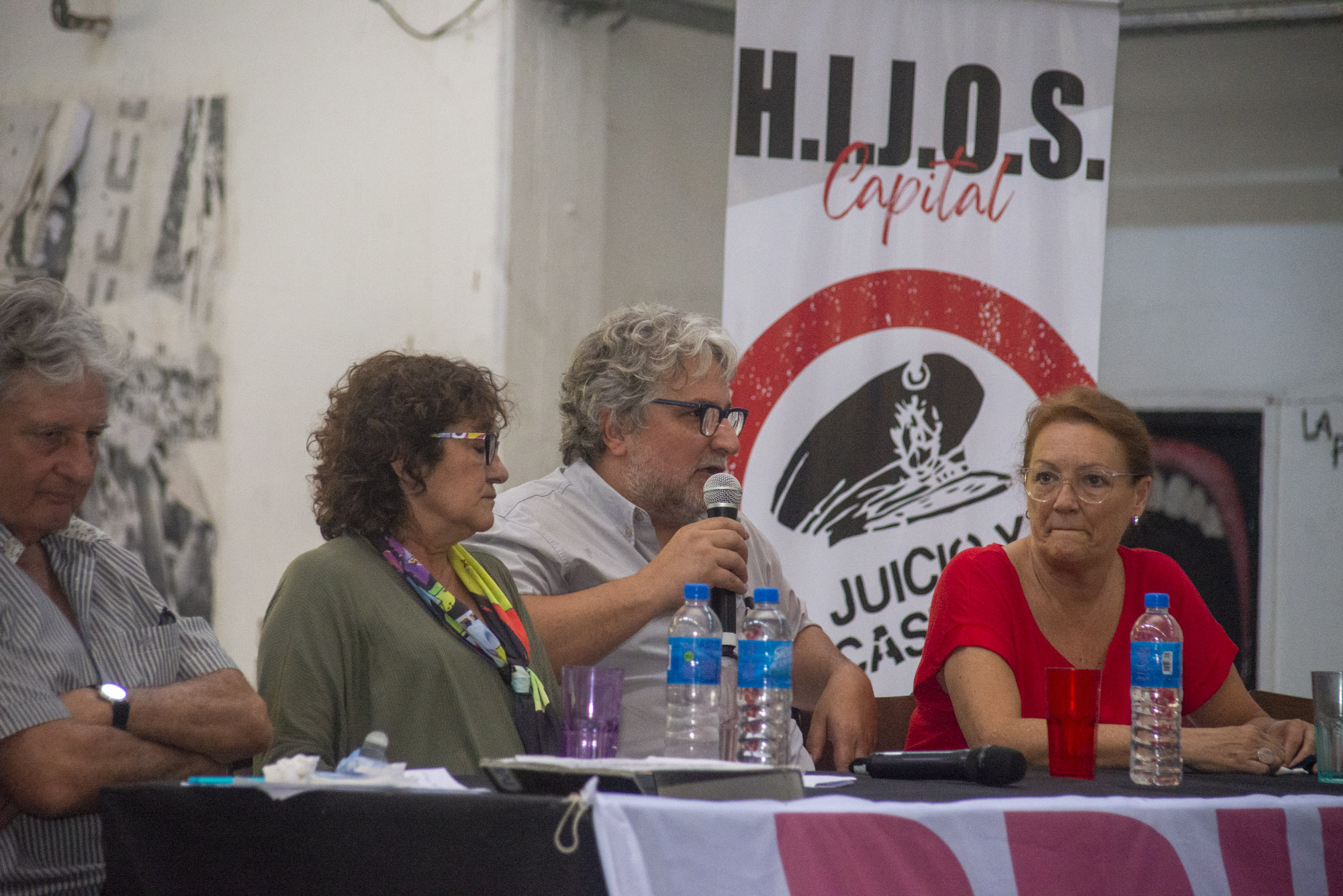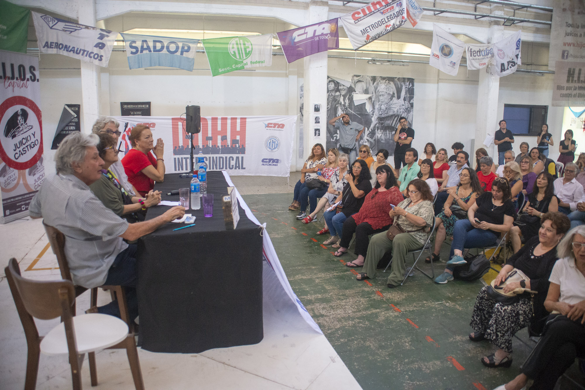 El panel de oradorxs estuvo conformado por Carlos Monestes, dirigente de CTA Capital; Patricia Mounier, Secretaria de DDHH de SADOP Nacional, ambxs de la Intersindical; Sonia Alesso, Secretaria General de CTERA; y Mariano Paulón, hijo de Victorio.