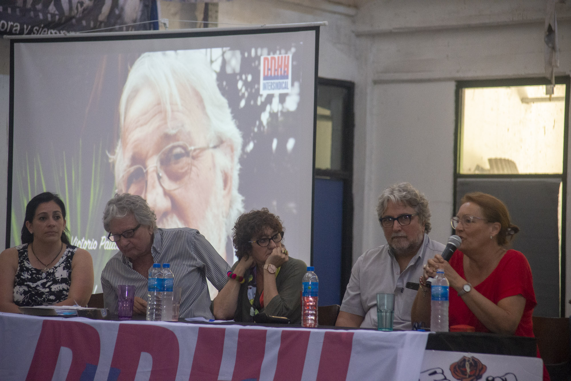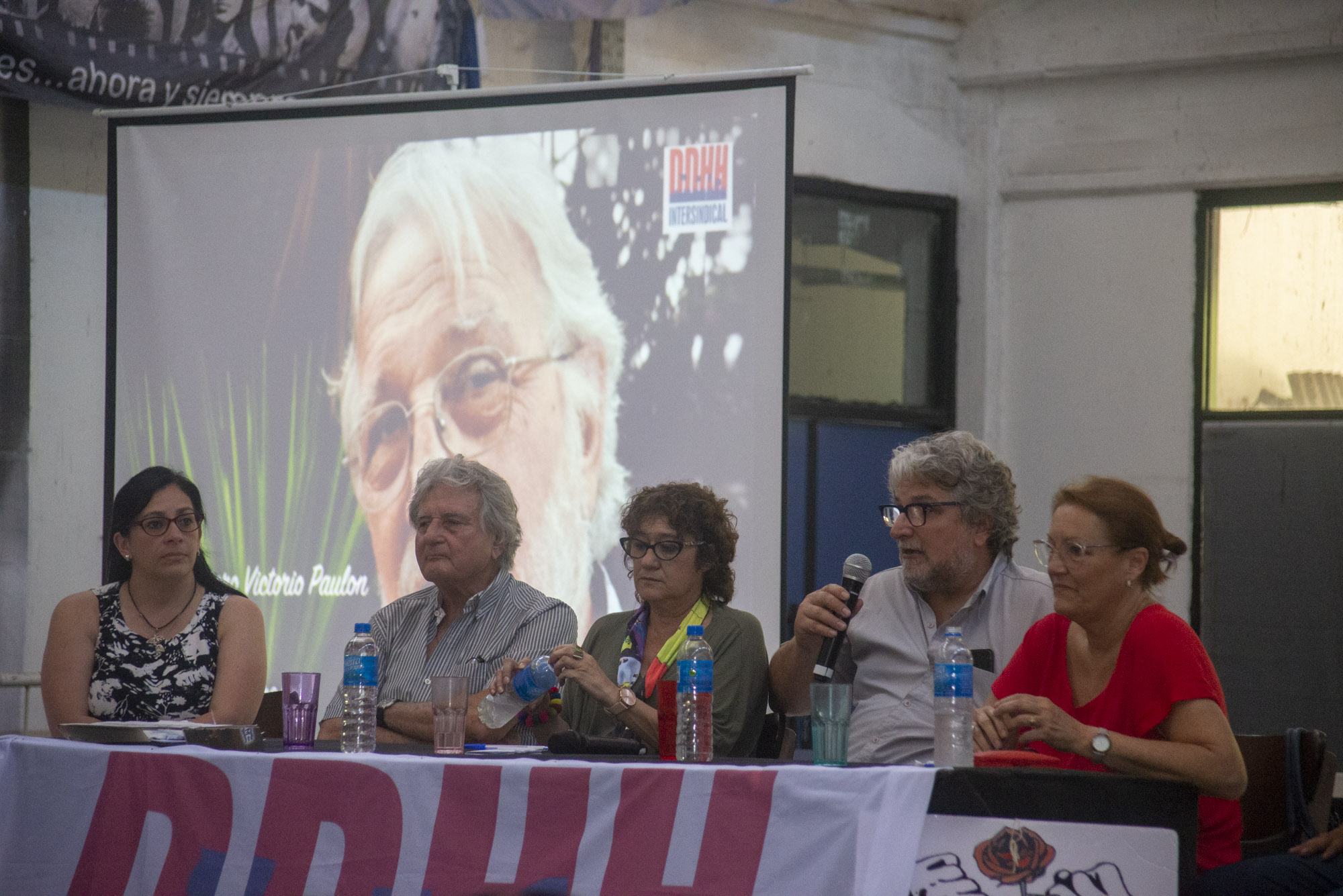 Antes de la participación de lxs panelistas, el homenaje se inició con la proyección de un conmovedor video (que podés ver en esta nota) en el que se repasan distintos momentos históricos de la rica trayectoria militante de Victorio. El cierre fue con otro video, en el que se recordó la participación de Paulón en la Intersindical.