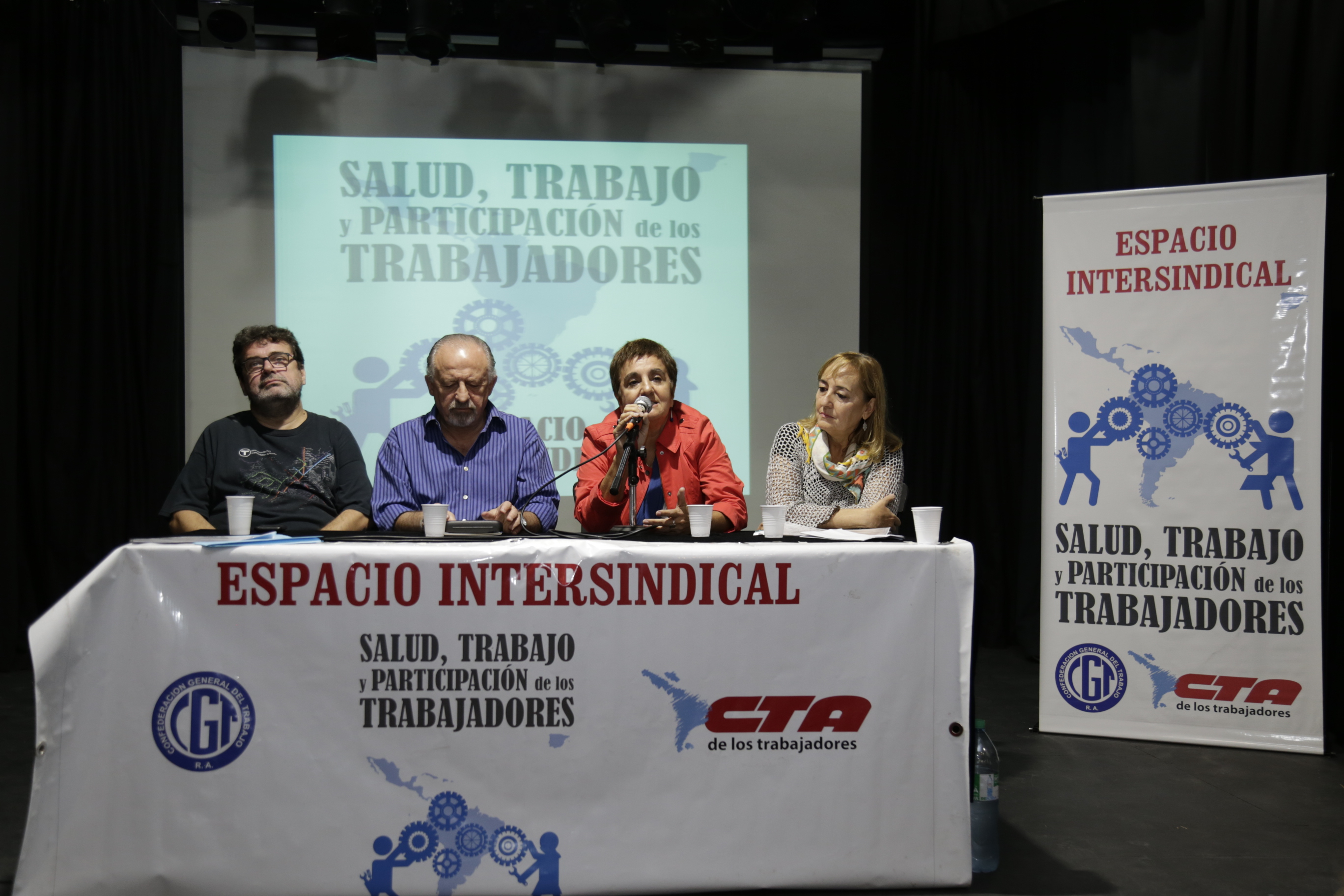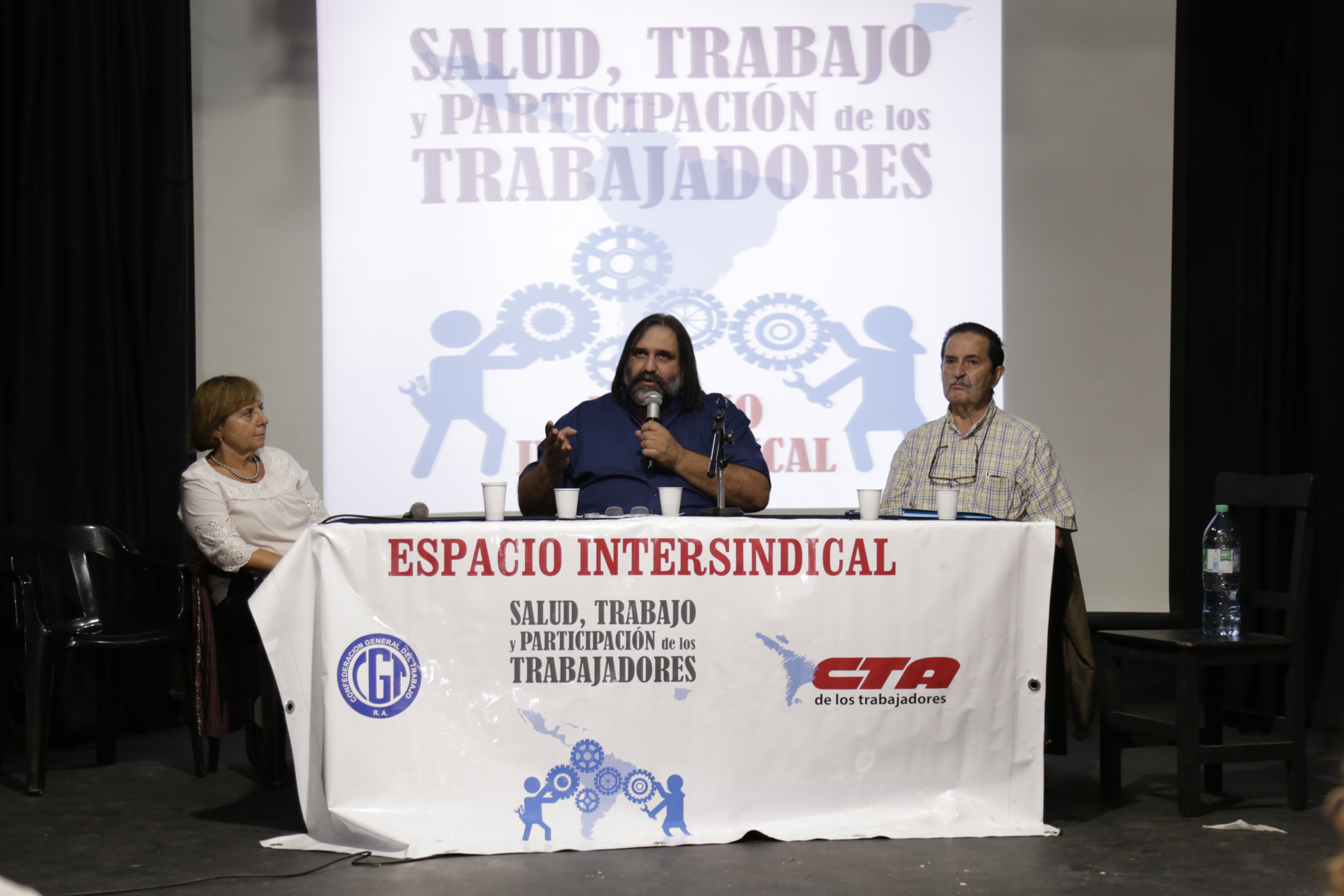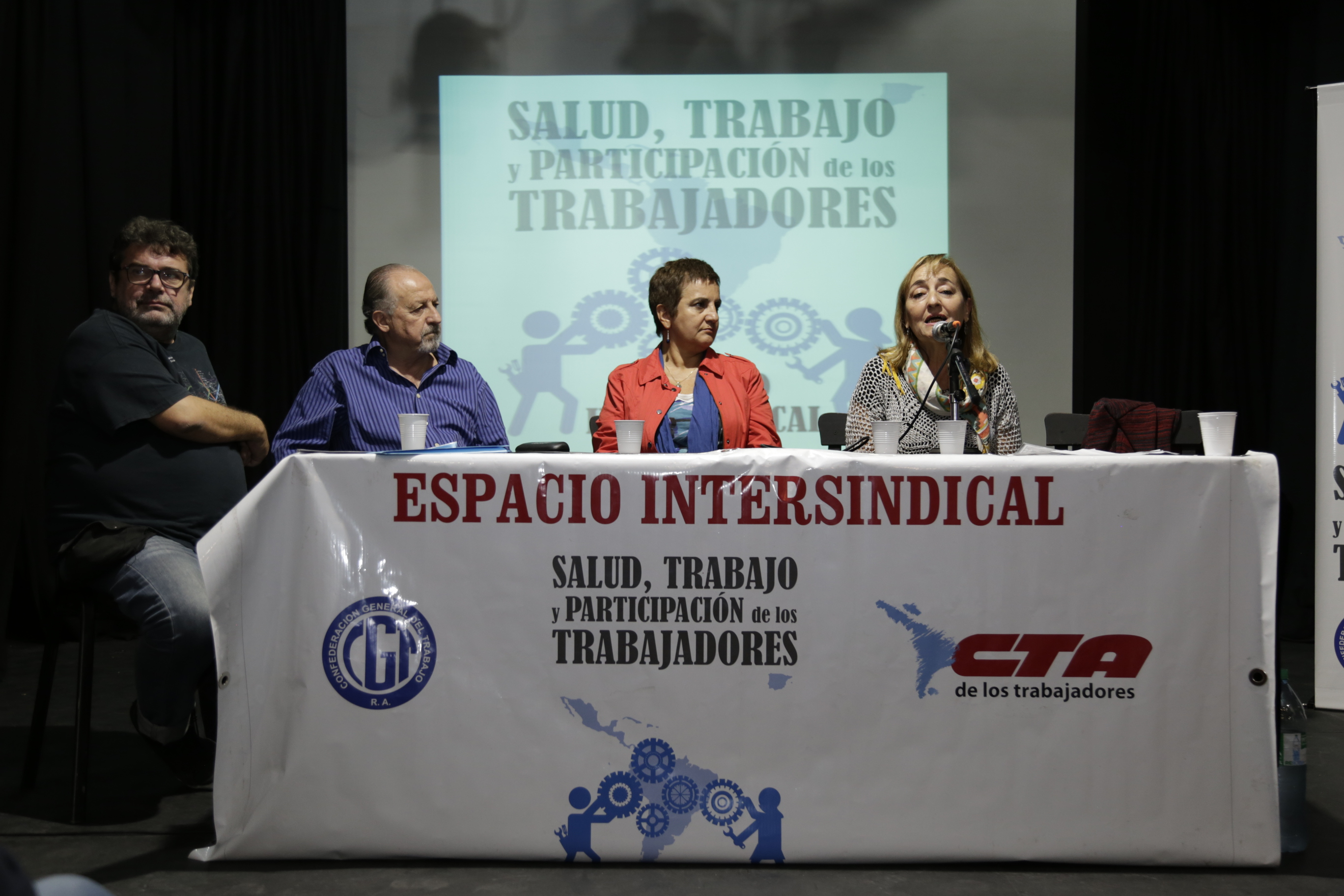 Con la presencia de los sindicatos integrantes de la CTA, la CGT y de la Corriente Federal, se desarrolló un panel que contó con la presencia de Hugo Yasky, Secretario General de la CTA; Roberto Pianelli, Secretario de Salud Laboral de la CTA; Marina Jaureguiberry, Directora de CyMAT de SADOP; Noemí Tejeda, Secretaria de Salud Laboral de CTERA y Sonia Alesso, Secretaria General de CTERA, quien expuso los conflictos provinciales y a nivel nacional que existen en el ámbito educativo.