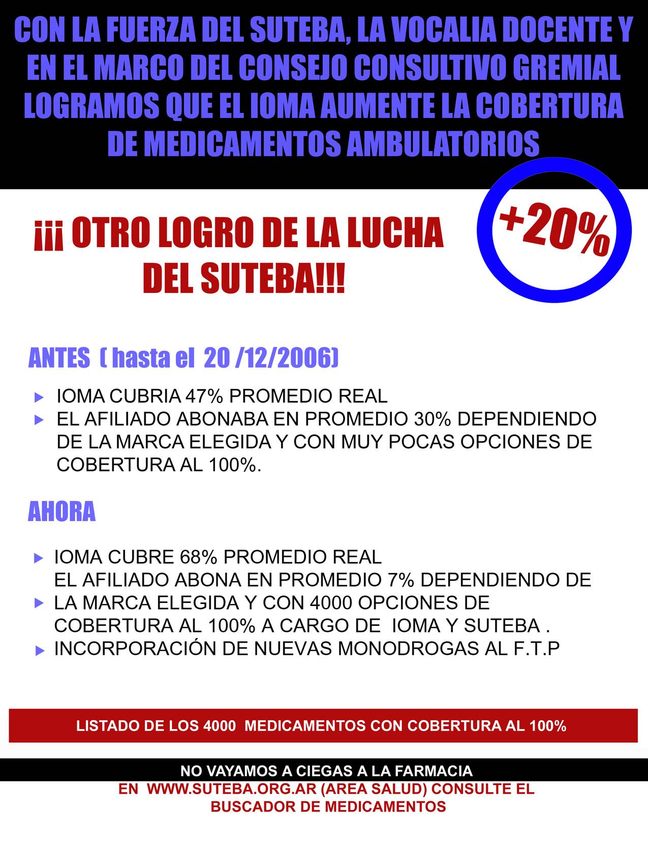 El SUTEBA a través de su VOCALIA DOCENTE en el IOMA presentó un proyecto al Directorio y logró la firma del Decreto N° 37.744 que modifica la Ley Reglamentaria de los Artículos 18 y 19. Antes recibían cobertura los hijos de afiliados titulares hasta los 18 años, a partir de febrero 2008. la tendrán hasta los 21 años de edad. Esta inclusión en el IOMA posibilita que nuestros hijos continúen bajo los beneficios que brinda el SUTEBA a través del Coseguro.