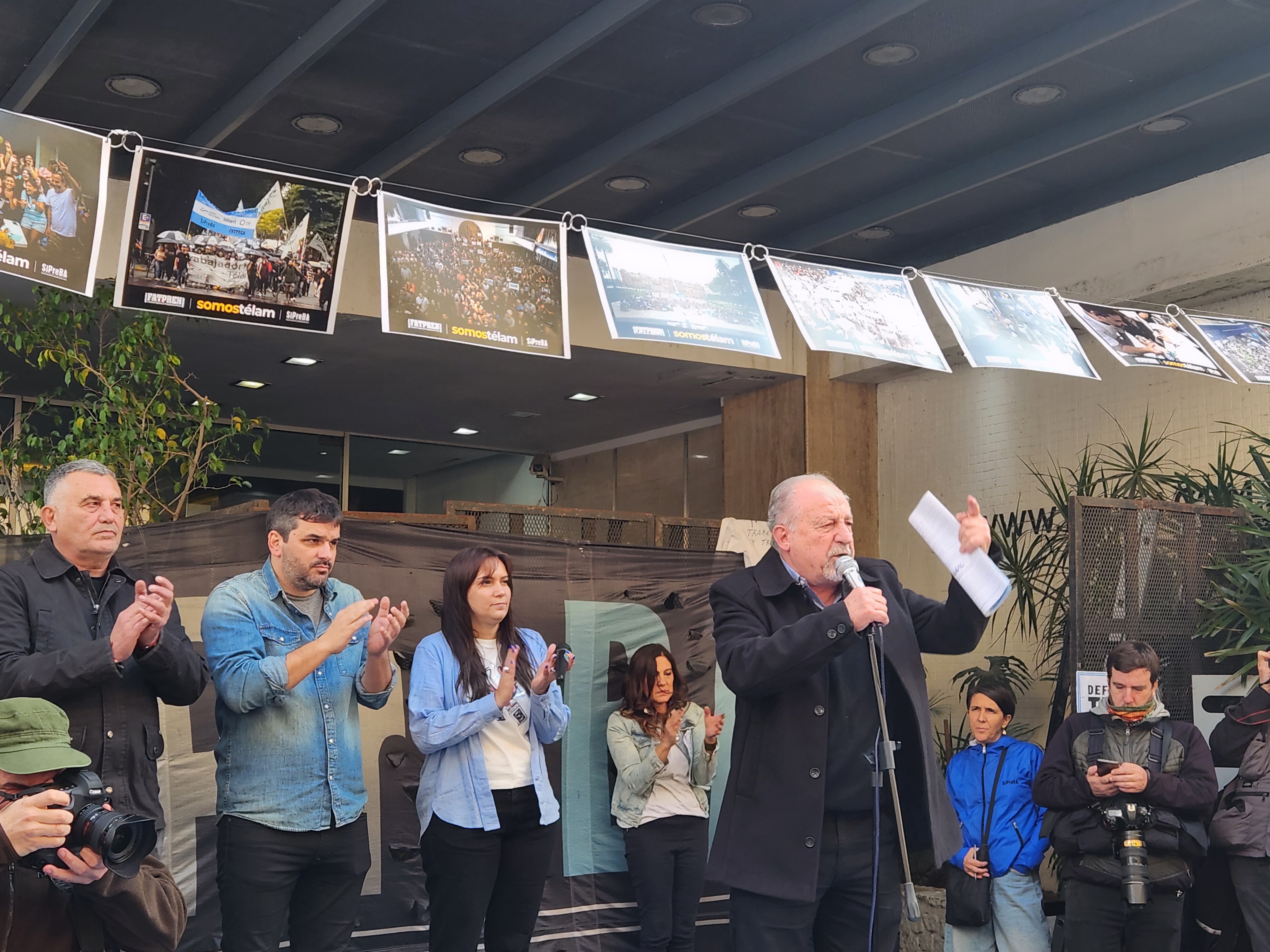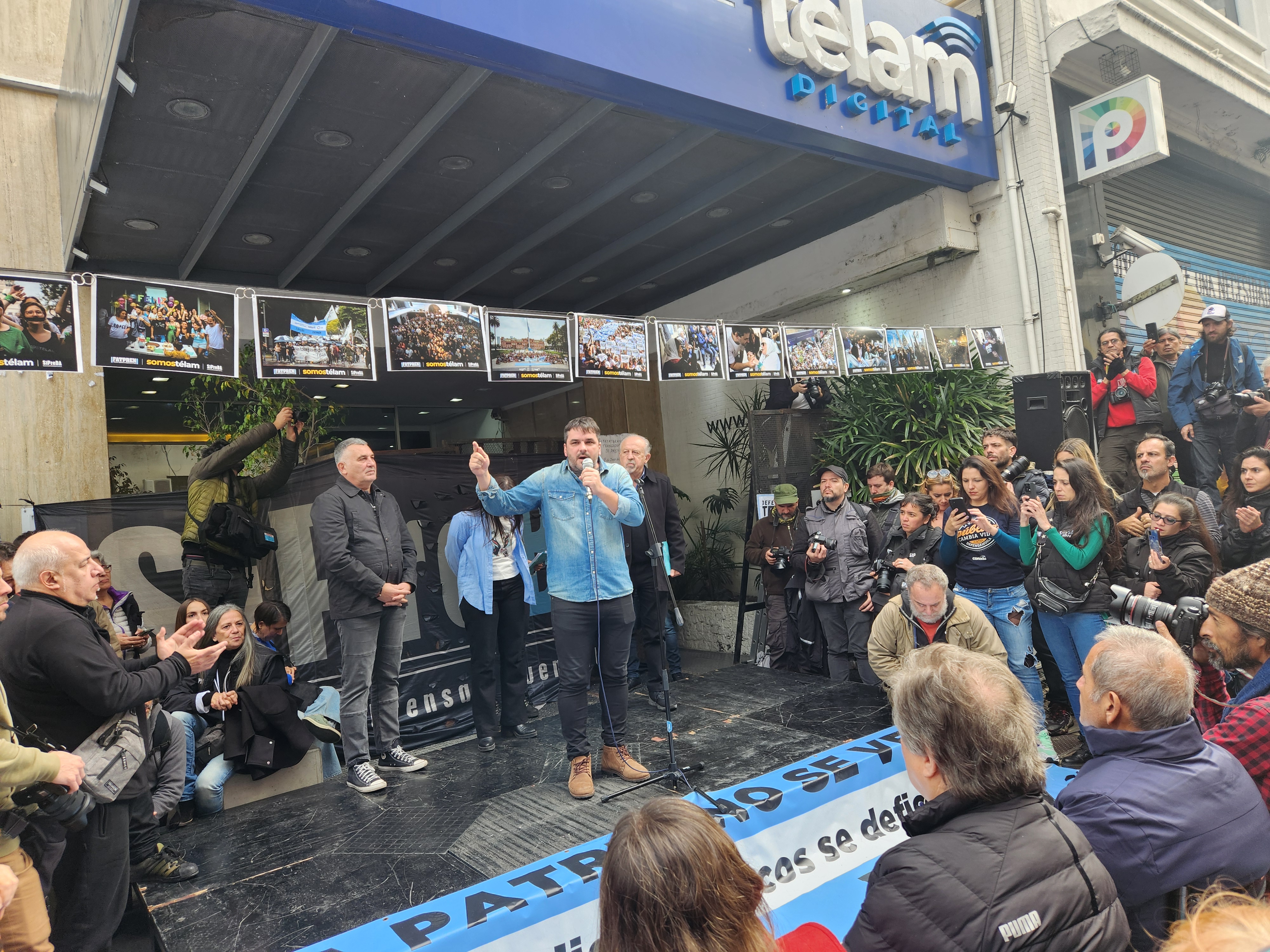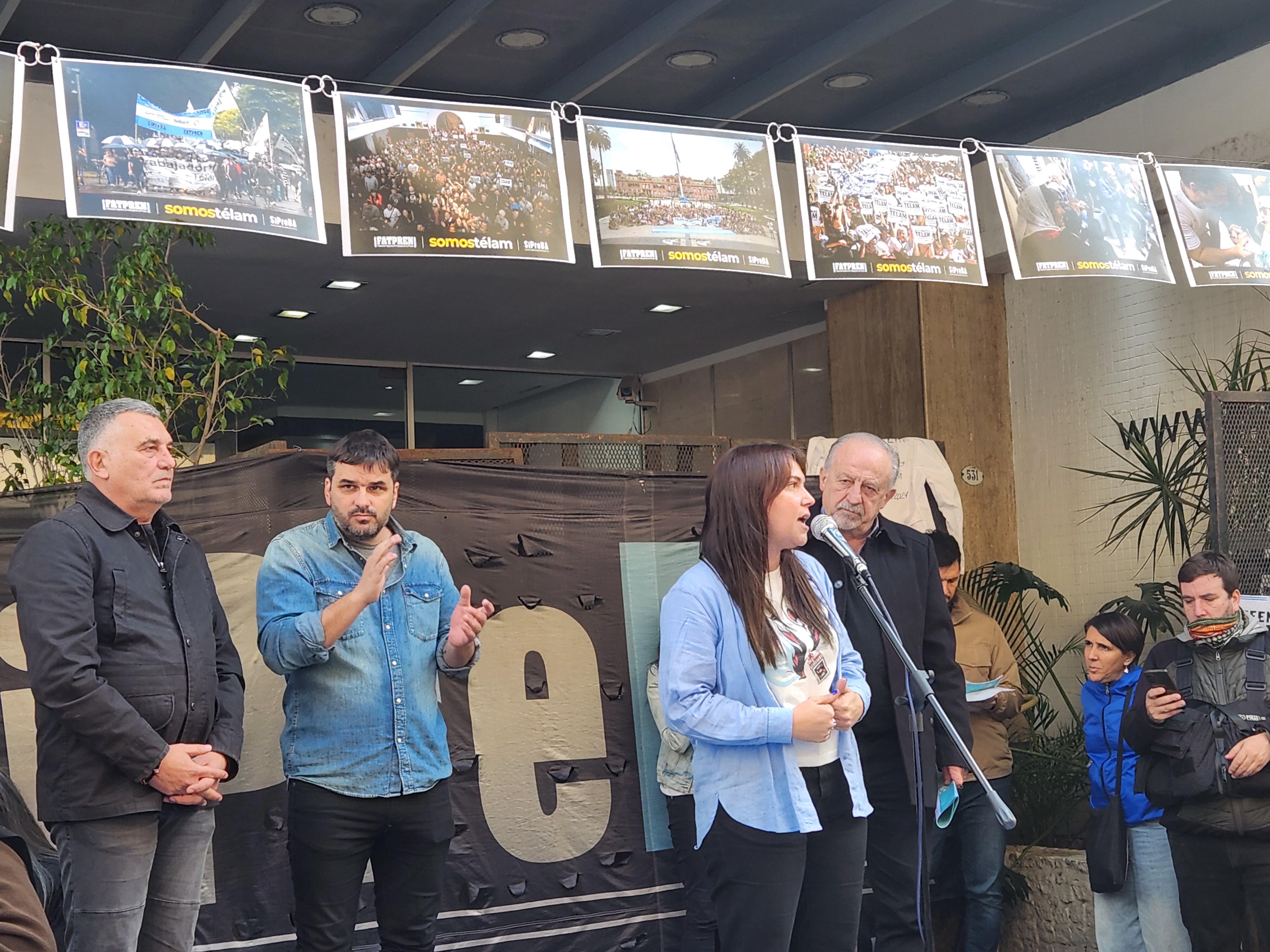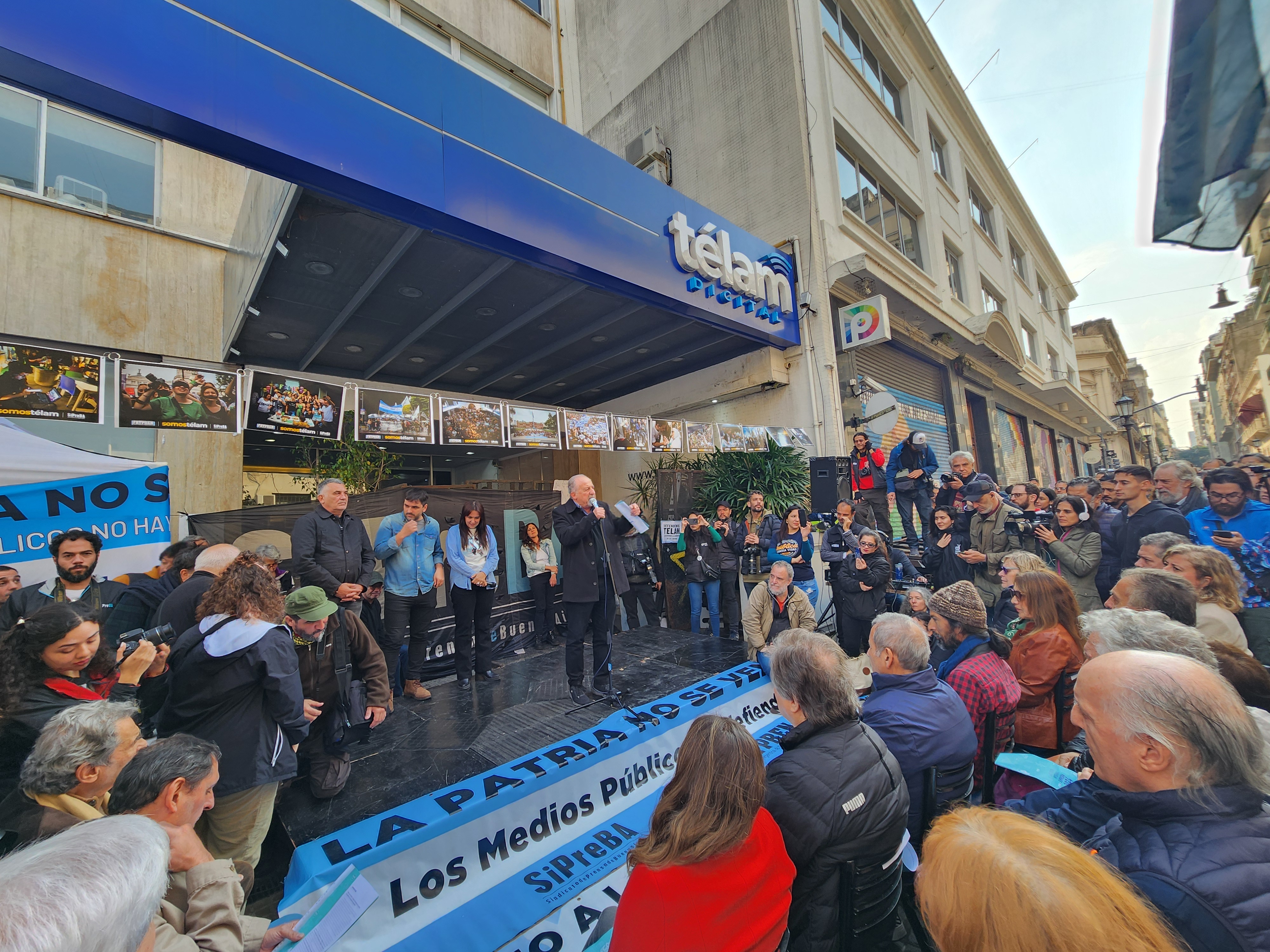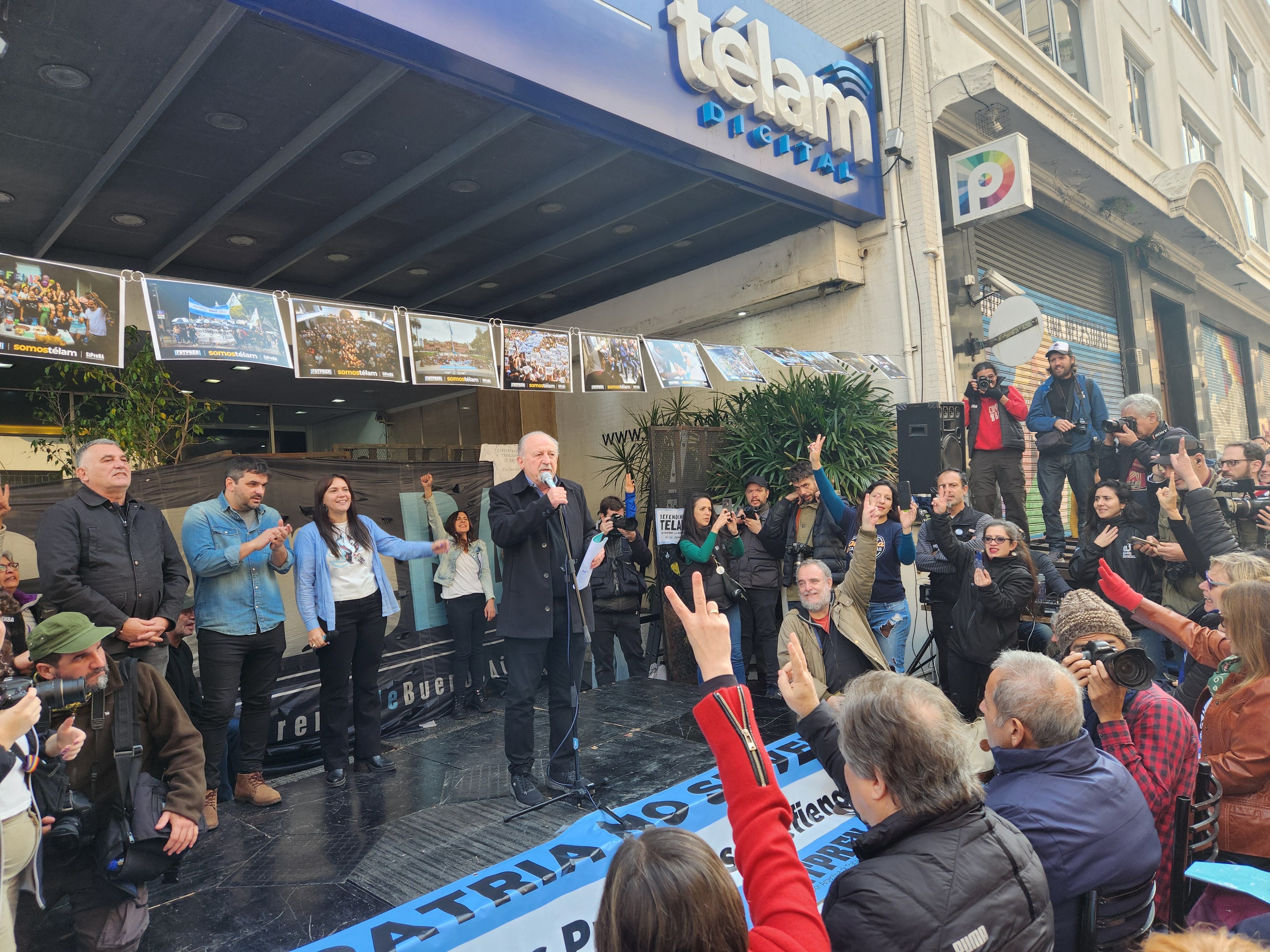 En el día de la fecha, se realizó un acto en la sede de Télam en defensa de los medios públicos, los salarios y puestos de trabajo y contra el cierre y los ataques a la libertad de expresión.