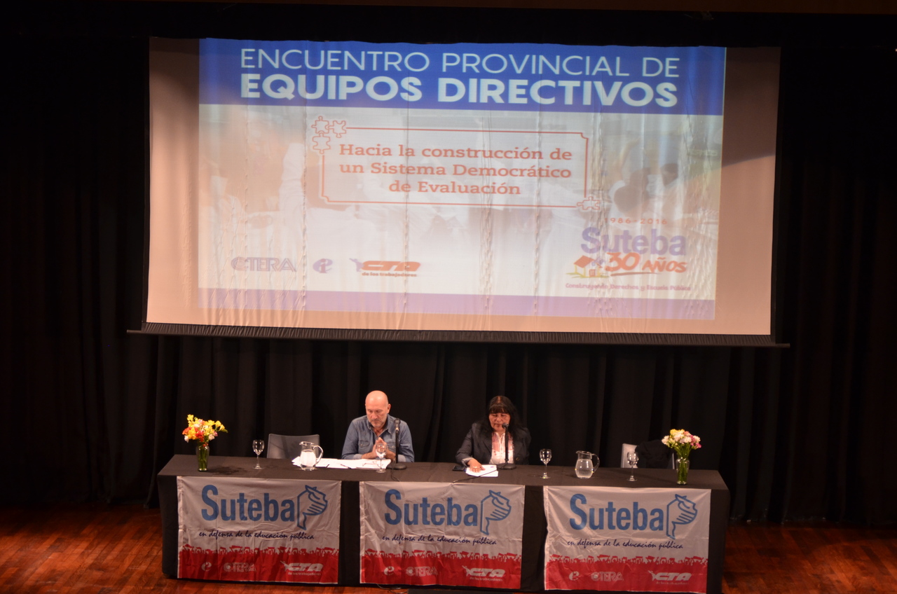 Equipos Directivos de más de mil escuelas convocados por SUTEBA estuvieron presentes en el encuentro denominado: "Hacia la construcción de un Sistema Democrático de Evaluación", en representación de otras miles de instituciones que se reunieron en todos los distritos de la provincia.