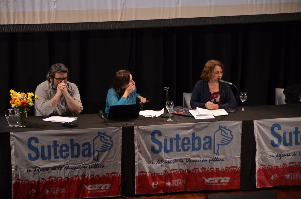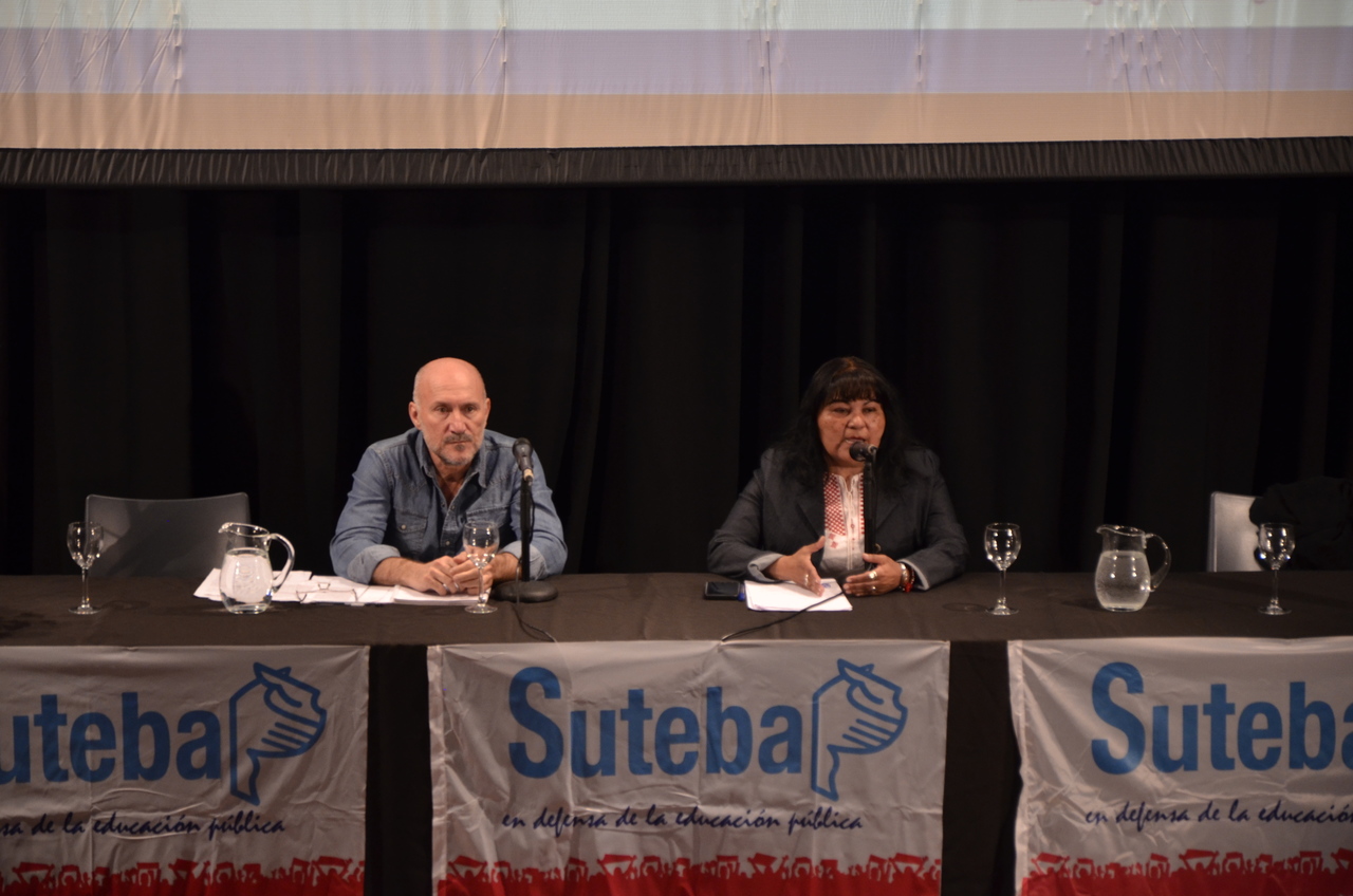 Hubo dos paneles para abrir el encuentro: el primero, protagonizado por la Secretaria de Cultura y Educación de SUTEBA, Silvia Almazán, y el Secretario de Educación de CTERA, Miguel Duhalde.