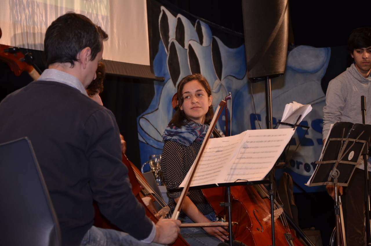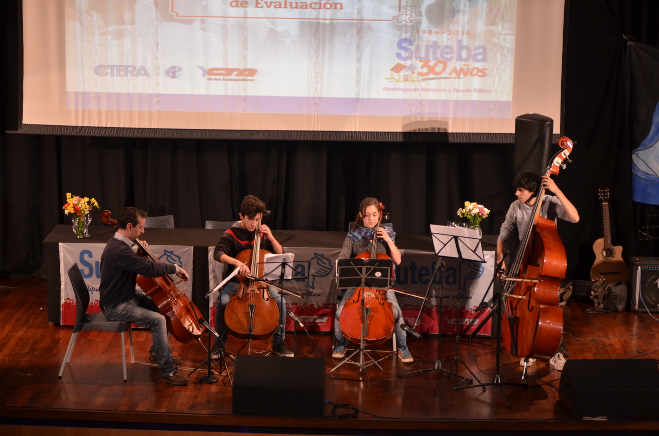 Luego, un cuarteto del Programa socioeducativo de Coros y Orquestas del Bicentenario compartió con todos su magnífica música, expresión de la lucha de todos los docentes que continúan trabajando a pesar de no cobrar hace 6 u 8 meses.