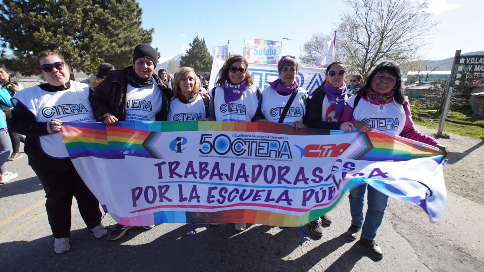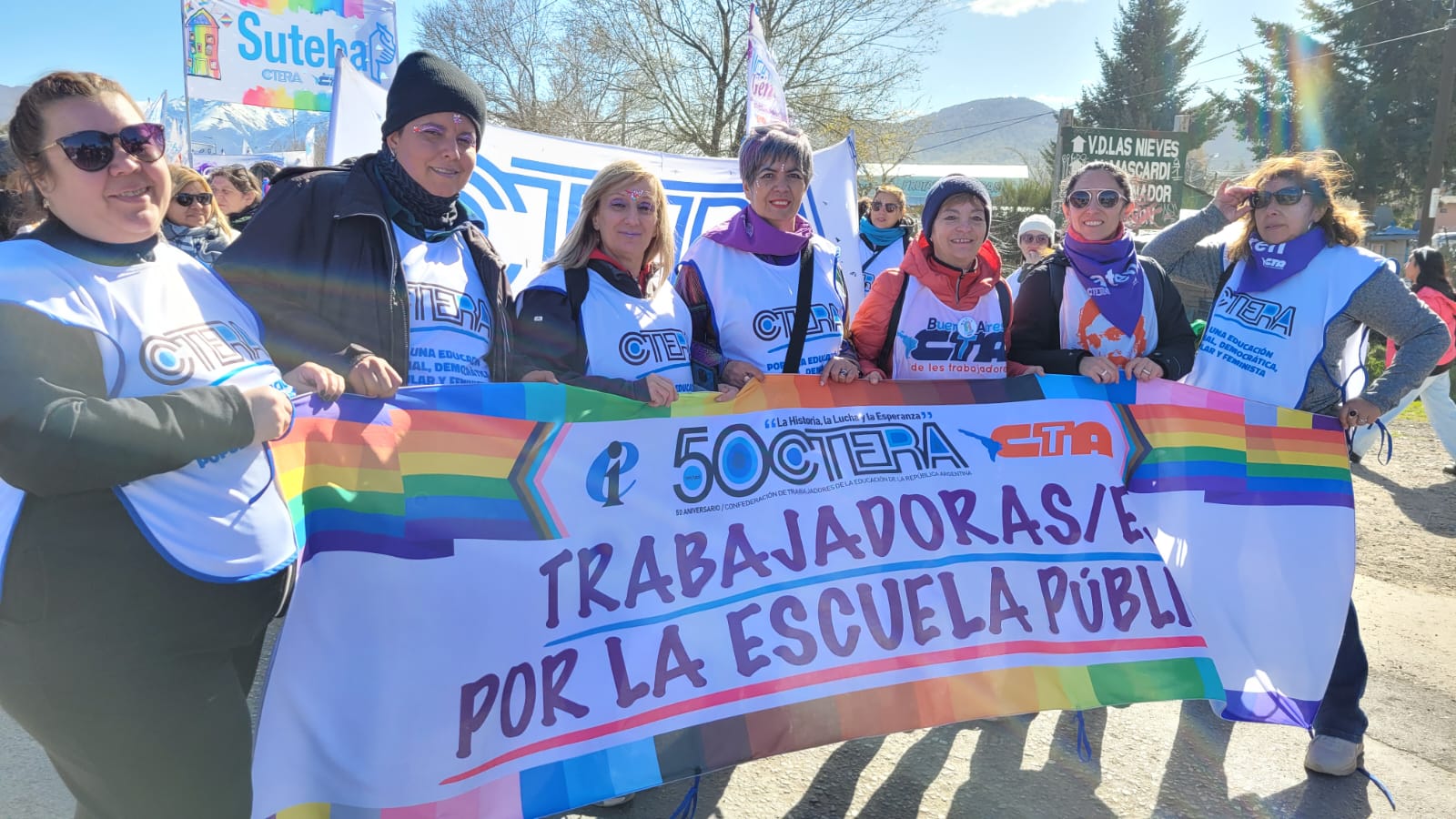 Por su parte, la Subsecretaria de Igualdad de Géneros y Diversidades, Amanda González, destacó: "Finalizó un nuevo Encuentro Plurinacional de Mujeres y Disidencias. Bariloche nos encontró fortalecidxs y en unidad, poniendo el cuerpo y la palabra en la calle y en los distintos talleres donde las Trabajadoras y les Trabajadores representaron a los territorios de la provincia de Buenos Aires. Nos encontramos profundamente emocionadas y orgullosas de nuestras compañeras y compañeres y de nuestra Organización Sindical, que siempre está donde hay que estar para seguir construyendo Escuela Pública nacional, popular, feminista y con perspectiva de géneros y diversidades".