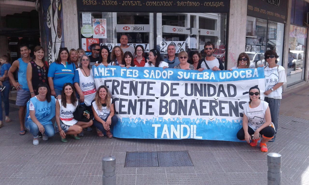 En toda la provincia de Buenos Aires, lxs Trabajadorxs de la Educación, en el marco del Frente de Unidad Docente Bonaerense, se encuentran realizando diversas actividades para visibilizar el conflicto educativo que la Gobernadora María Eugenia Vidal se empeña en esconder.