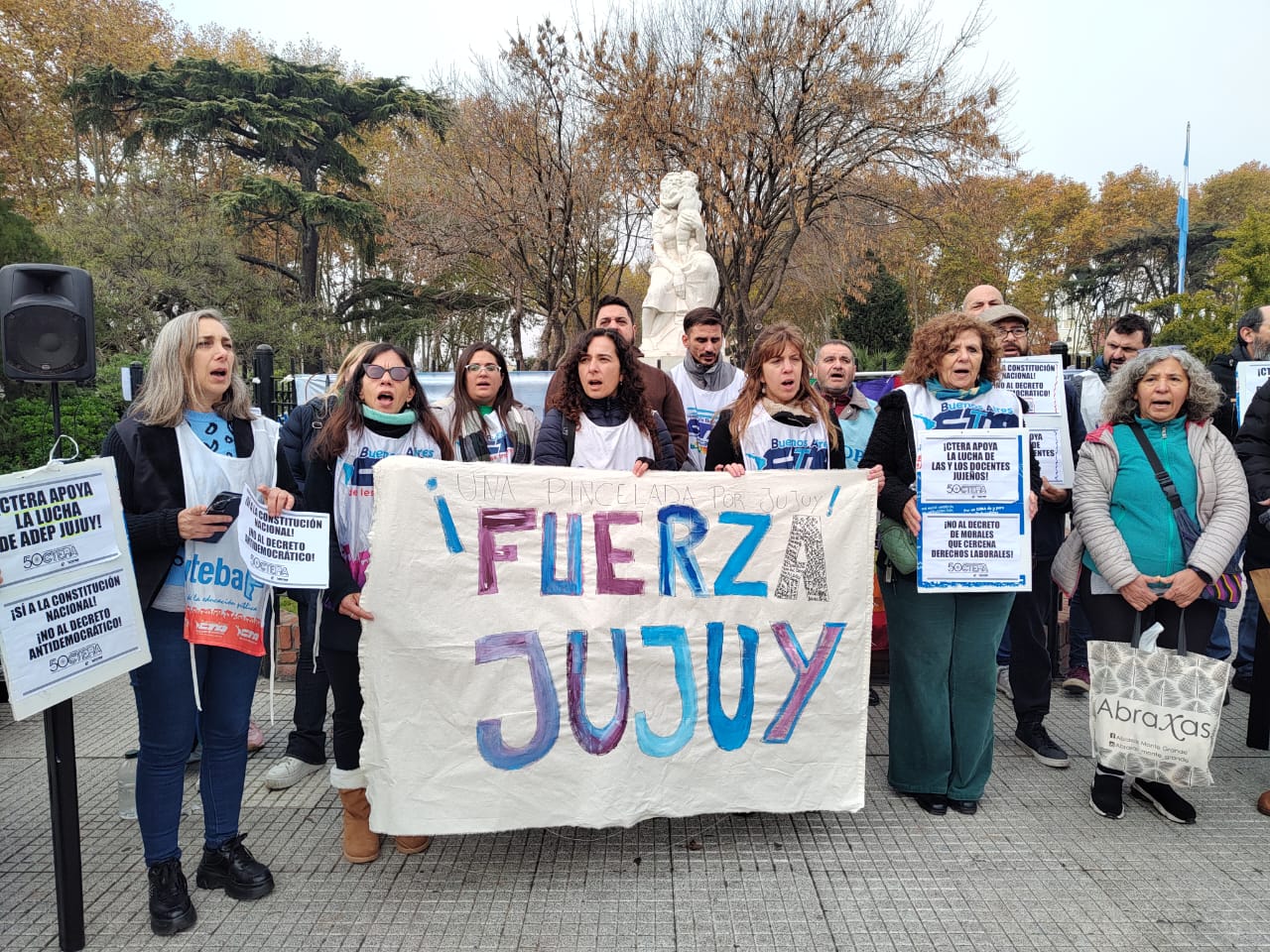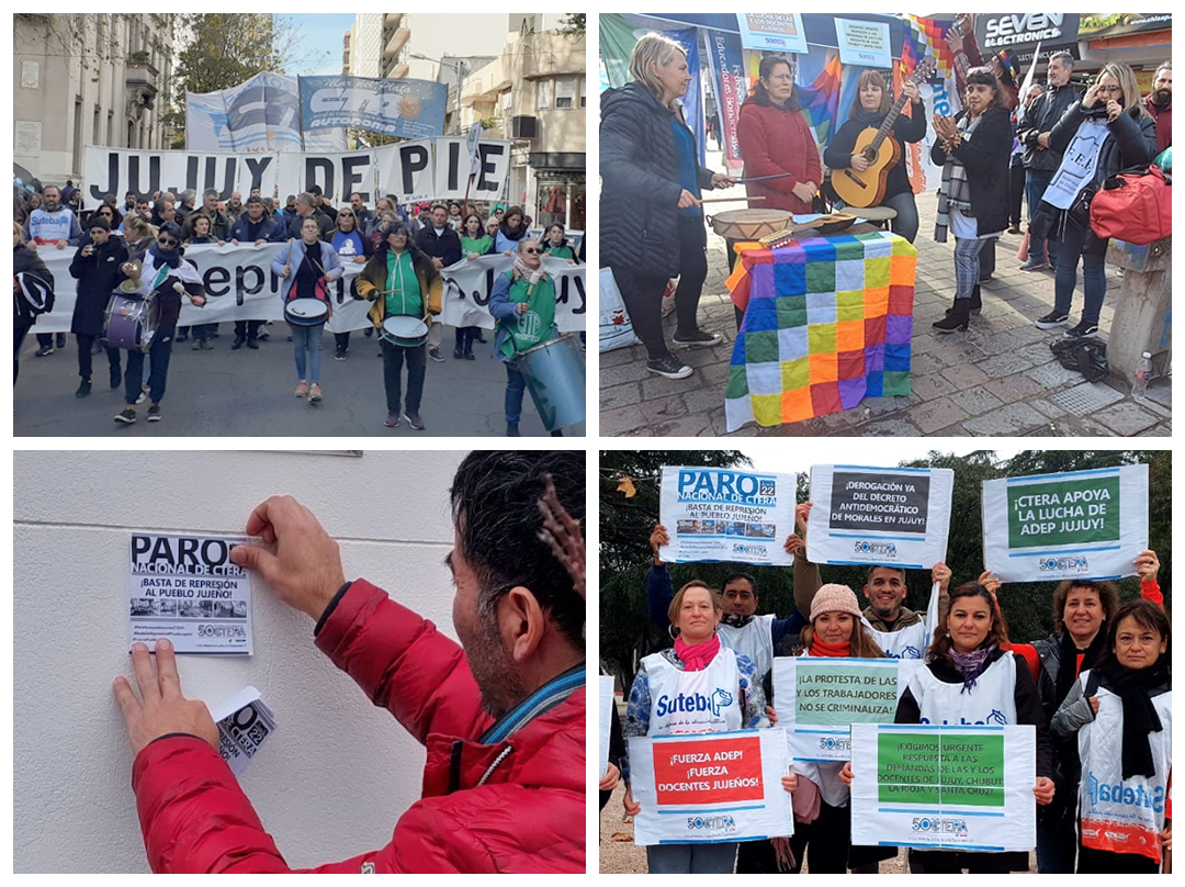 En el marco del Paro Nacional Docente convocado para hoy por la CTERA, lxs Trabajadorxs de la Educación de toda la Provincia realizan diversas actividades en solidaridad con el pueblo jujeño y en contra de la salvaje represión y la sanción de una reforma constitucional que vulnera los más elementales derechos humanos, sociales y sindicales.