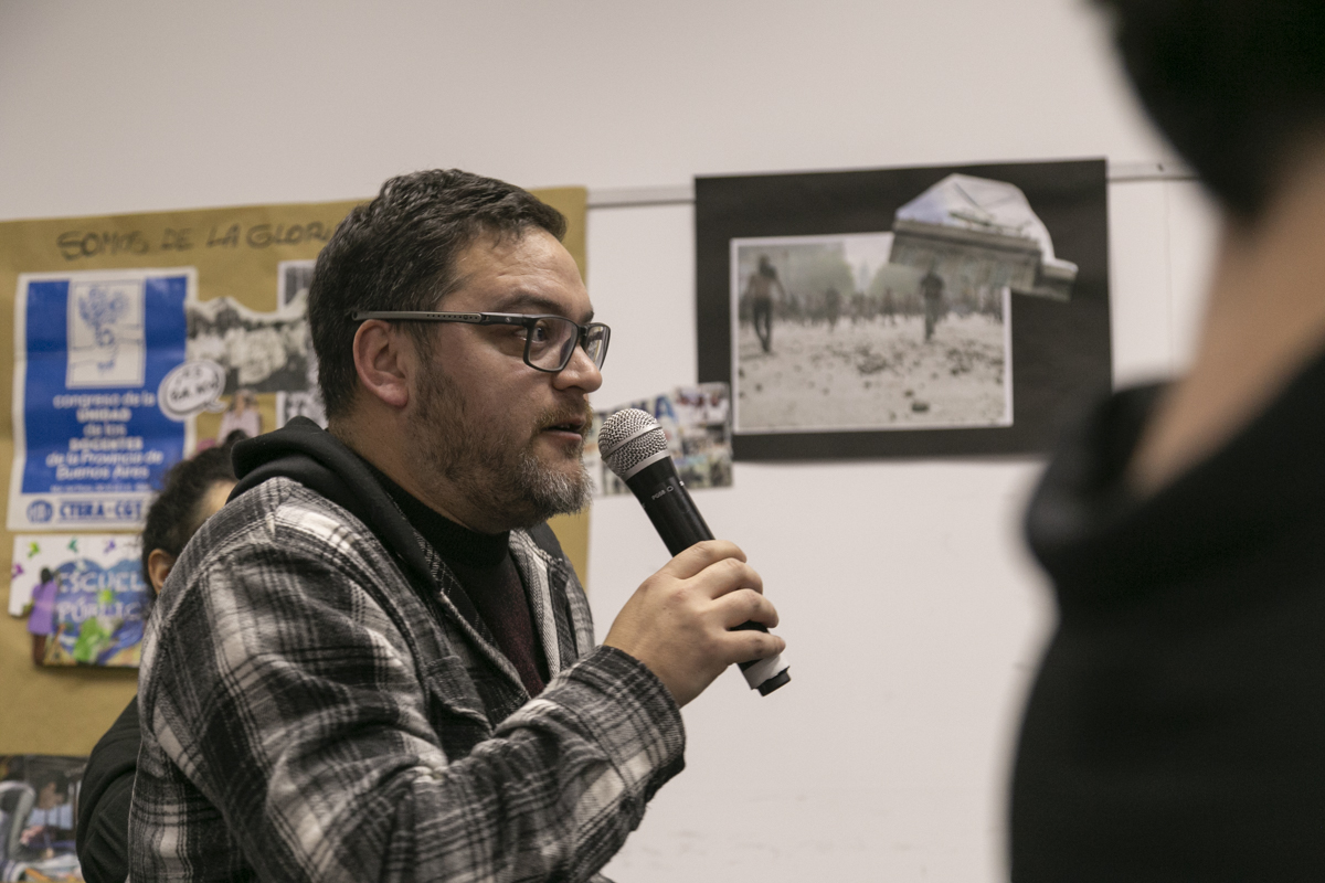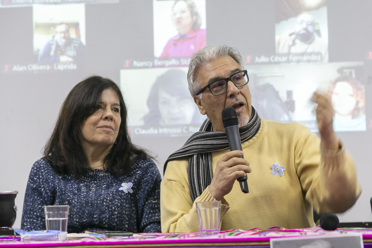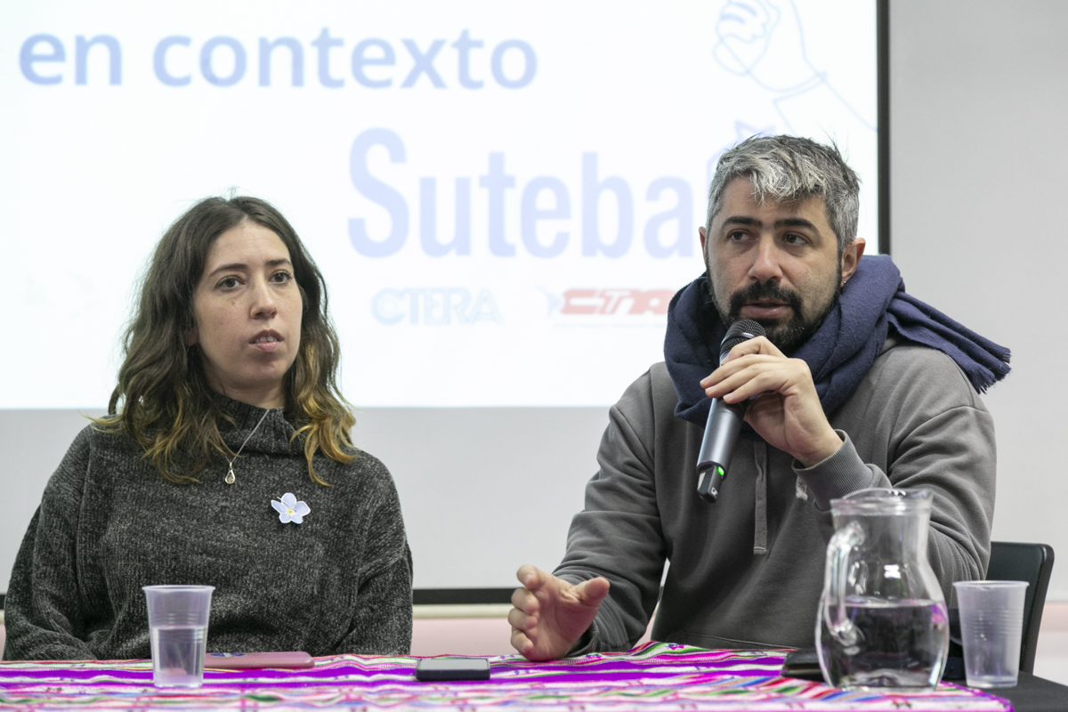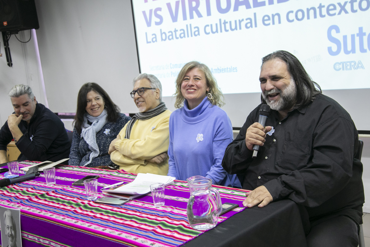 Abriendo el panel, el Secretario General del SUTEBA, Roberto Baradel, destacó: "Acá se está hablando de territorialidad y de virtualidad. Esta última también es parte del territorio, aunque hay condimentos diferentes: nuestro territorio es la Escuela, el barrio, la familia, la interacción social, los lugares de trabajo. También en las redes hay interacción, con una diferencia: hay mucha ficción y construcciones que tienen que ver con el avance de la inteligencia artificial y con herramientas tecnológicas".