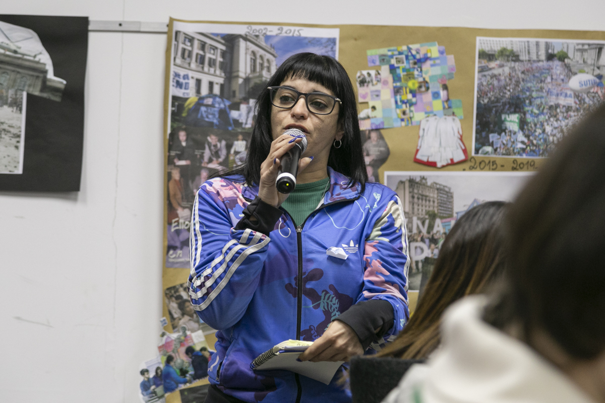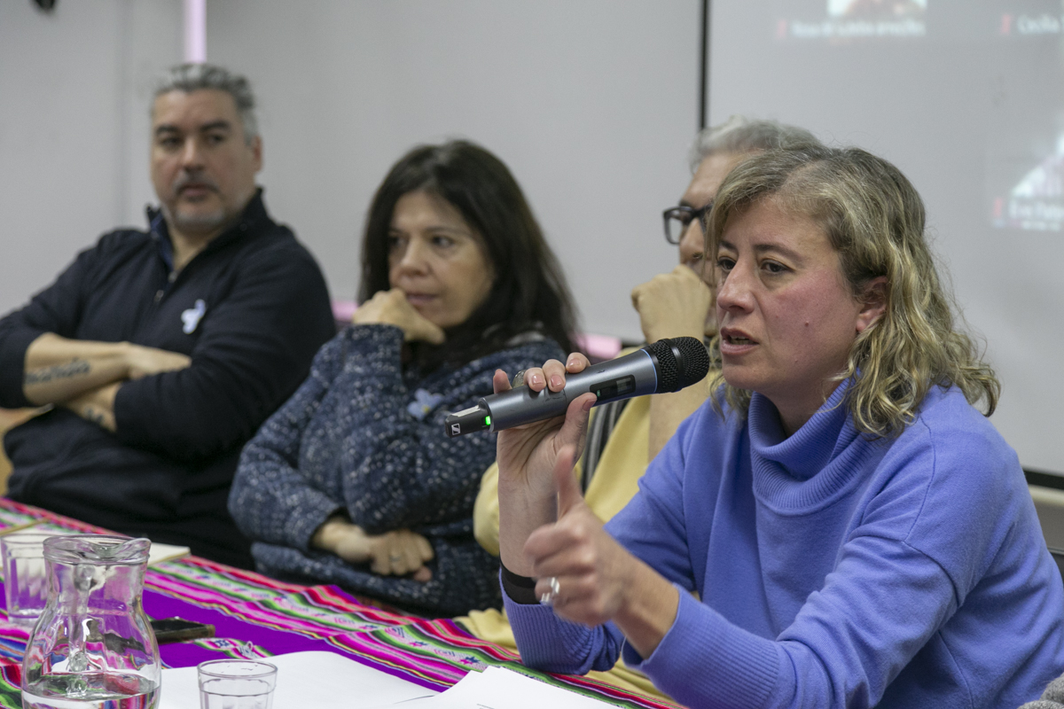 El panel continuó con la palabra de Larisa Kejval, Directora de la Carrera de Ciencias de la Comunicación de la UBA; quien explicó la experiencia de la producción de "Plazas y pantallas" (en conjunto con Canal Encuentro en 2023) y sostuvo el papel primordial de la comunicación y la cultura como dimensión significante y simbólica de nuestra sociedad, en la que se construyen sujetos y subjetividades.