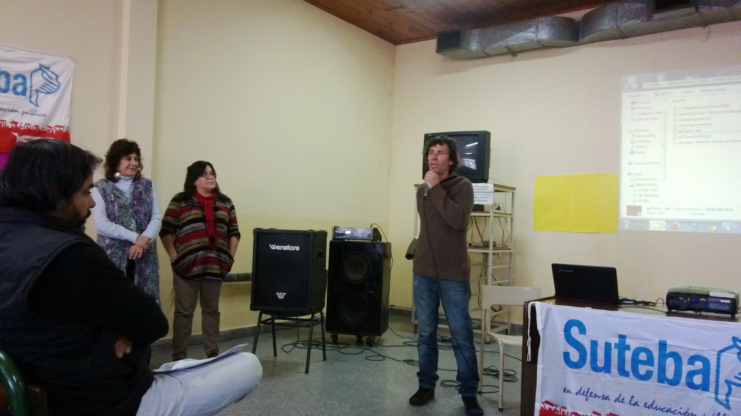 El Secretario General del SUTEBA Tandil, Hugo González, estuvo a cargo de la apertura de la jornada y, además de darle la bienvenida a los compañeros, efectuó un informe de la situación provincial y distrital en torno a los problemas de cobro, de infraestructura y del IOMA.