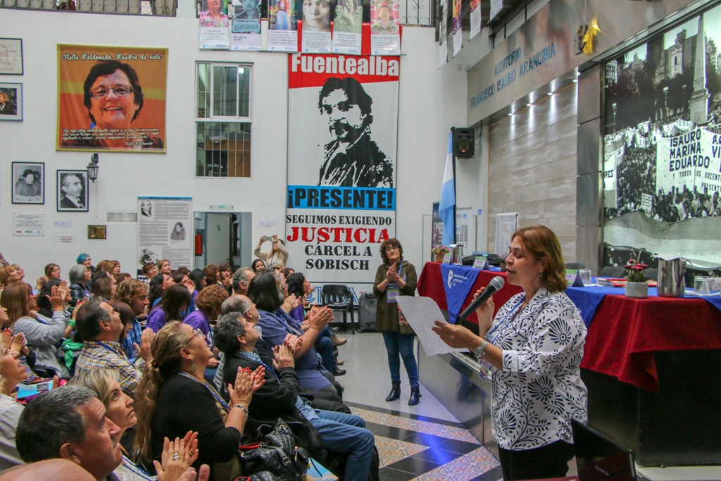 La Secretaría de Igualdad de Géneros y Diversidad de SUTEBA estuvo representada por la Secretaria provincial Cristina Echegoyen, quien expuso el trabajo que viene realizando el SUTEBA en relación a la ESI desde el programa "SUTEBA va a la Escuela, la Escuela Construyendo Derechos" y las Secretarias de los distritos de Patagones, Mar del Plata, San Martín y Tres de Febrero, San Vicente y La Plata.