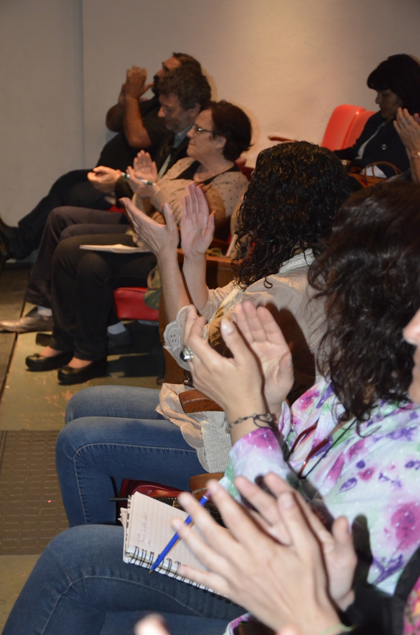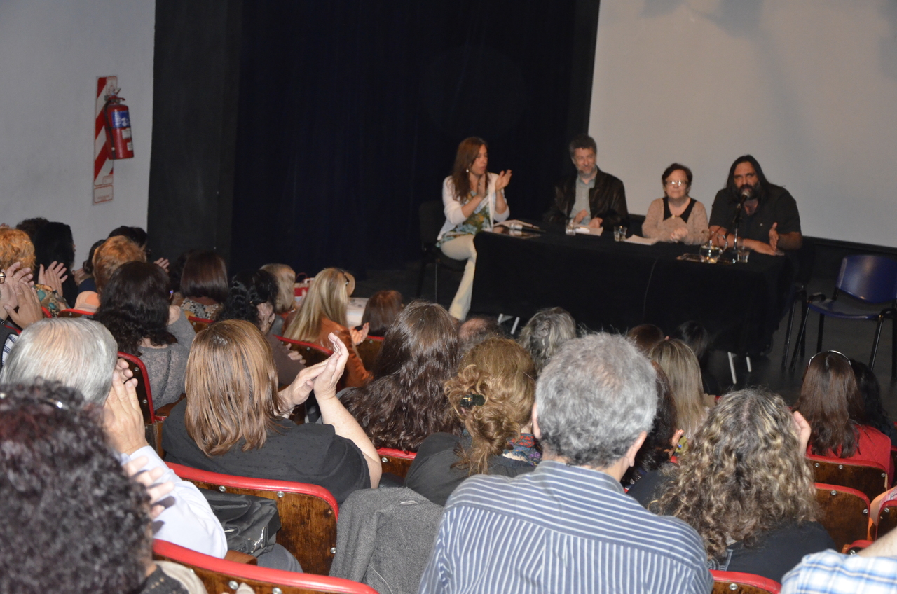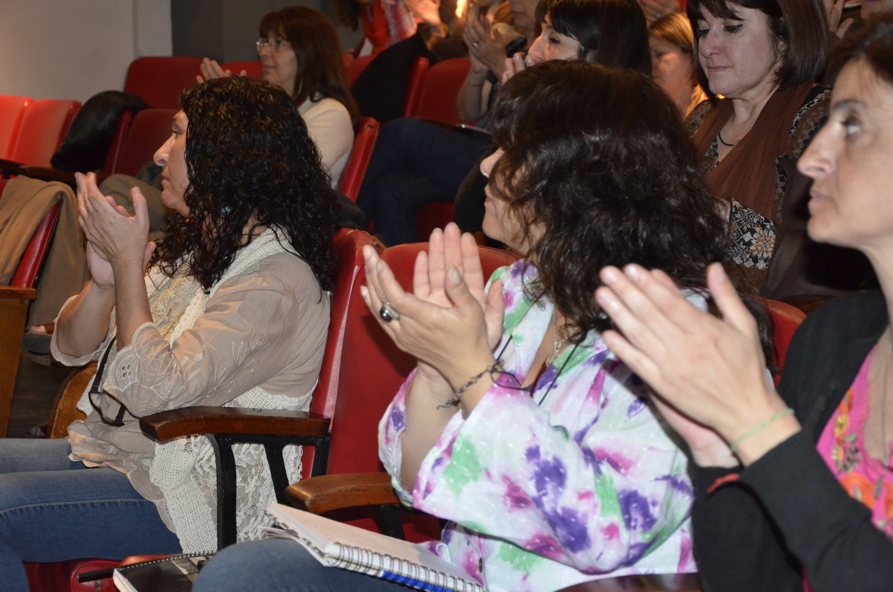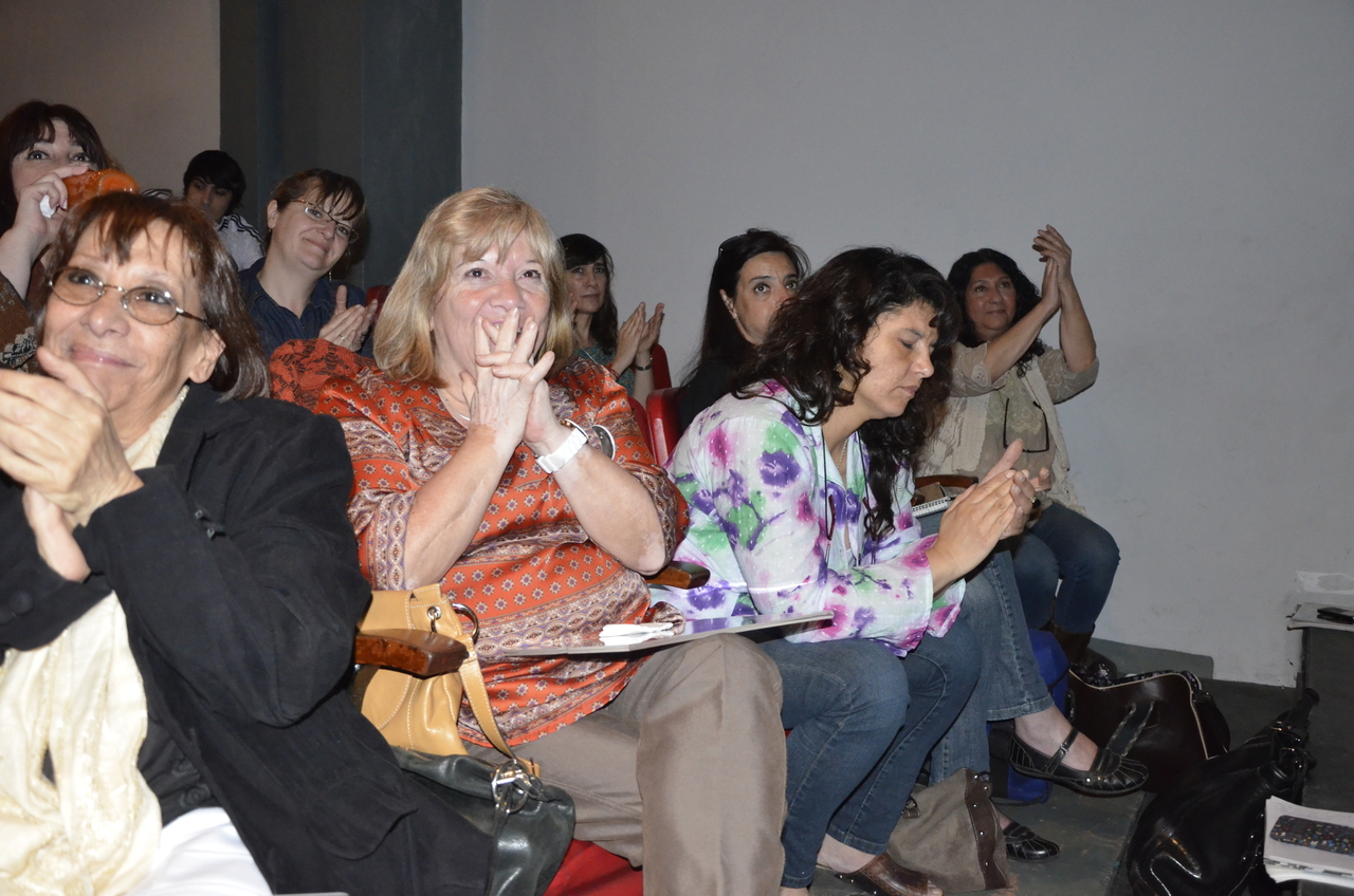 En medio de las exposiciones y de los homenajes, se realizaron proyecciones de videos, como el que ilustró la presentación del libro "Yo fui a los juicios con mi profe" en el marco de la Feria del Libro, el video que armó la UNIPE con la asistencia de los chicos a los juicios y el cierre llegó con el video interactivo del libro "Yo fui a los juicios con mi profe".