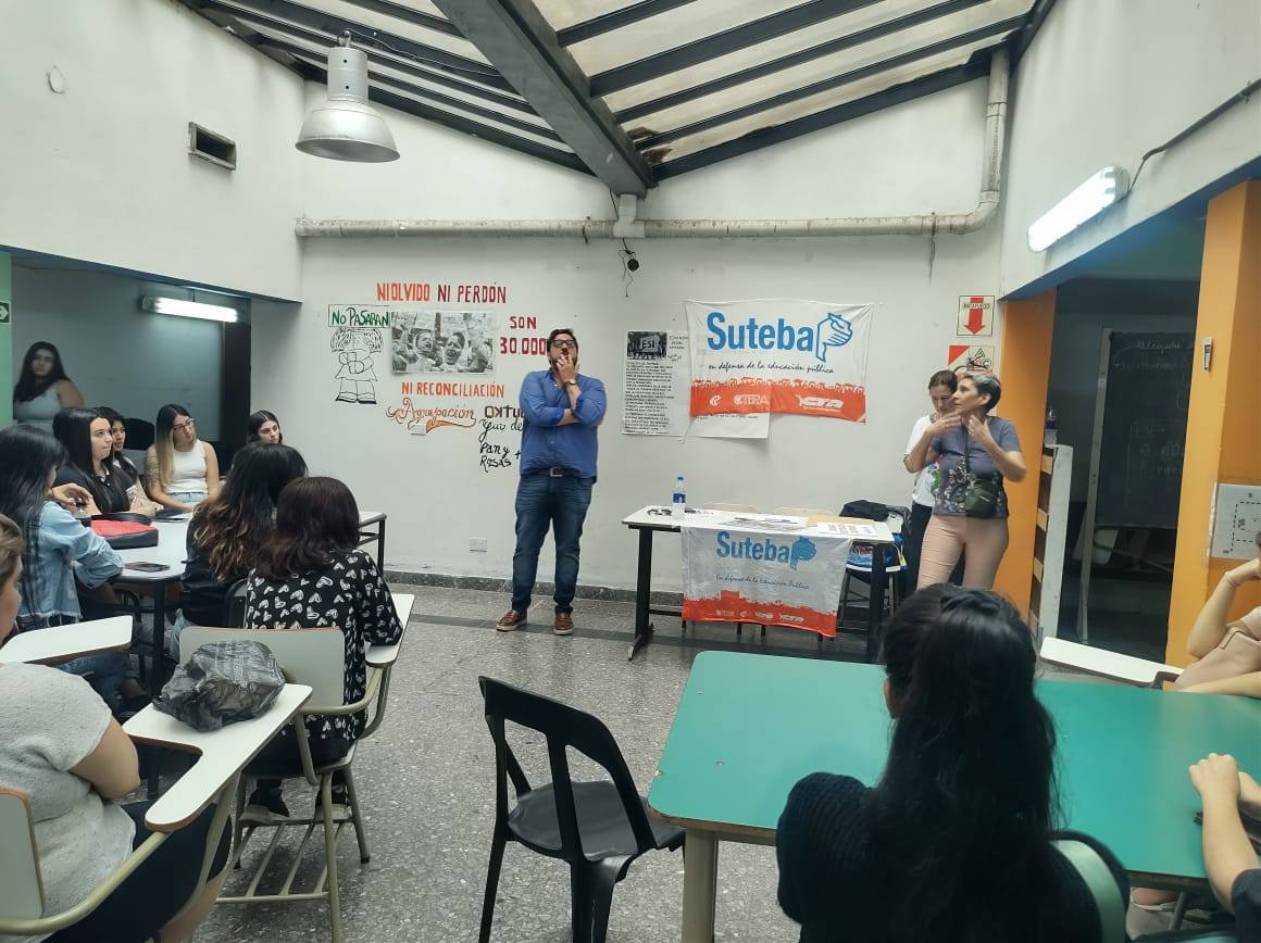 Convocadxs por el SUTEBA distrital y lxs Docentes del Instituto, conversaron con lxs Alumnxs acerca de las luchas llevadas adelante por el SUTEBA y la CTERA en defensa de la Escuela Pública y el derecho social a la Educación.