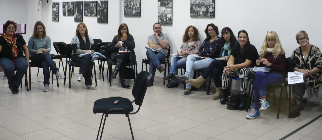 Por ello, en esta oportunidad, con los integrantes del equipo de la Secretaría de Educación y Cultura del SUTEBA (Silvia Vázquez, Delia Lerner, Patricia Sadovsky, Ana Espinosa y Héctor González) se trabajó en torno de lo que representa "ser agente del estado" y sus implicancias en la tarea de formar a los directores.