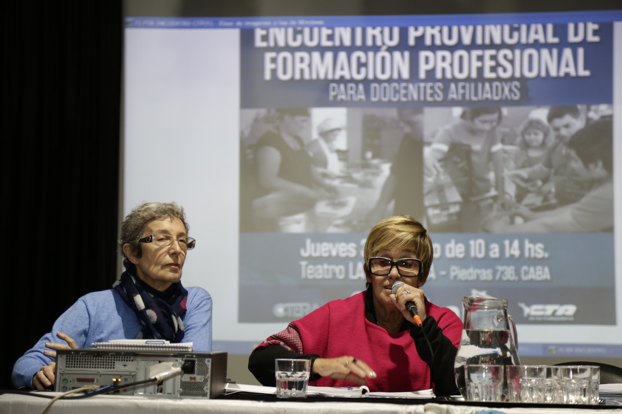 Asimismo, el equipo gremial presentó un informe sobre la situación del sector y las acciones llevadas a cabo por SUTEBA. A continuación, Adrián Carzino, miembro de la Comisión de Titularización de FP compartió un informe sobre el estado de las titularizaciones y las compañeras Marta Suárez y Vilma Pantolini del equipo de Cultura y Educación presentaron distintos aspectos políticos, pedagógicos y estadísticos para aportar al debate.