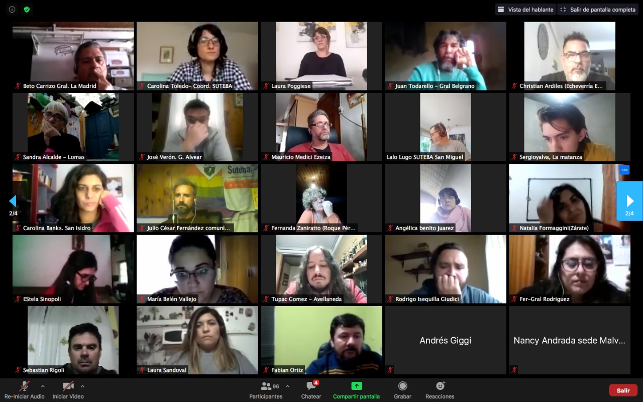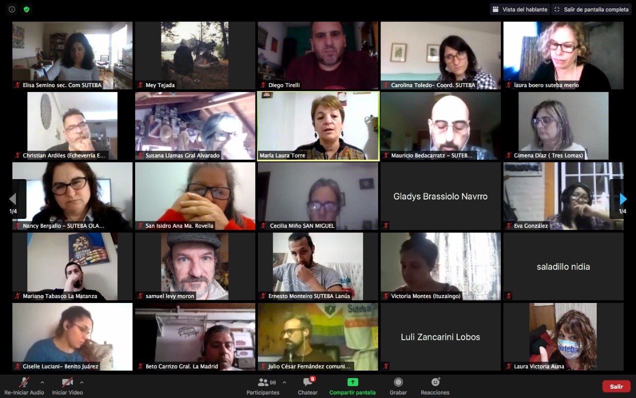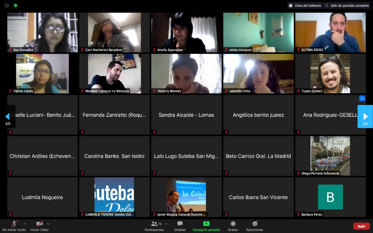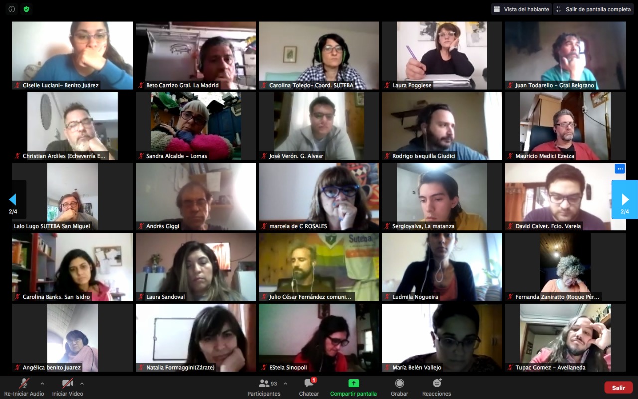 El miércoles 28 de octubre, la Secretaría de Comunicaciones del SUTEBA Provincia realizó un Encuentro con Secretarixs y responsables del área de los distritos de Buenos Aires; compartiendo el trabajo ya realizado en estos tiempos excepcionales y poniendo a circular la palabra para construir colectivamente herramientas de comunicación contra-hegemónicas.