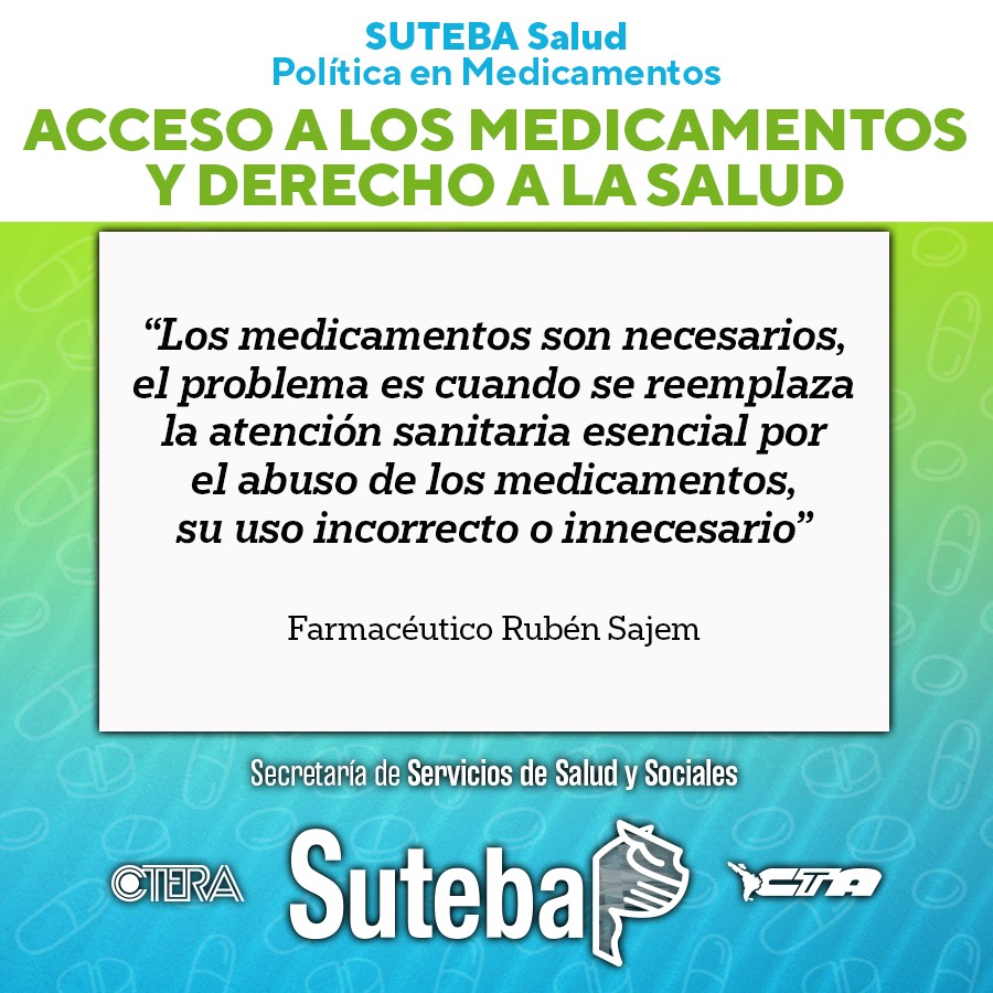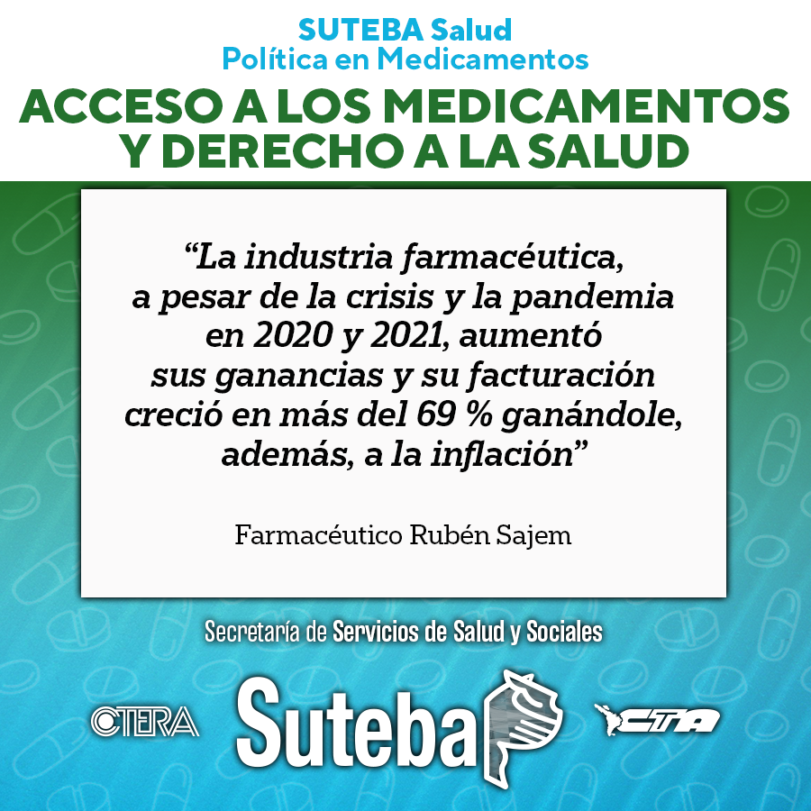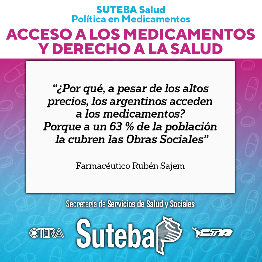 El martes 25 de octubre, con la participación de 100 compañerxs, el SUTEBA realizó un encuentro virtual con el objetivo de aportar elementos para comprender un tema complejo e indispensable, como es el de trabajar para que el Estado y las Obras Sociales puedan garantizar el acceso a medicamentos en el marco de la Salud como derecho, entendiendo al medicamento como un bien social.