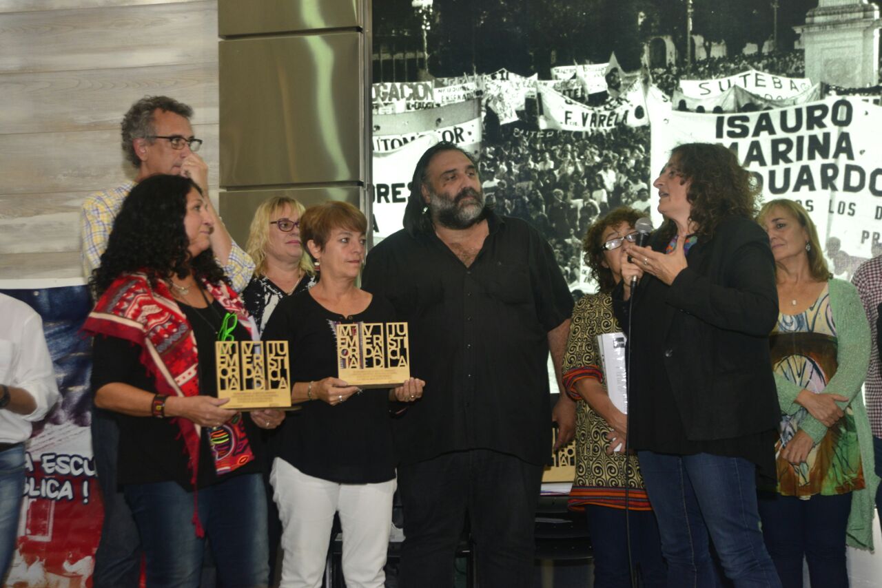 Ayer, en el marco de un acto de reconocimiento a organismos de Derechos Humanos y compañerxs que hace 42 años vienen sosteniendo la lucha por la Memoria, la Verdad y la Justicia, SUTEBA realizó, con gran emoción y alegría, una distinción al Programa Jóvenes y Memoria de la Comisión Provincial por la Memoria.