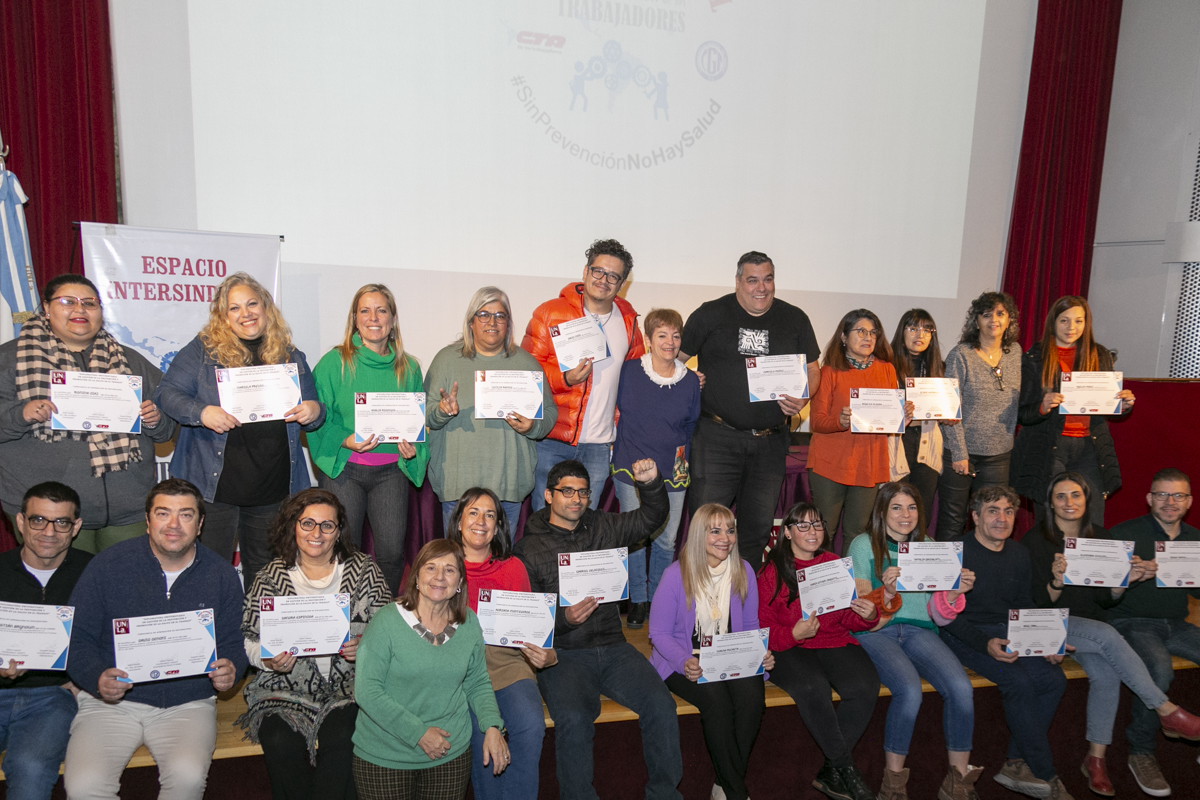 El viernes 7 de julio, en la Universidad Nacional de Lanús (UNLa), se llevó adelante la entrega de diplomas a lxs compañerxs del Espacio Intersindical Salud, Trabajo y Participación de los Trabajadores que se convirtieron en lxs primerxs graduadxs de la Diplomatura en Gestión en Salud y Seguridad en el Trabajo.