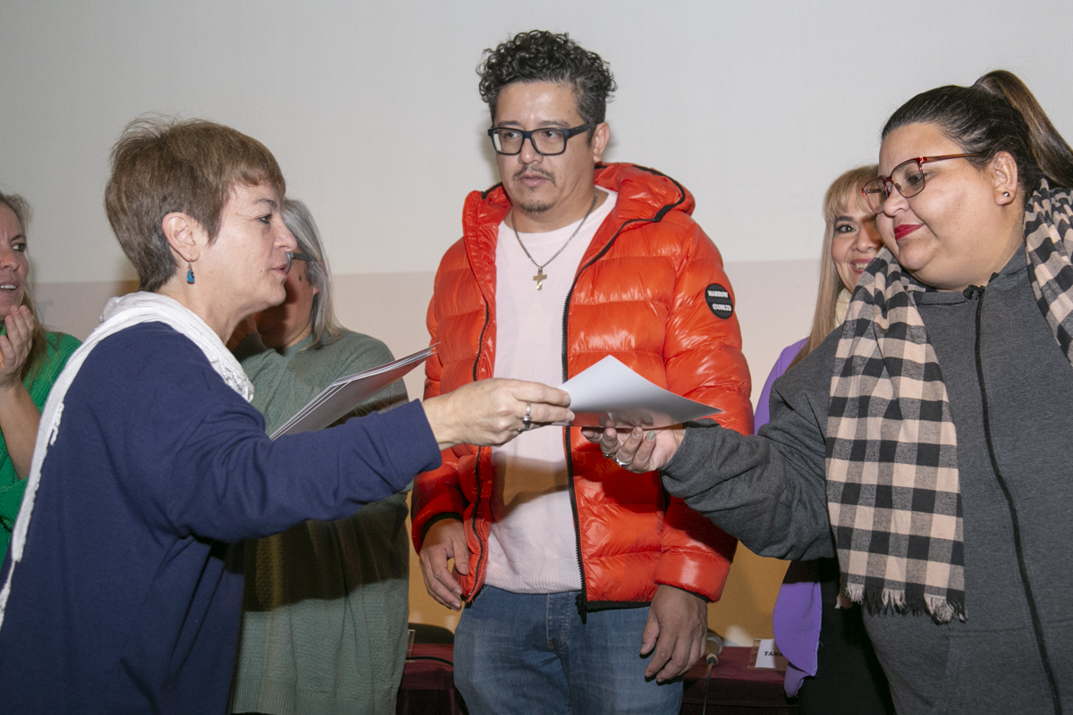 María Laura Torre, Secretaria General Adjunta del SUTEBA, entregó lxs diplomas a lxs compañerxs del SUTEBA y, en representación de lxs Secretarixs Generales de la CTERA y el SUTEBA, compartió: "Es un día de celebración y de alegría. Hay que remarcar la tozudez de la unidad de este espacio, porque en este contexto, se necesita a lxs Trabajadorxs fortalecidxs porque vamos a ser protagonistas de las batallas que se vienen. Esta diplomatura me llena de emoción, es un contenido político que habla de la prevención de nuestras condiciones de trabajo, que están ligada a las condiciones de aprendizaje de lxs hijxs de nuestro Pueblo".