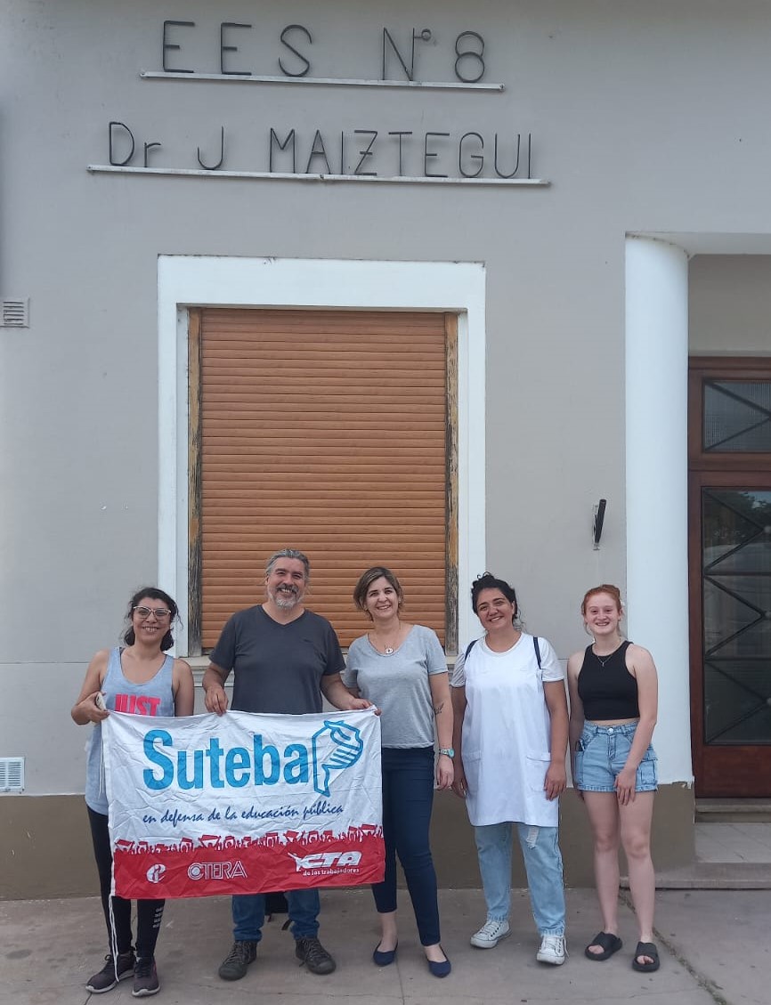 En el lugar nos recibieron la Directora Lorena Domínguez, la Profesora a cargo del proyecto Elisa Baglioni, la estudiante Valentina y la compañera Secretaria de Salud Laboral del SUTEBA Pergamino, Melisa Samitier. El proyecto propone concientizar sobre el cambio climático y revertirlo a través de la forestación de nativas.