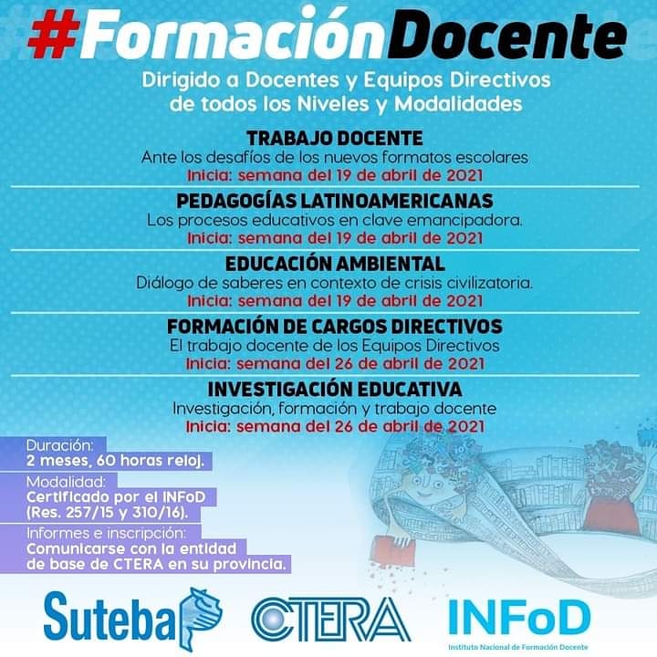 Desde el SUTEBA, en el marco de la CTERA, seguimos construyendo espacios de Formación Permanente, gratuita y en ejercicio con puntaje.