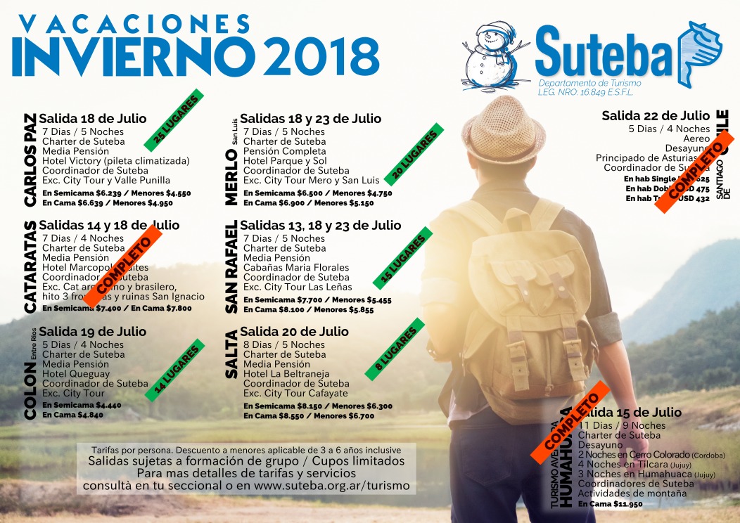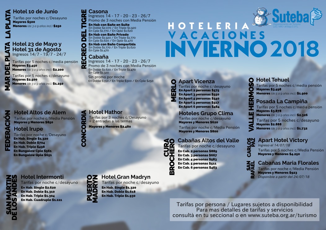 Este receso de invierno es una nueva oportunidad para que lxs Docentes puedan disfrutar sus vacaciones junto a nuestro Sindicato, a través de diversas opciones.