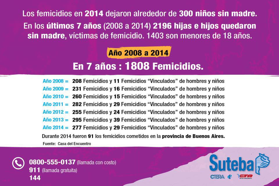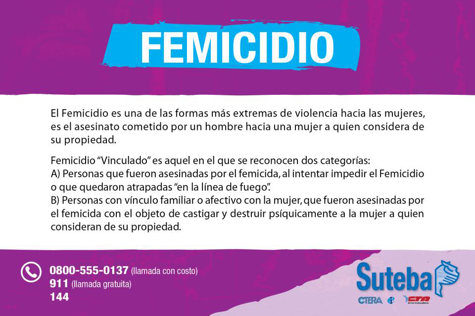 Desde SUTEBA y CTA decimos #NiUnaMenos porque implica el reclamo de una vida libre de violencias para todas las mujeres y quienes se autoperciban como tales, con pleno ejercicio de sus derechos.