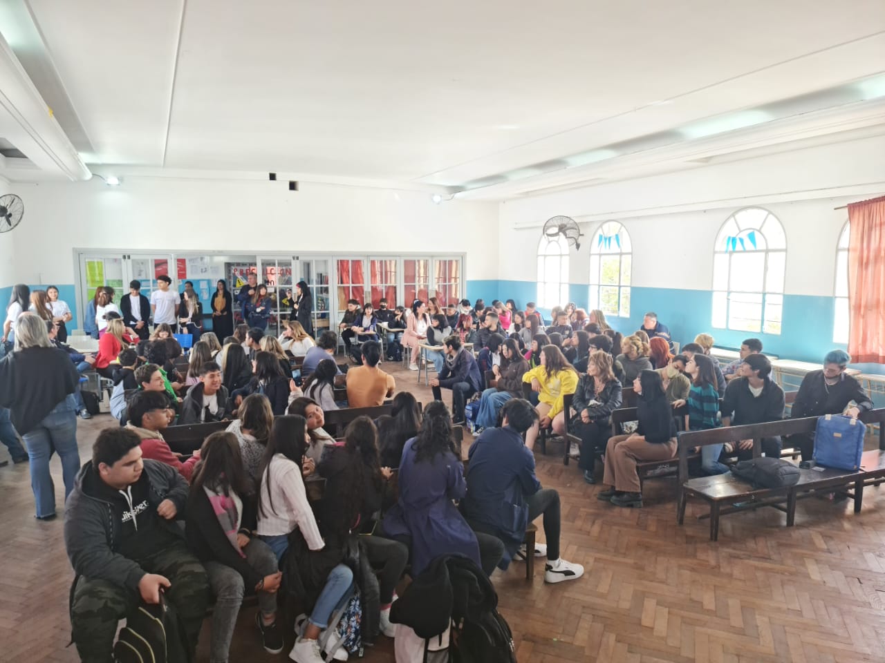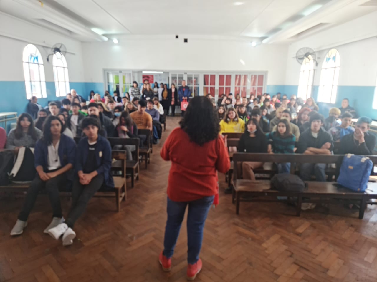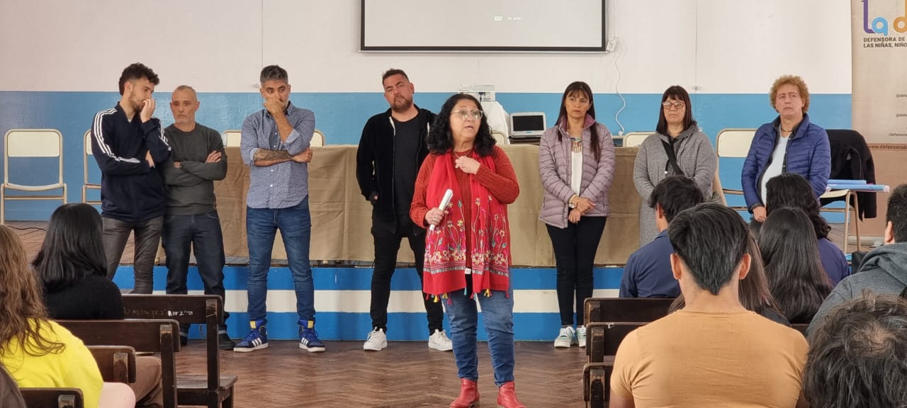 En la Escuela de Educación Secundaria Nº 15 de Ezeiza, con más de 100 Estudiantes organizadxs en Centros de Estudiantes de las Escuelas Públicas de ese distrito, y convocadxs por las Inspectoras del Nivel Secundario y el SUTEBA local, se realizó el taller "La Defensora va a la Escuela. Promotores de Derechos".