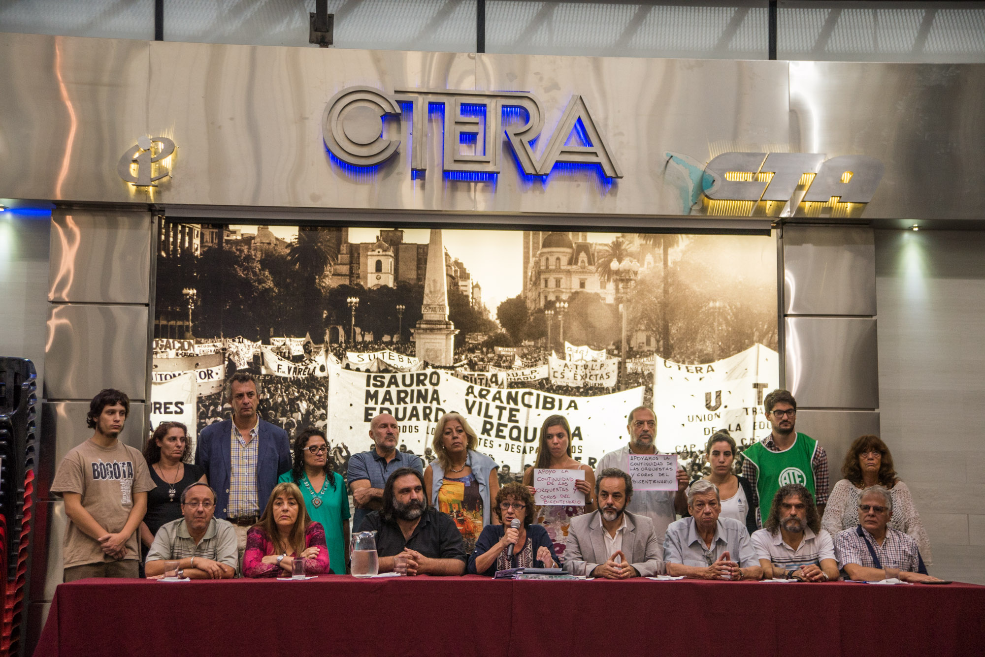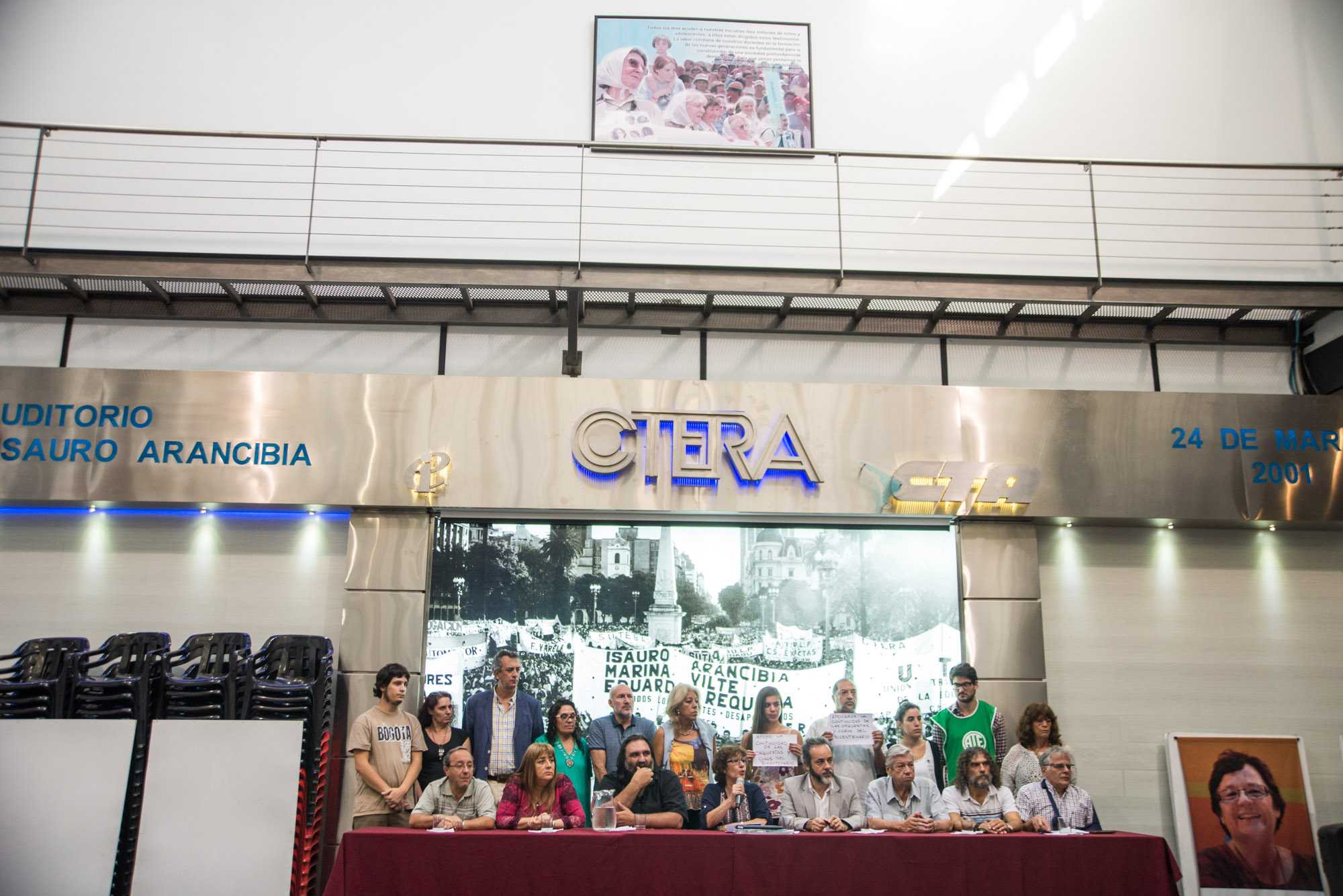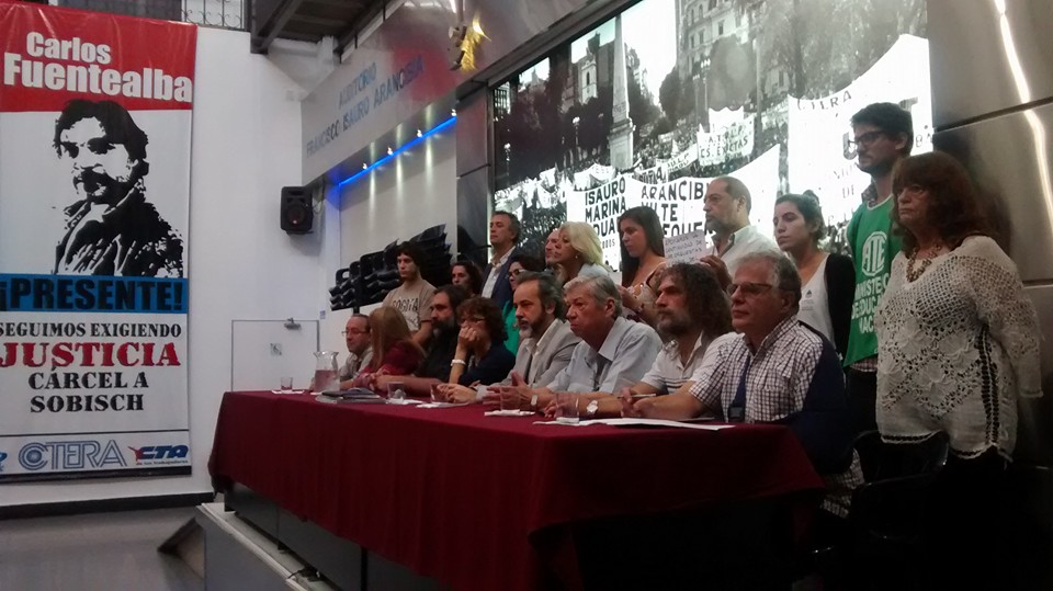 Sonia Alesso, Secretaria General de CTERA, recordó que el 4 de abril se cumplen 9 años del asesinato del maestro Carlos Fuentealba y aseguró que "siempre estuvimos junto a los compañeros de base y la familia de Carlos". A su vez, denunció que la justicia neuquina pretende cerrar la Causa Fuentealba II, que trata la responsabilidad de los autores intelectuales de la represión en 2007, y afirmó: "No hay sociedad democrática si no hay justicia para el asesinato de un maestro. Esto se agrava con el Protocolo de Seguridad presentado por la Ministra Patricia Bullrich. Además, uno de los vinculados al ex gobernador neuquino Sobisch fue Eugenio Burzaco, responsable del área de seguridad en el asesinato de Fuentealba. Vamos a continuar la pelea judicial por Justicia Completa para Carlos".