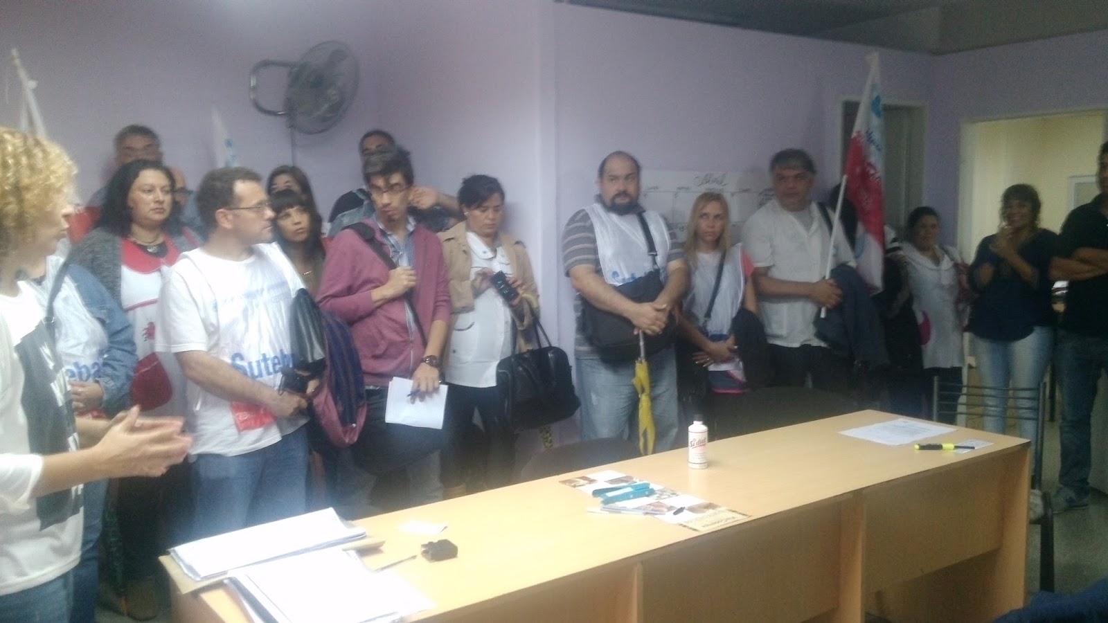 Previamente, tuvo lugar la reunión de Delegados de Escuela con la conducción del SUTEBA local, donde también se expresó el apoyo a los auxiliares y el acompañamiento a la comunidad educativa de las Orquestas que funcionan en Florecio Varela. Además, la Secretaria General, Fabiana Guerrero, informó sobre la situación del distrito y la Secretaria de Salud, Paula Espiño, se refirió a los reclamos ante el IOMA.