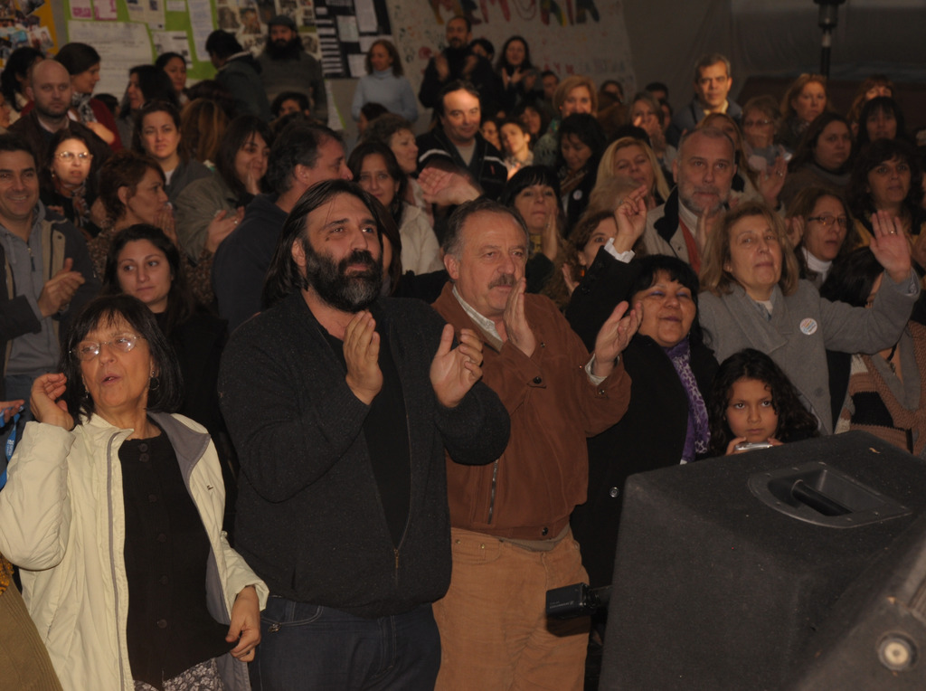 La primera en hablar fue Tati Almeida. La integrante de Madres Línea Fundadora contó la historia de su hijo Alejandro, estudiante de medicina y desaparecido cuando tenía 20 años: “Alguien puede decir: ‘Los habrán desaparecido por algo’. Yo con mucho orgullo digo que si, los desaparecieron porque eran militantes políticos, porque tenían un compromiso político y social.” Tati contó el momento en que encontró los poemas que escribía su hijo: “Yo no sabía que escribía poesías, como tampoco sabía nada de nada, porque Alejandro me preservaba, me cuidaba y no me contaba absolutamente nada de su militancia. Yo conocí la otra faceta de Alejandro a través de sus poesías.” Luego, contó que ella viene de familia “gorila” y militar, por ende, cuando desapareció su hijo en el ’75 les echó la culpa a los peronistas. Luego, cuando llegaron los militares en el ’76 ella pensó que iba a encontrar a su hijo. “Alejandro me parió, me hizo dejar atrás todo ese pasado y transformarme en otra mujer”, reflexionó Tati. En relación a Néstor Kirchner, dijo: “Por fin, en 2003, encontramos a un presidente que nos escuchó, porque recibir nos recibieron todos, pero él fue el primero que anuló las leyes y se declararon anticonstitucionales y hoy estamos viviendo estos momentos históricos que, sinceramente, no pensábamos, las Madres, que íbamos a vivir.”